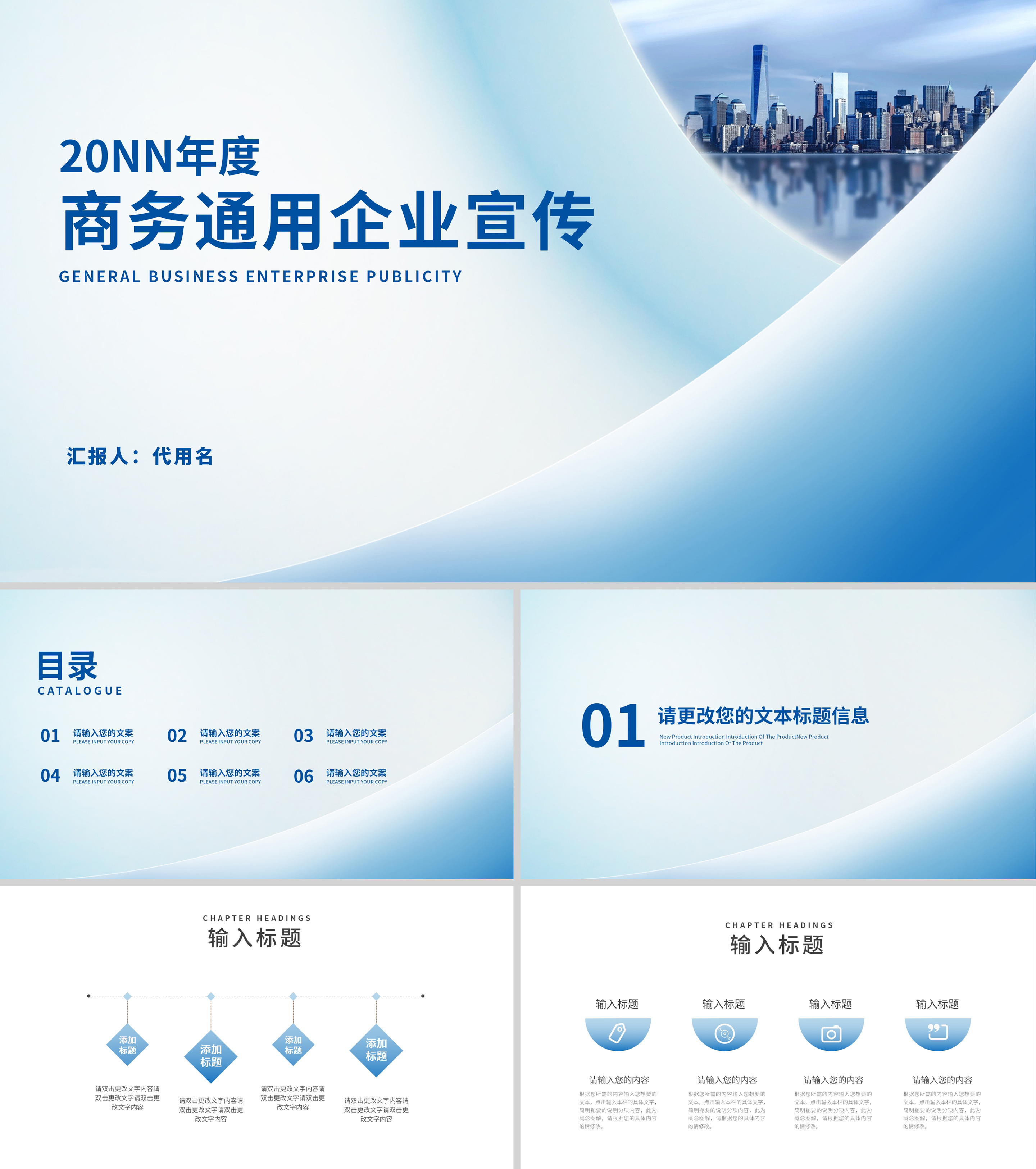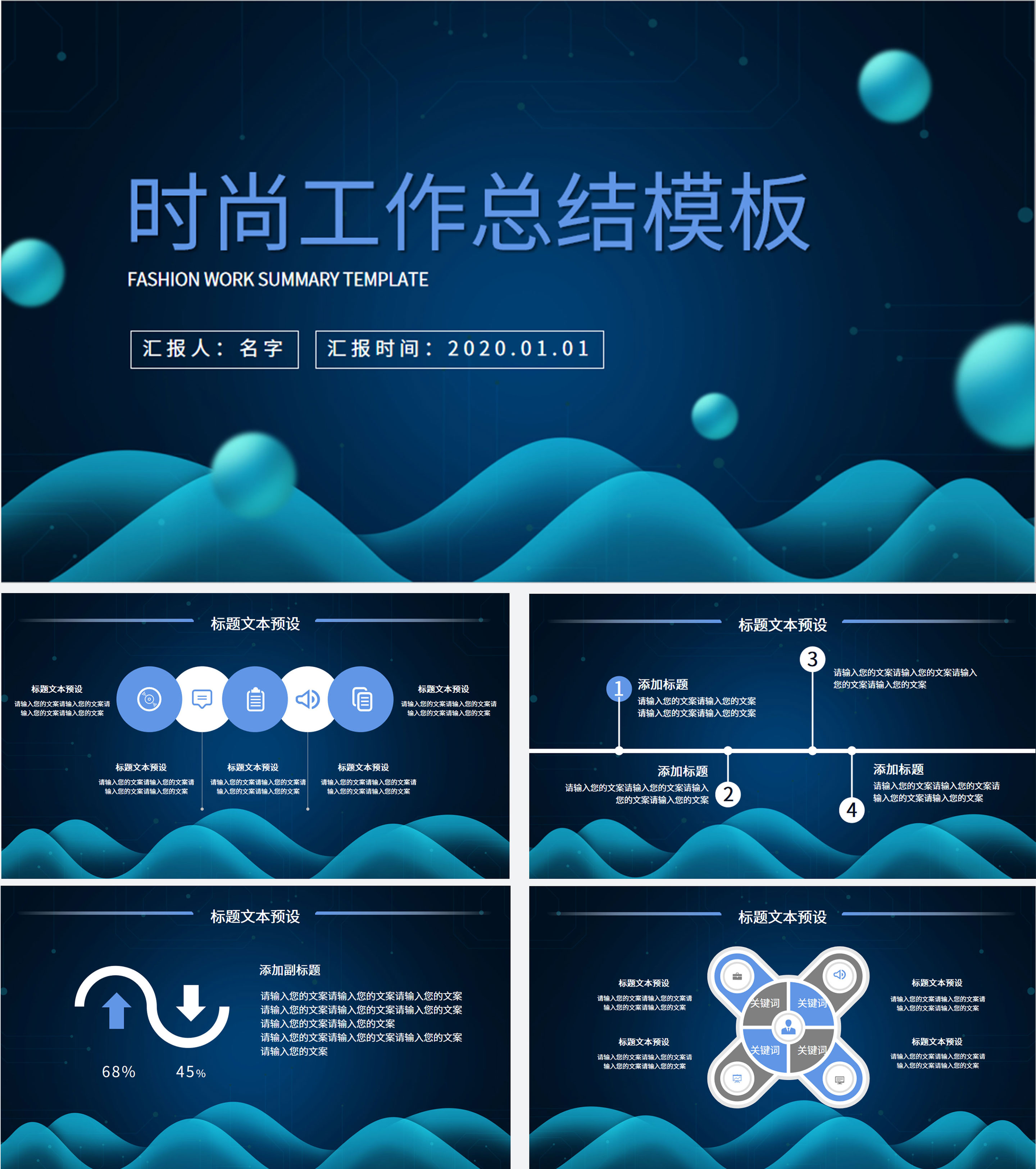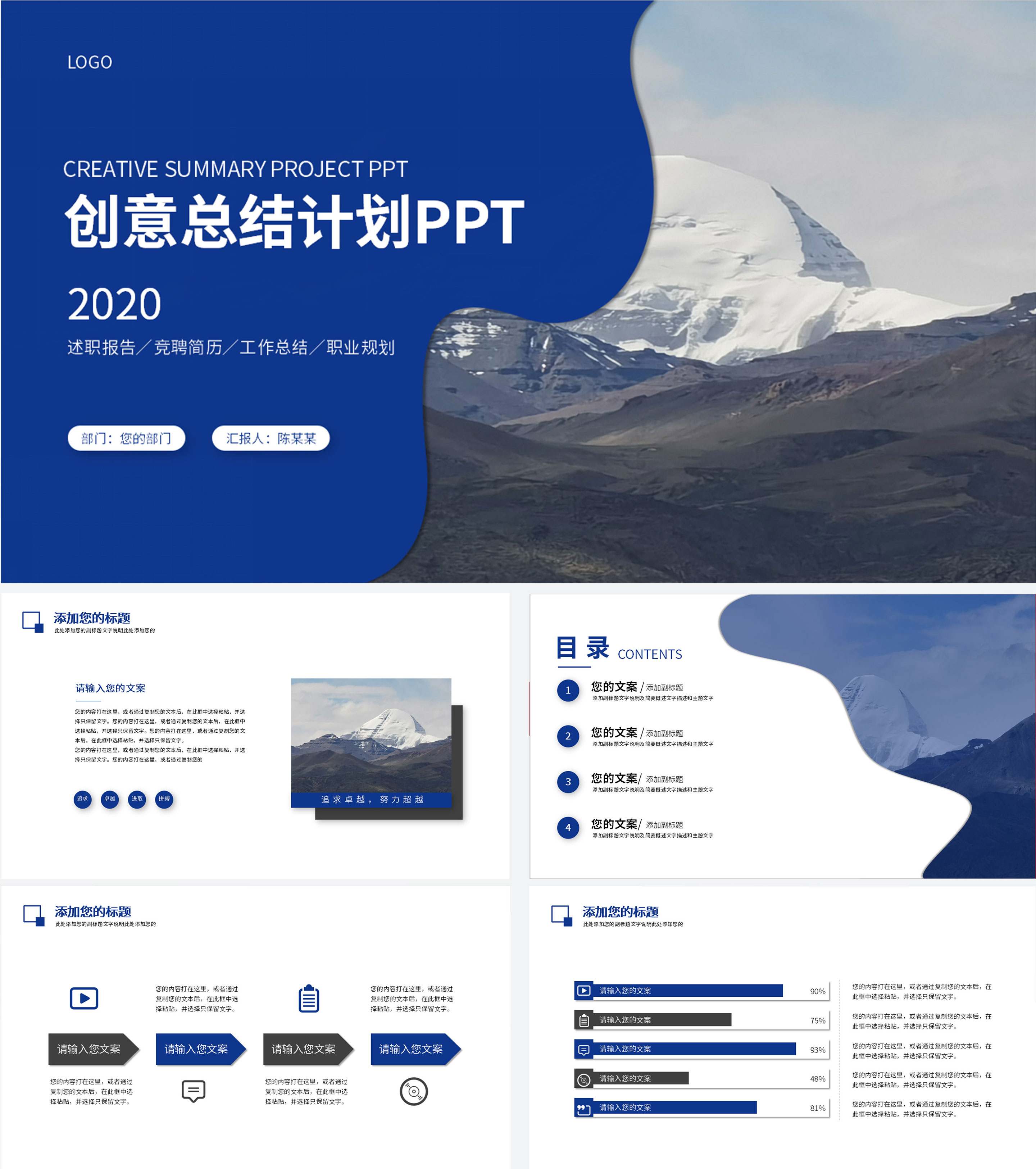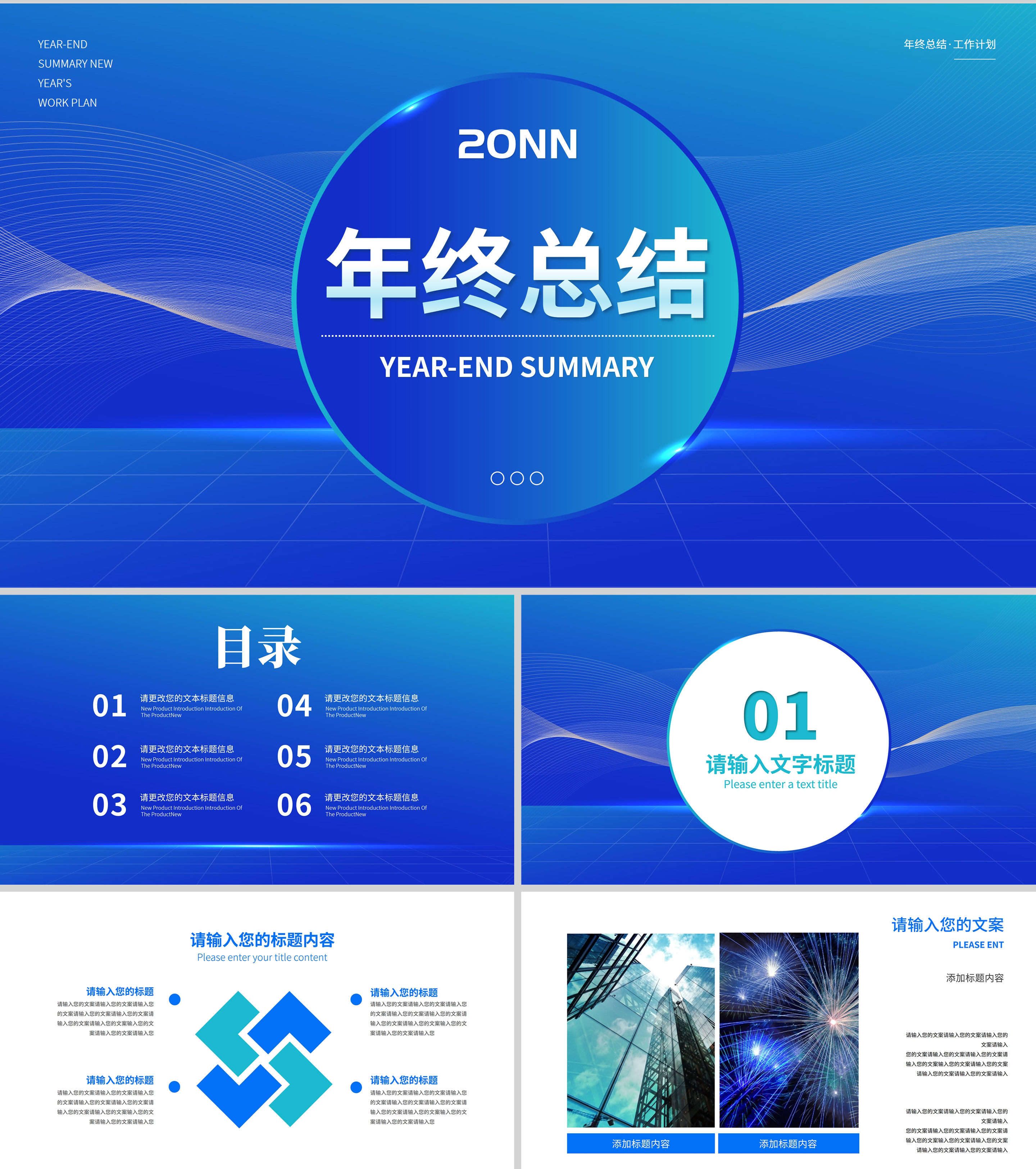 蓝色扁平风符号员工年终职场总结汇报PPT模板