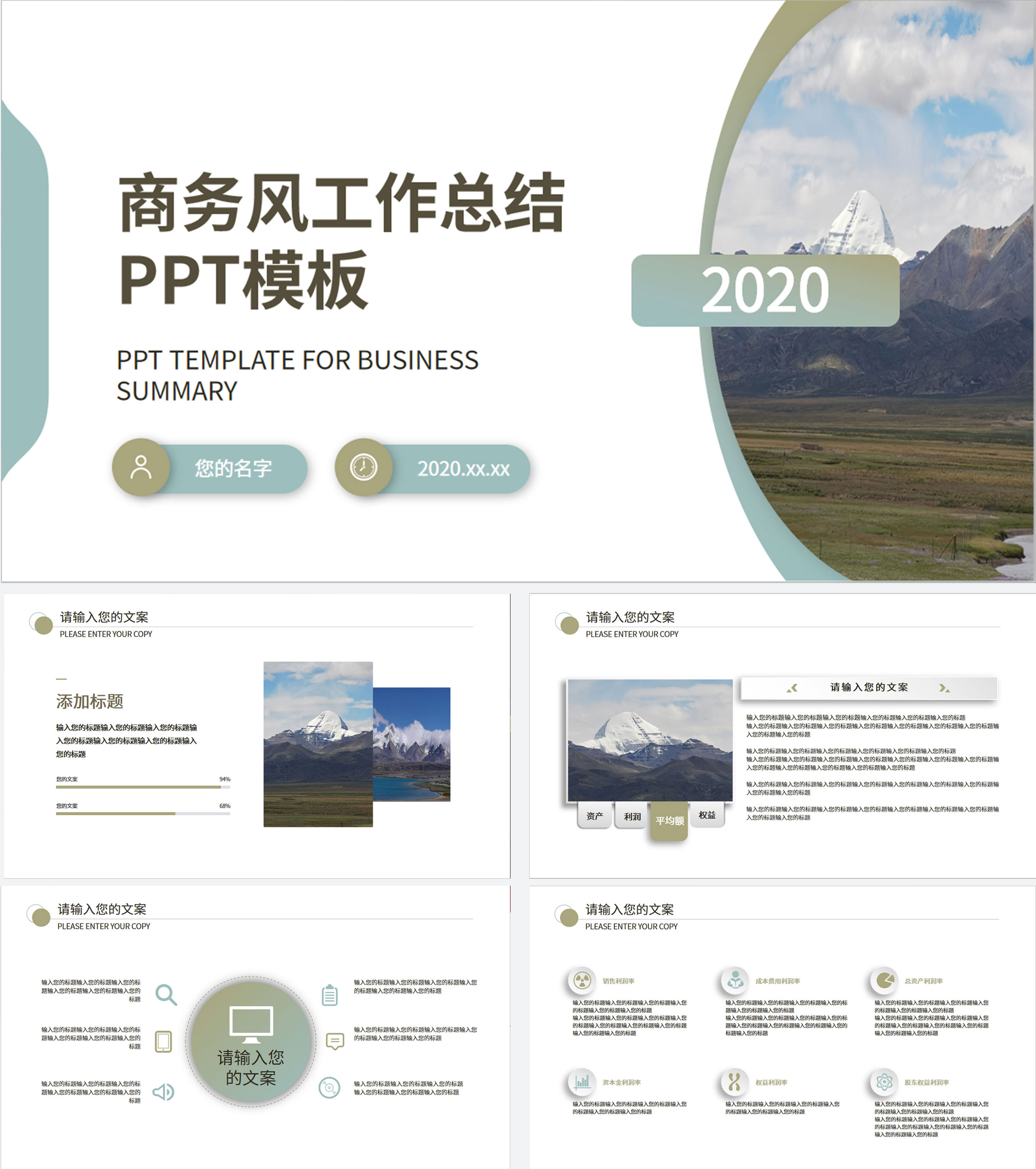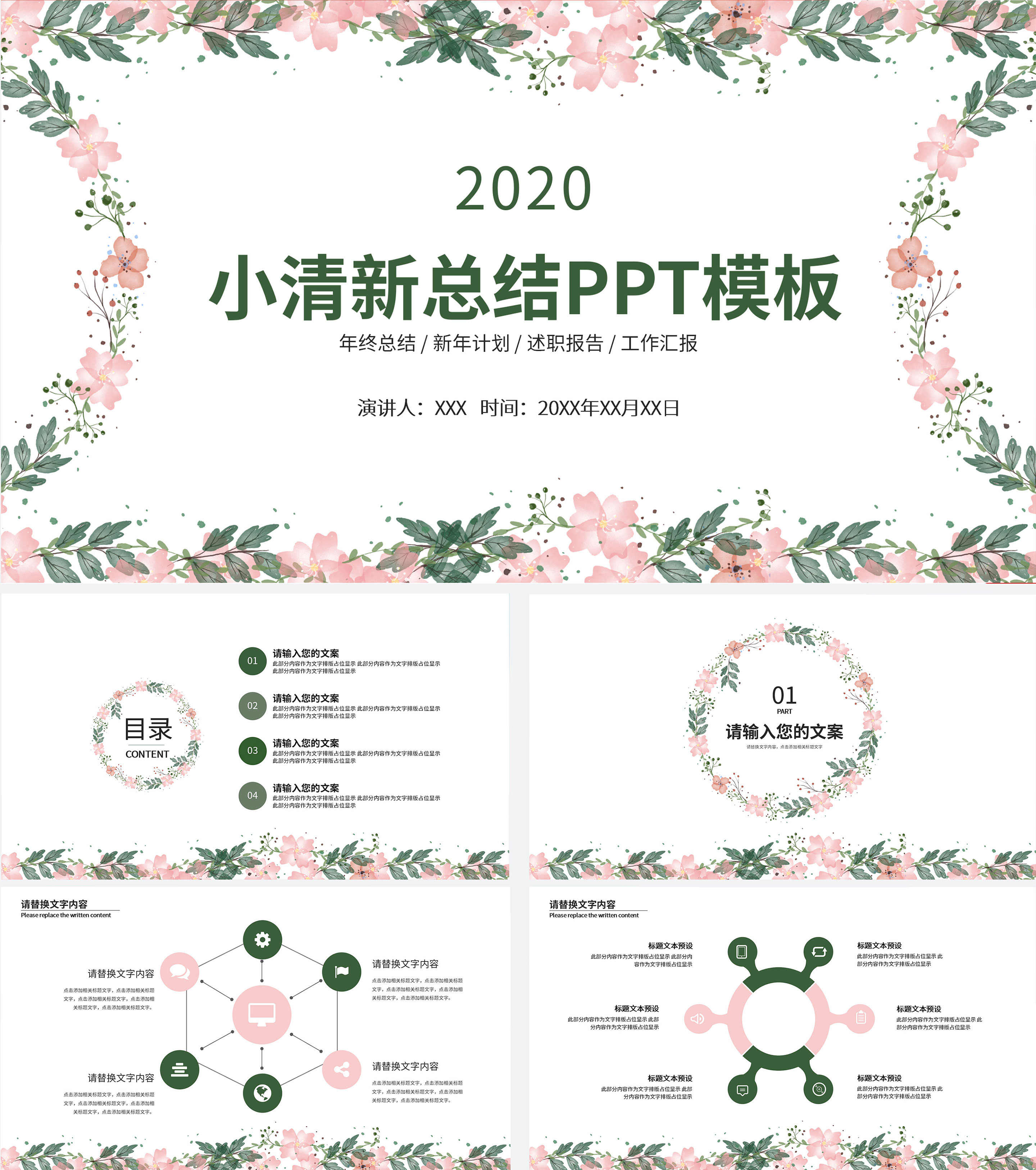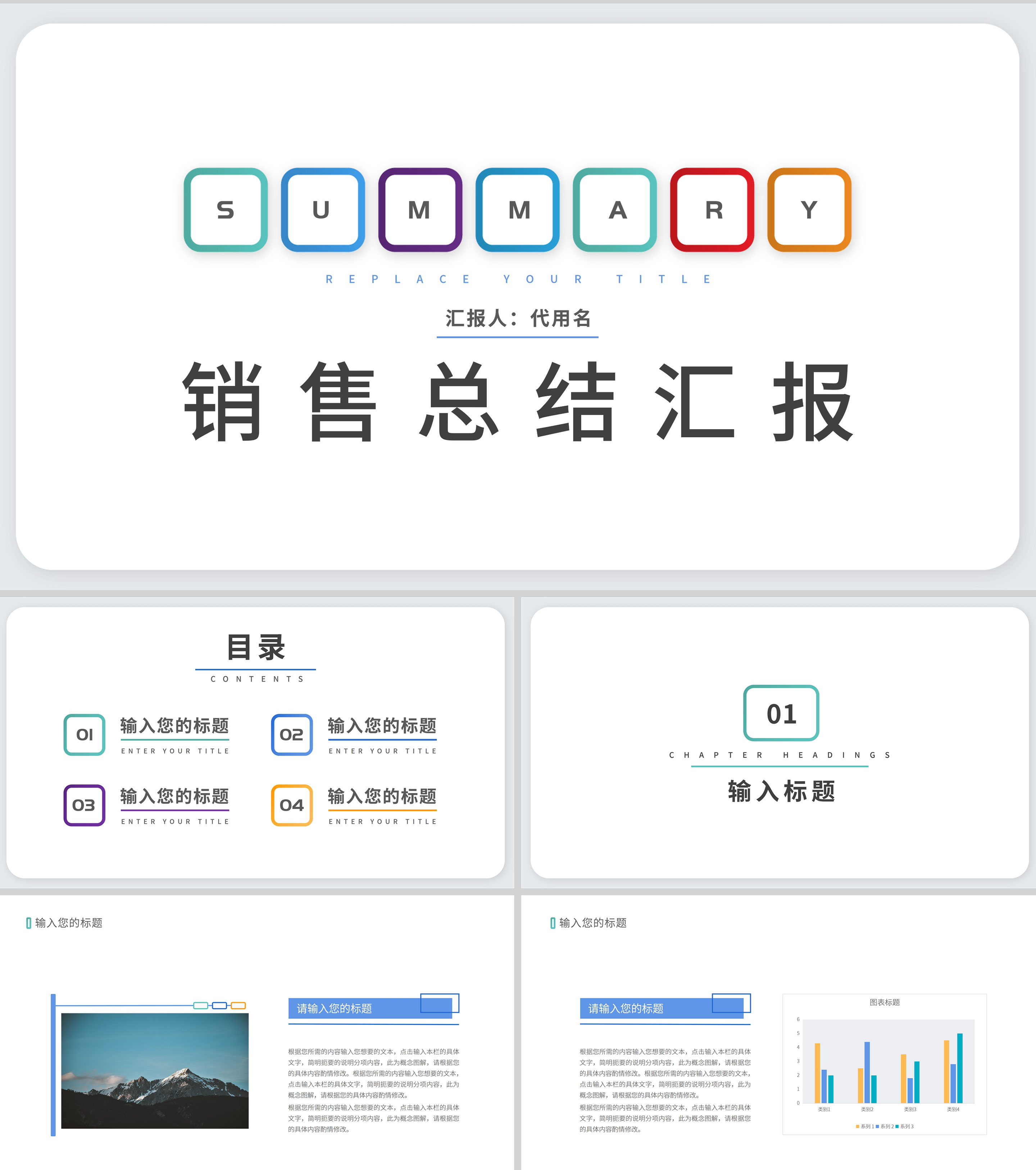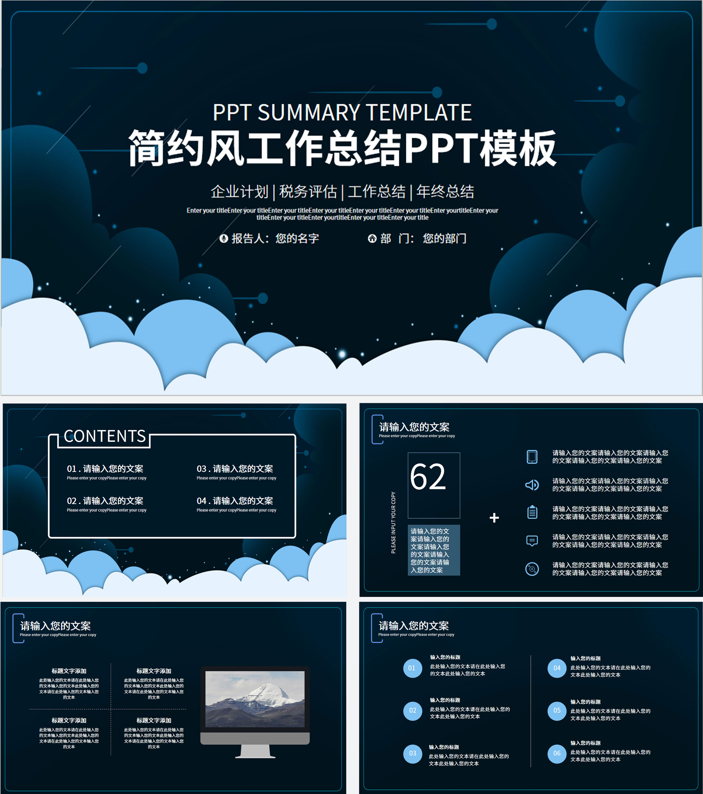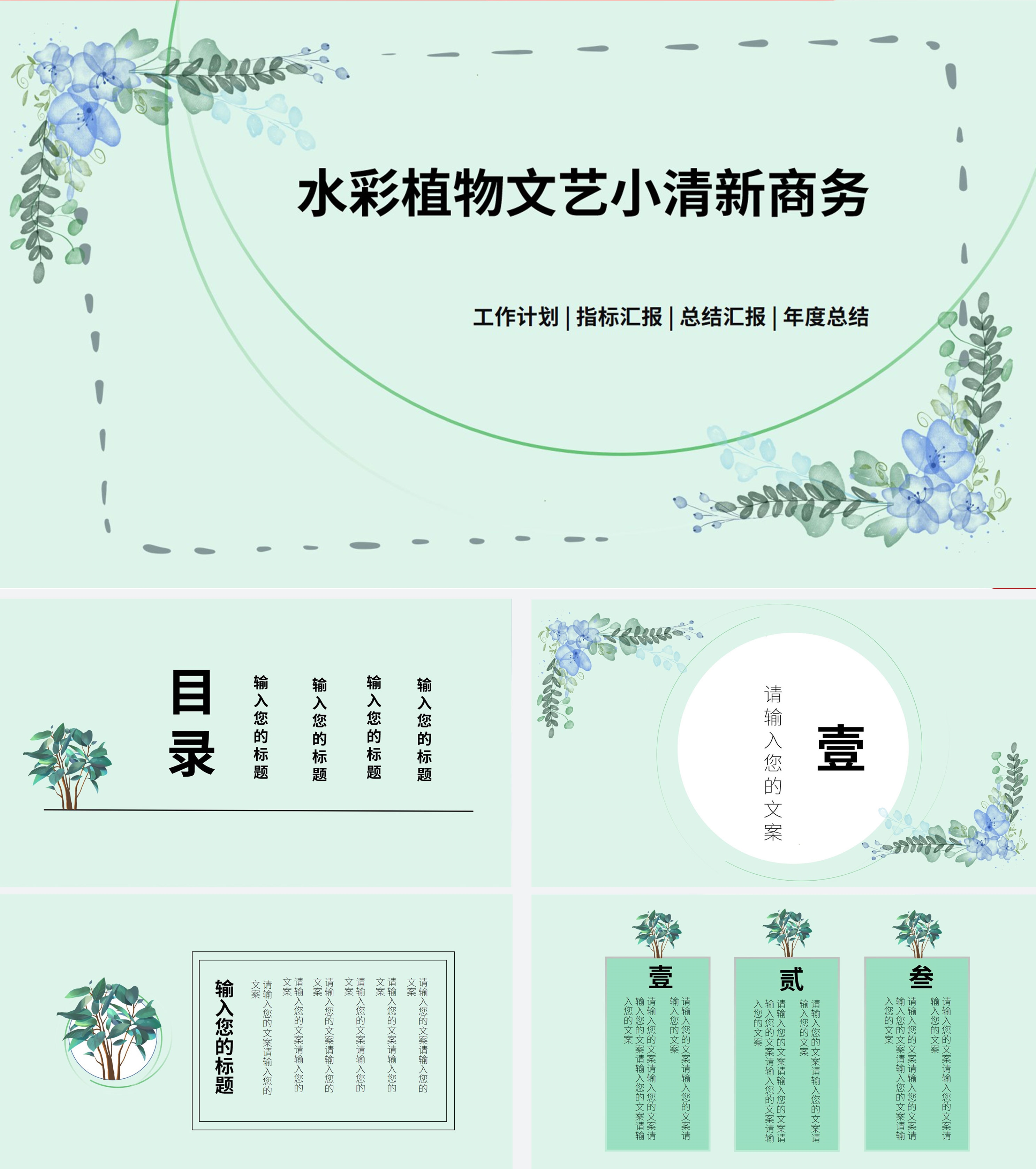 蓝色扁平风符号员工年终职场总结汇报PPT模板