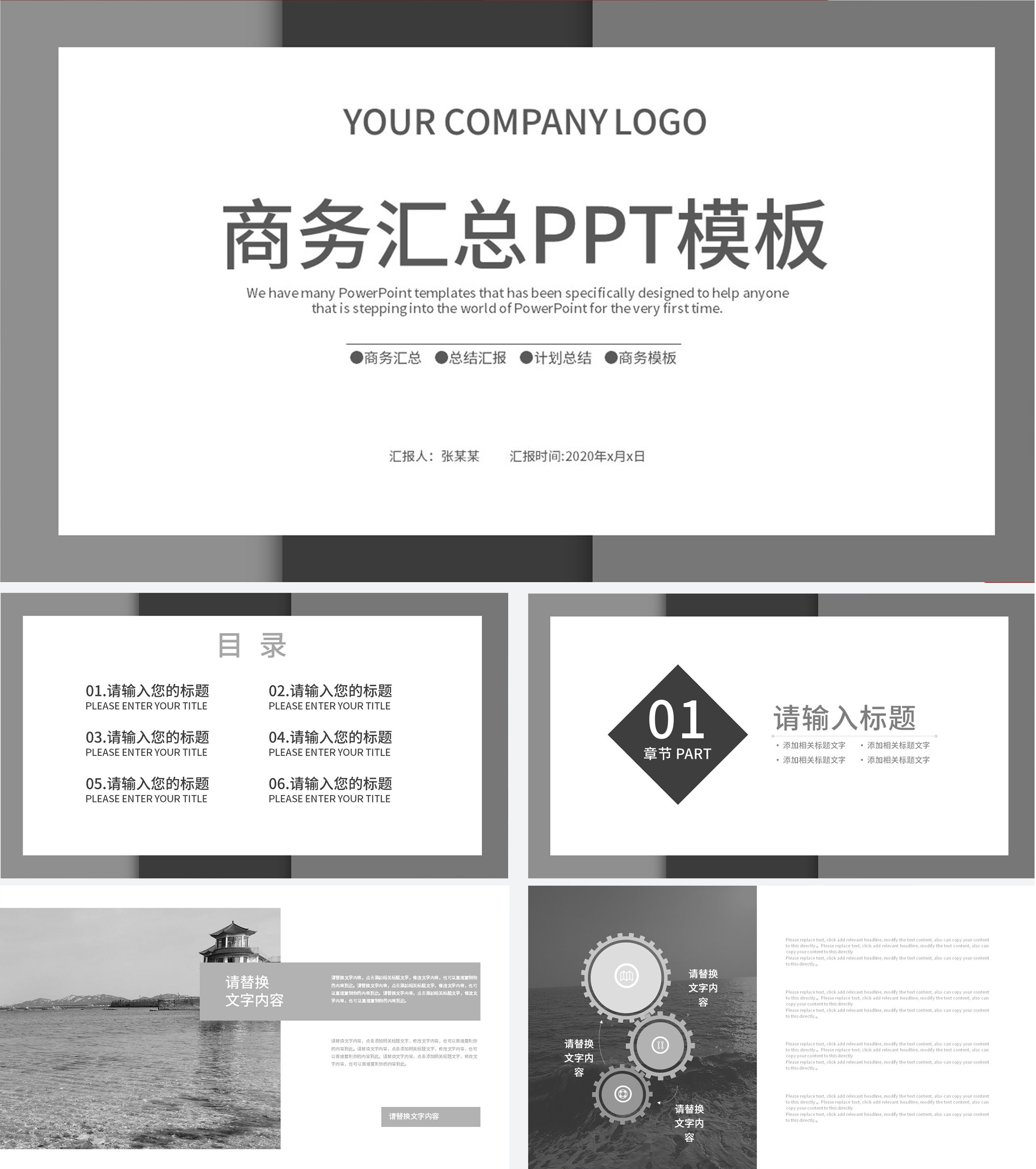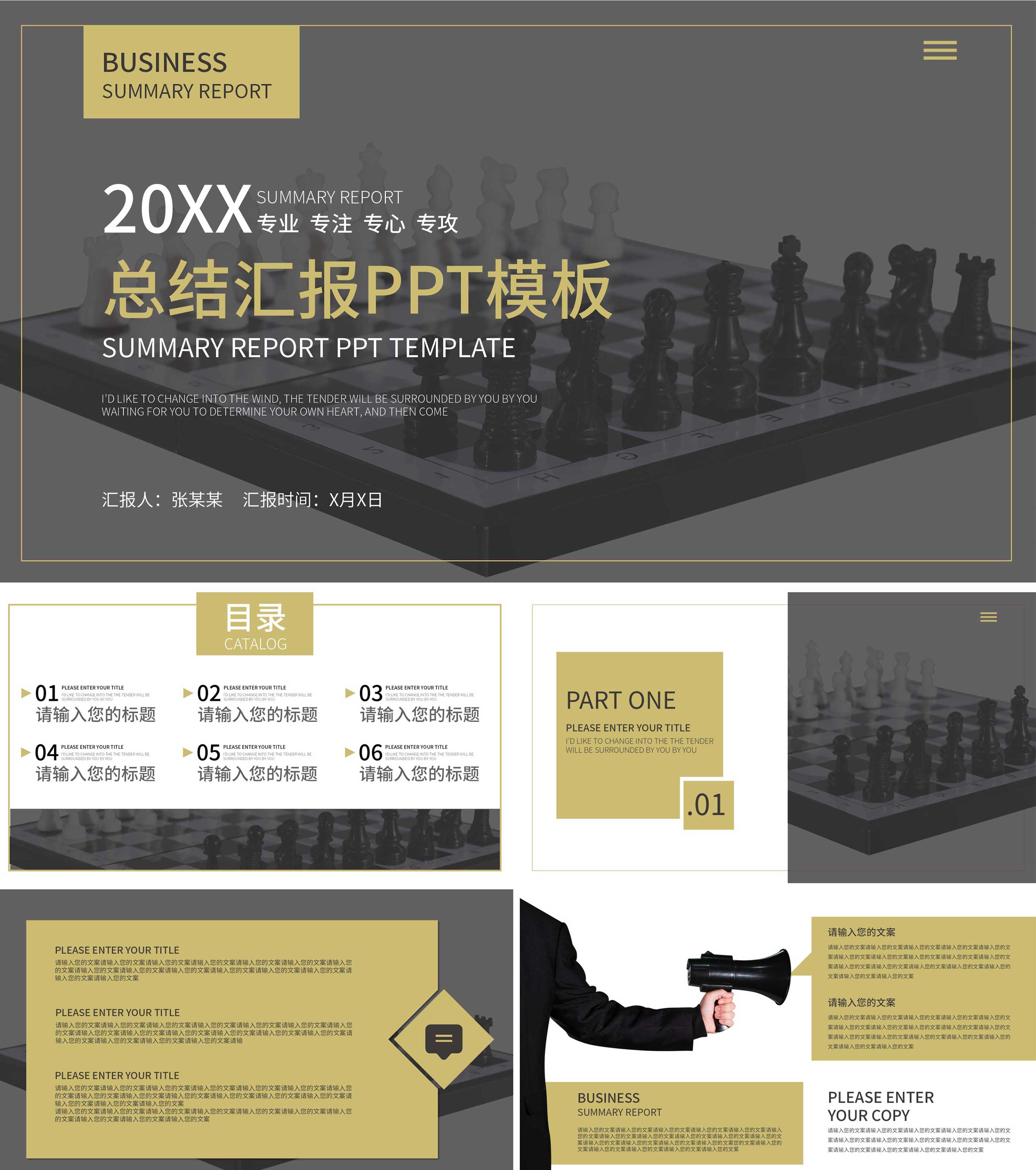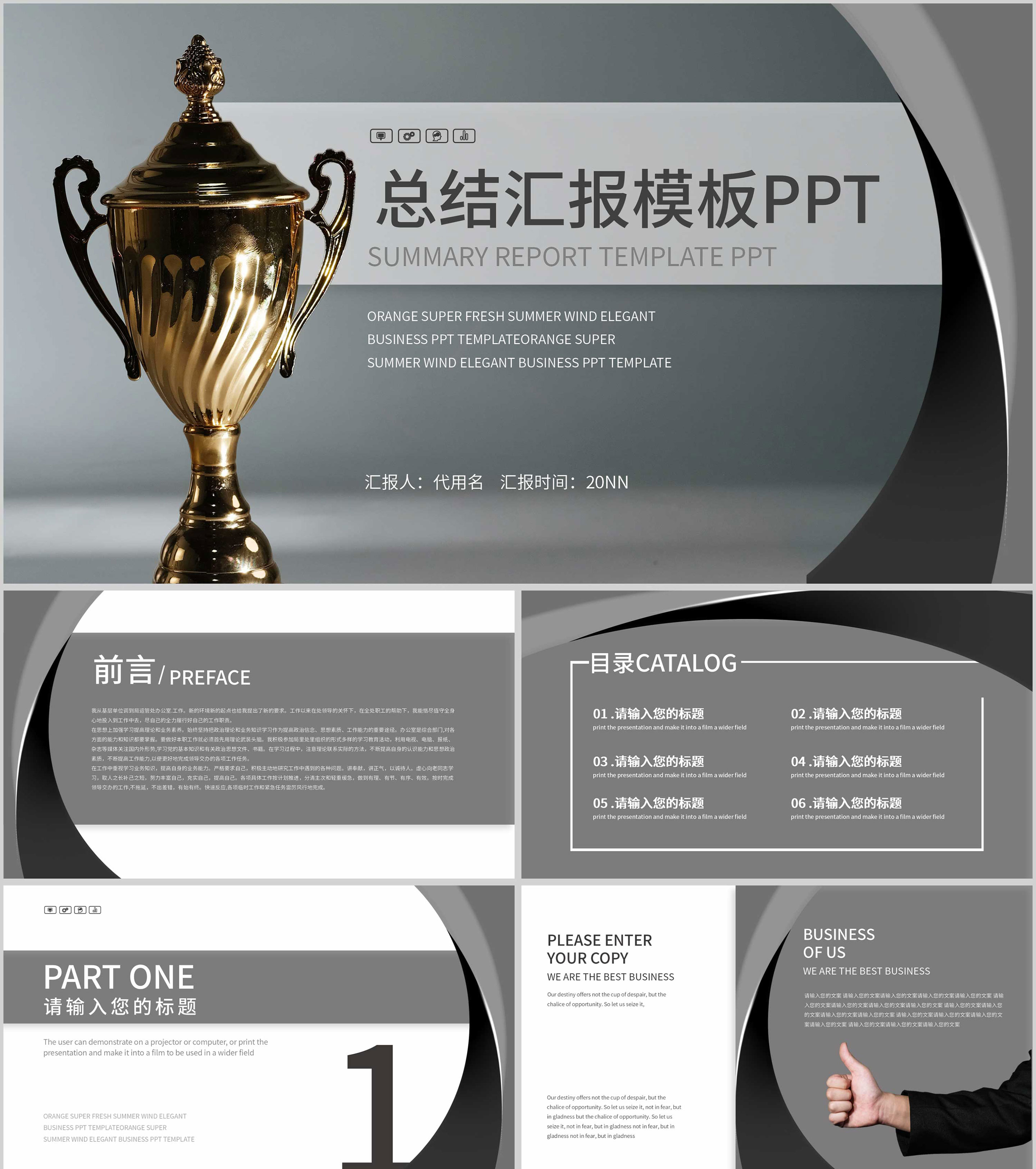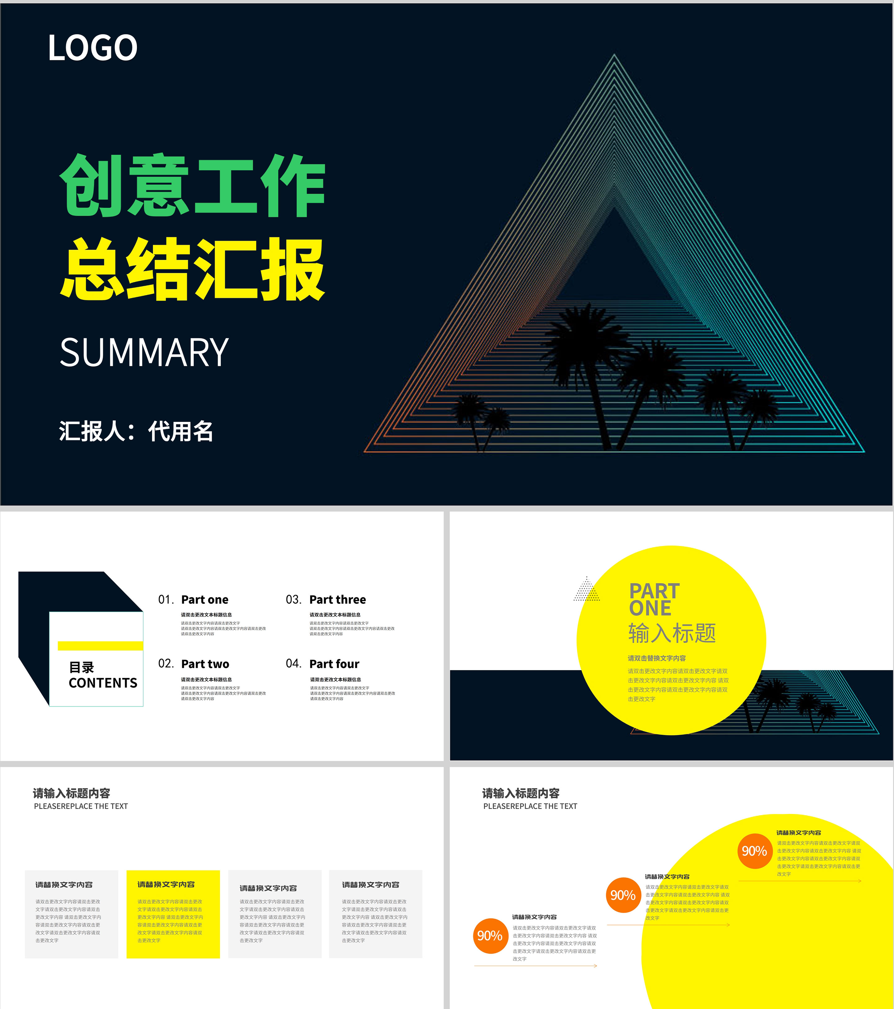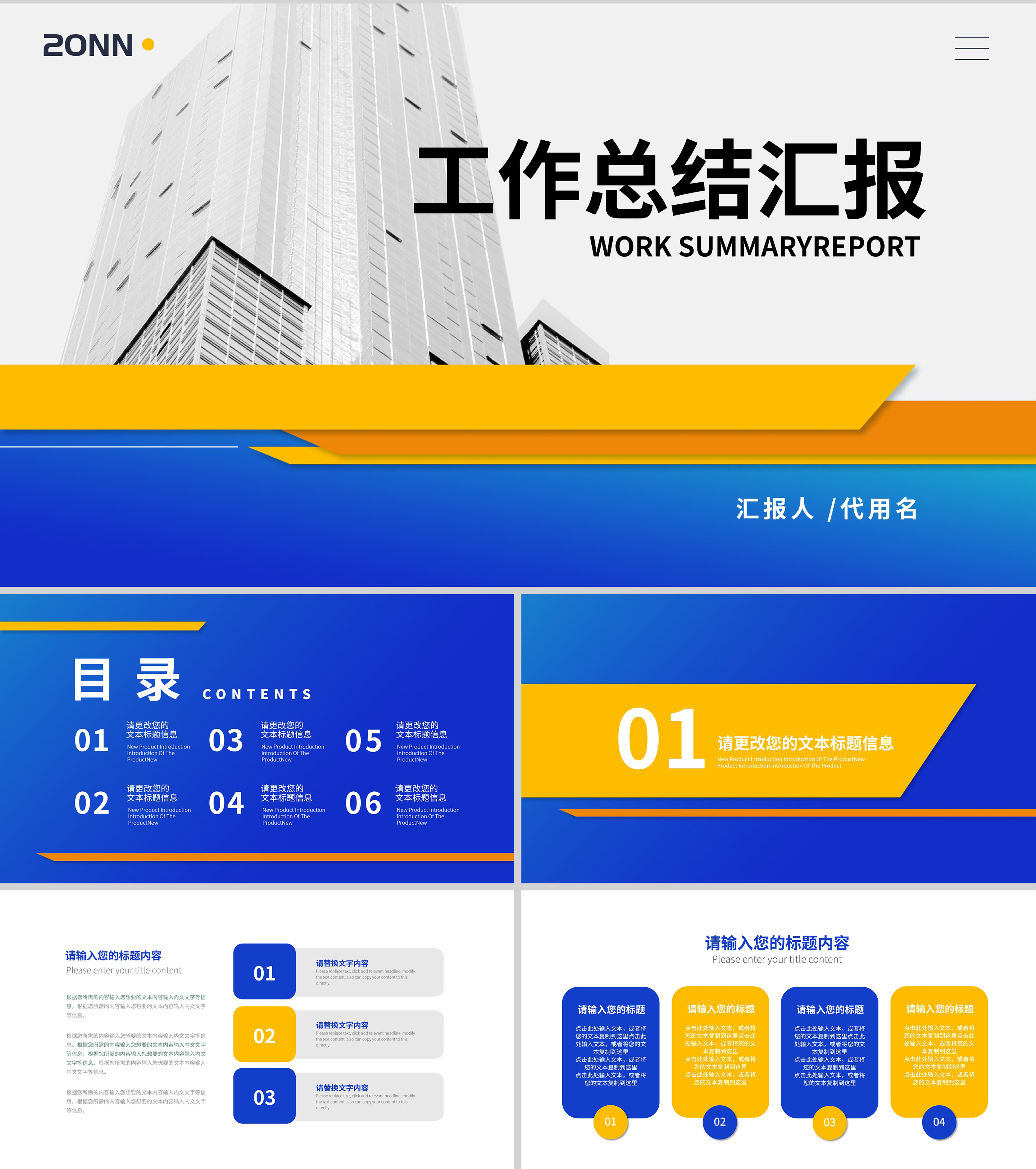 紫黄拼色几何风都市月度总结汇报PPT模板