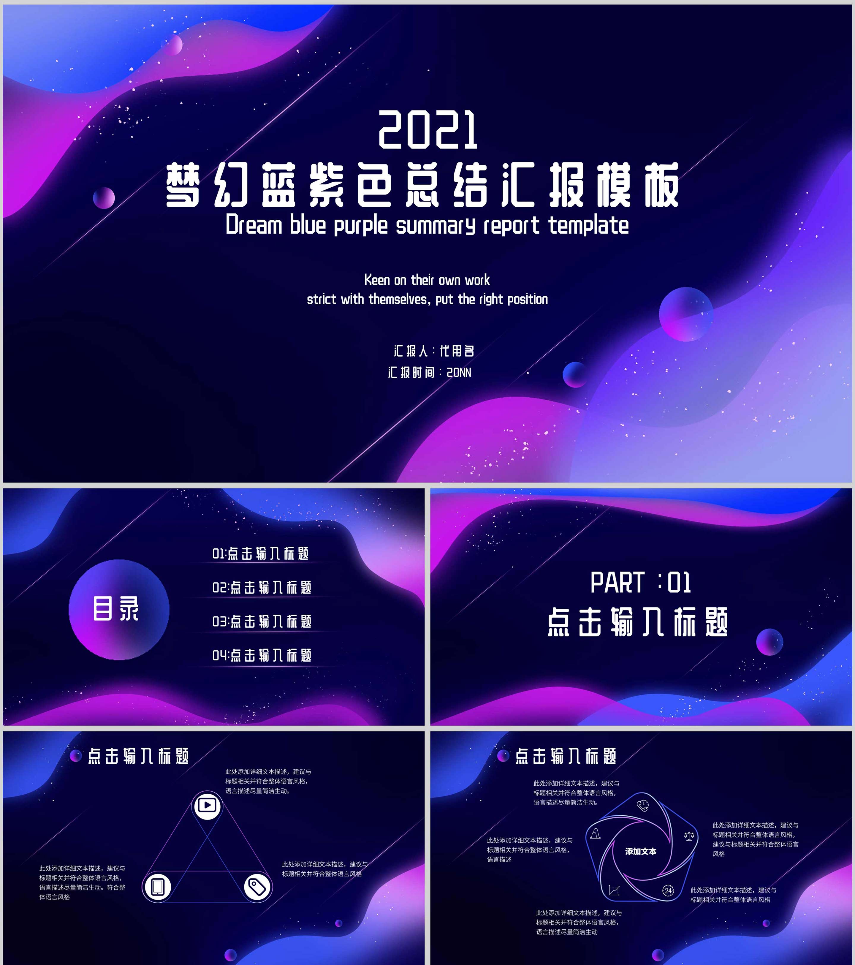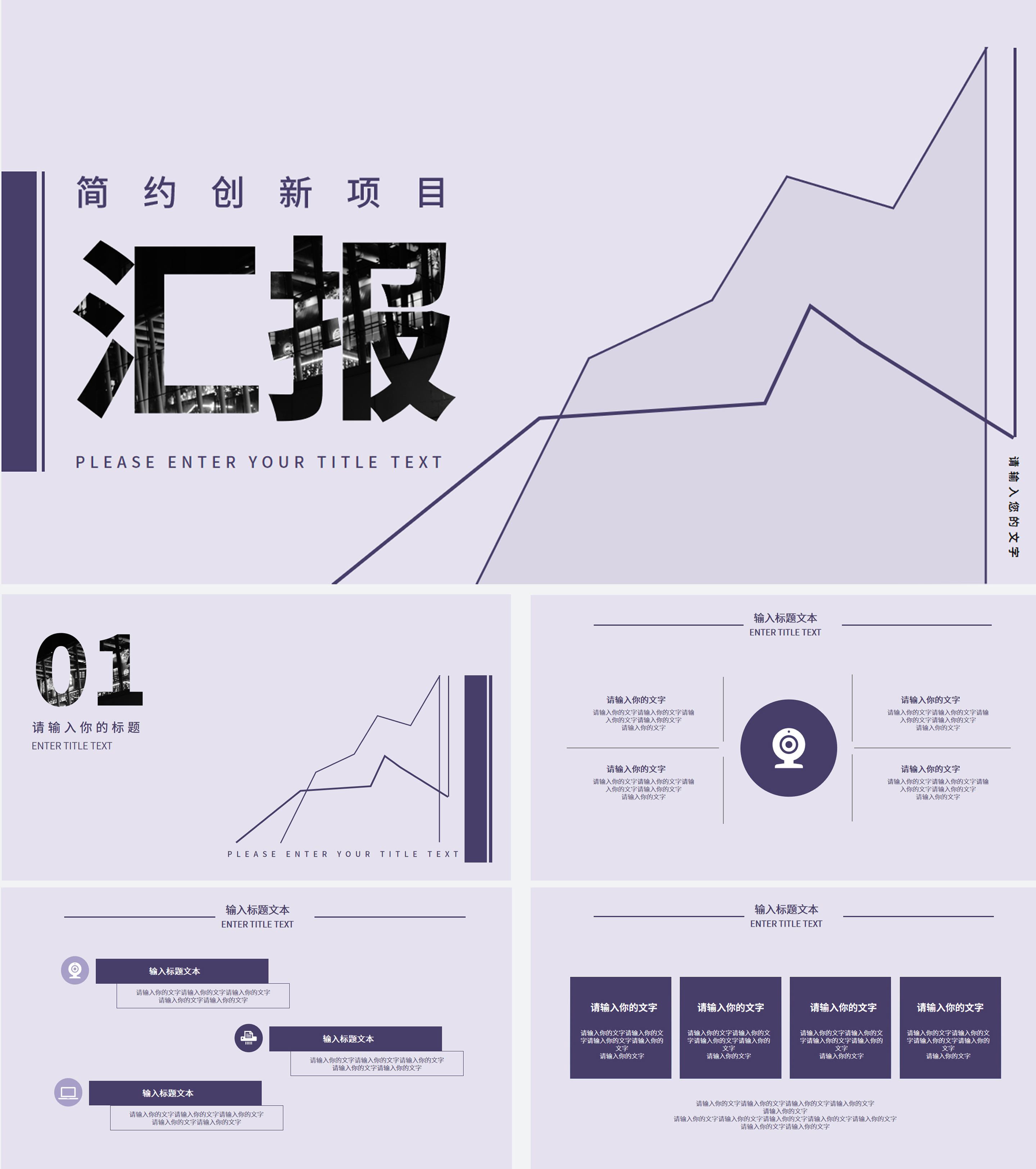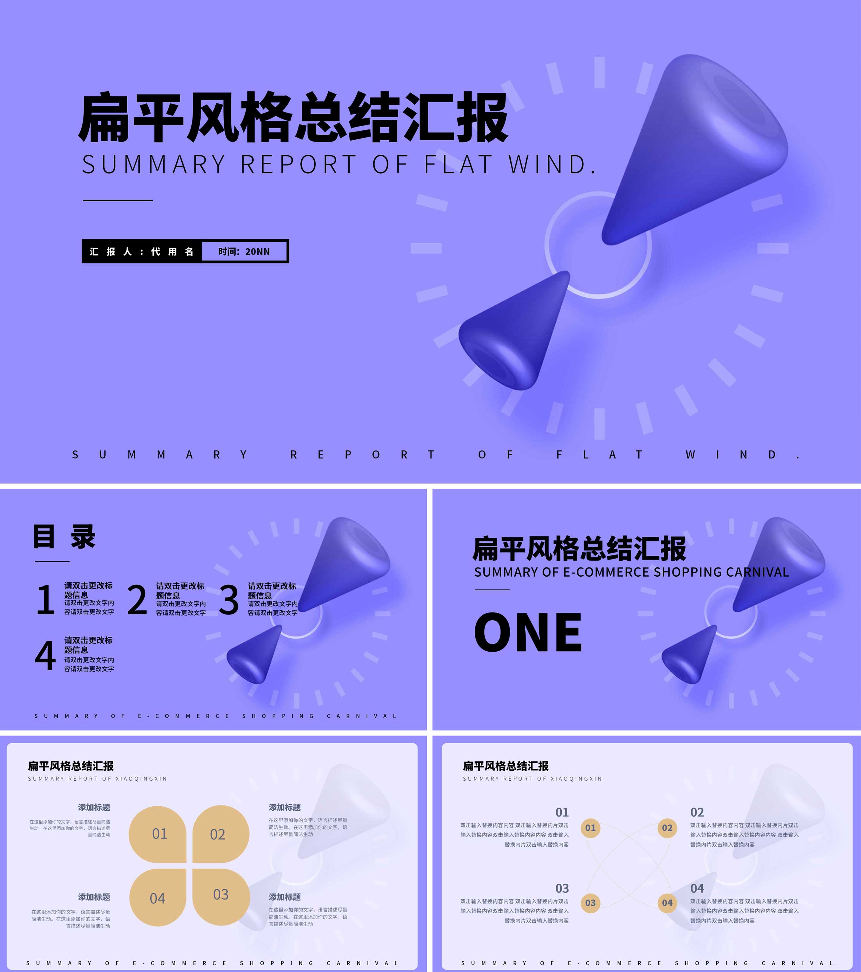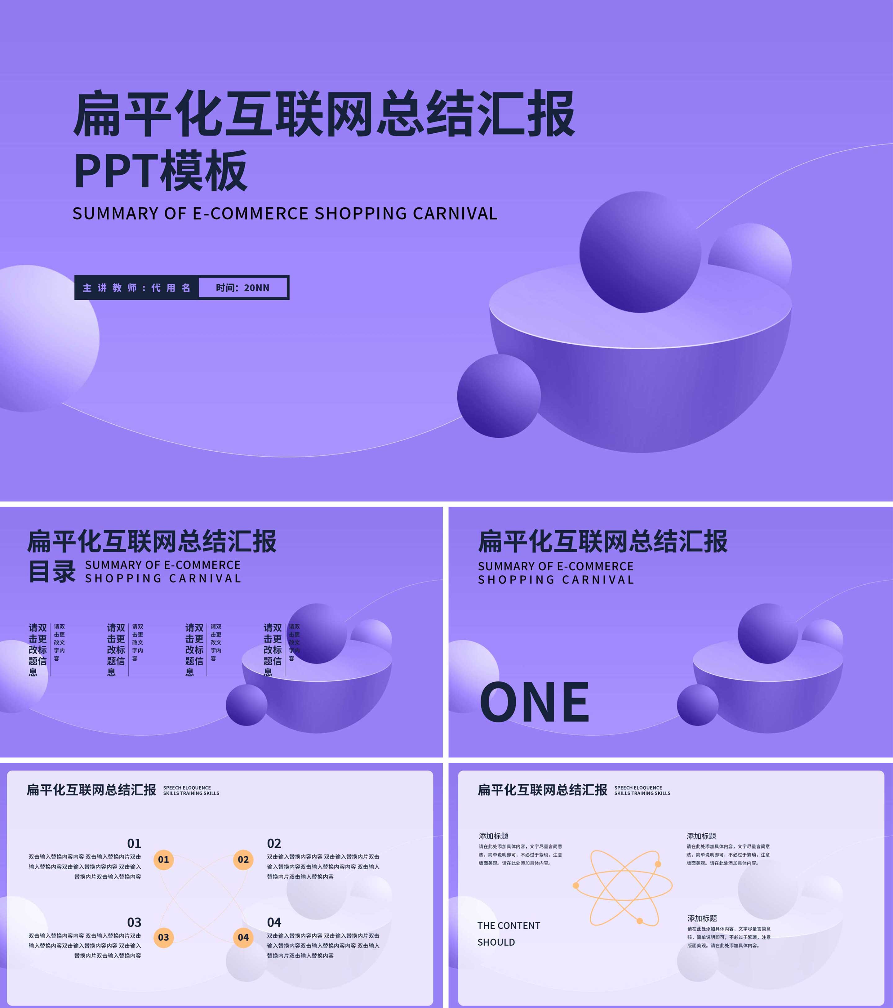 紫色微立体互联网员工职场通用总结汇报PPT模板