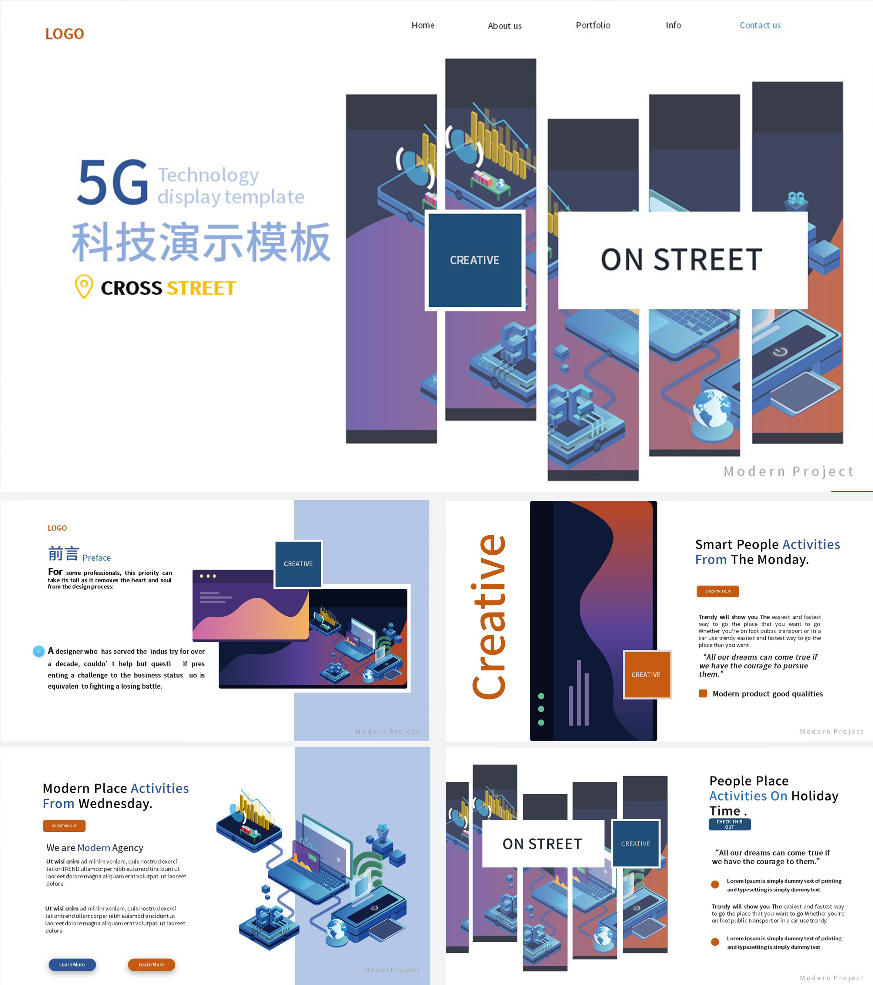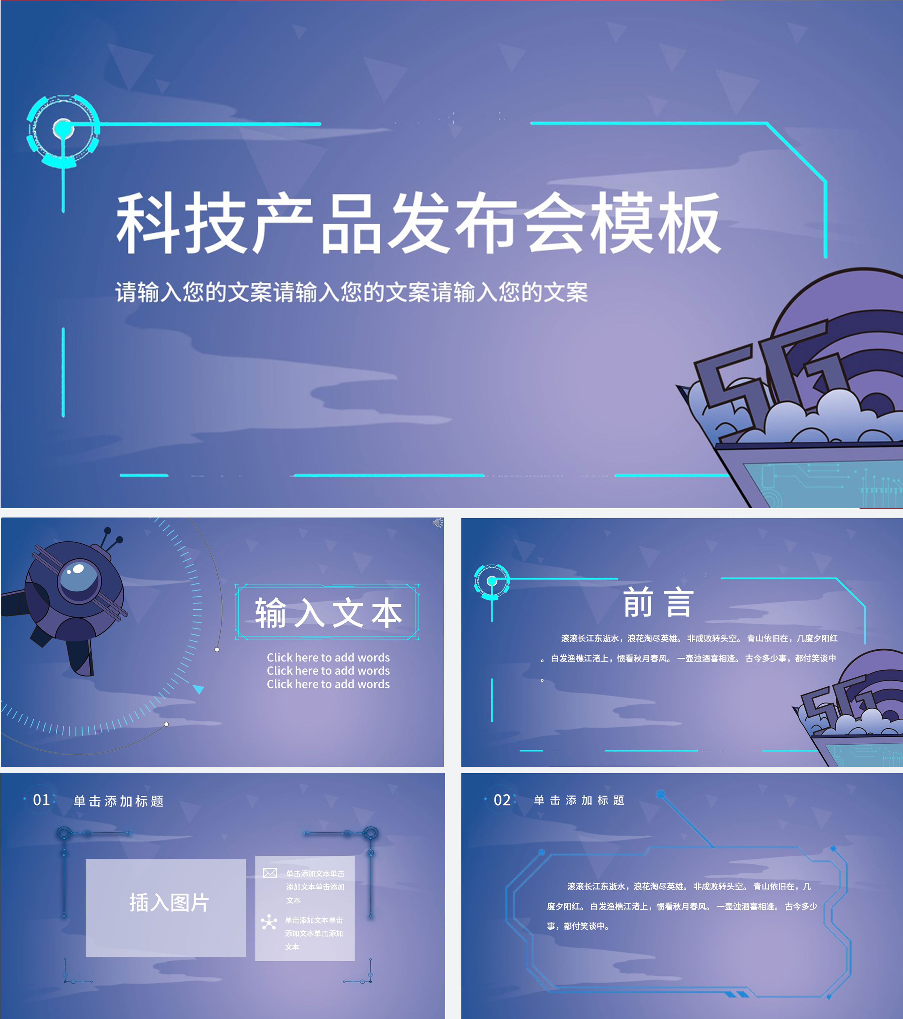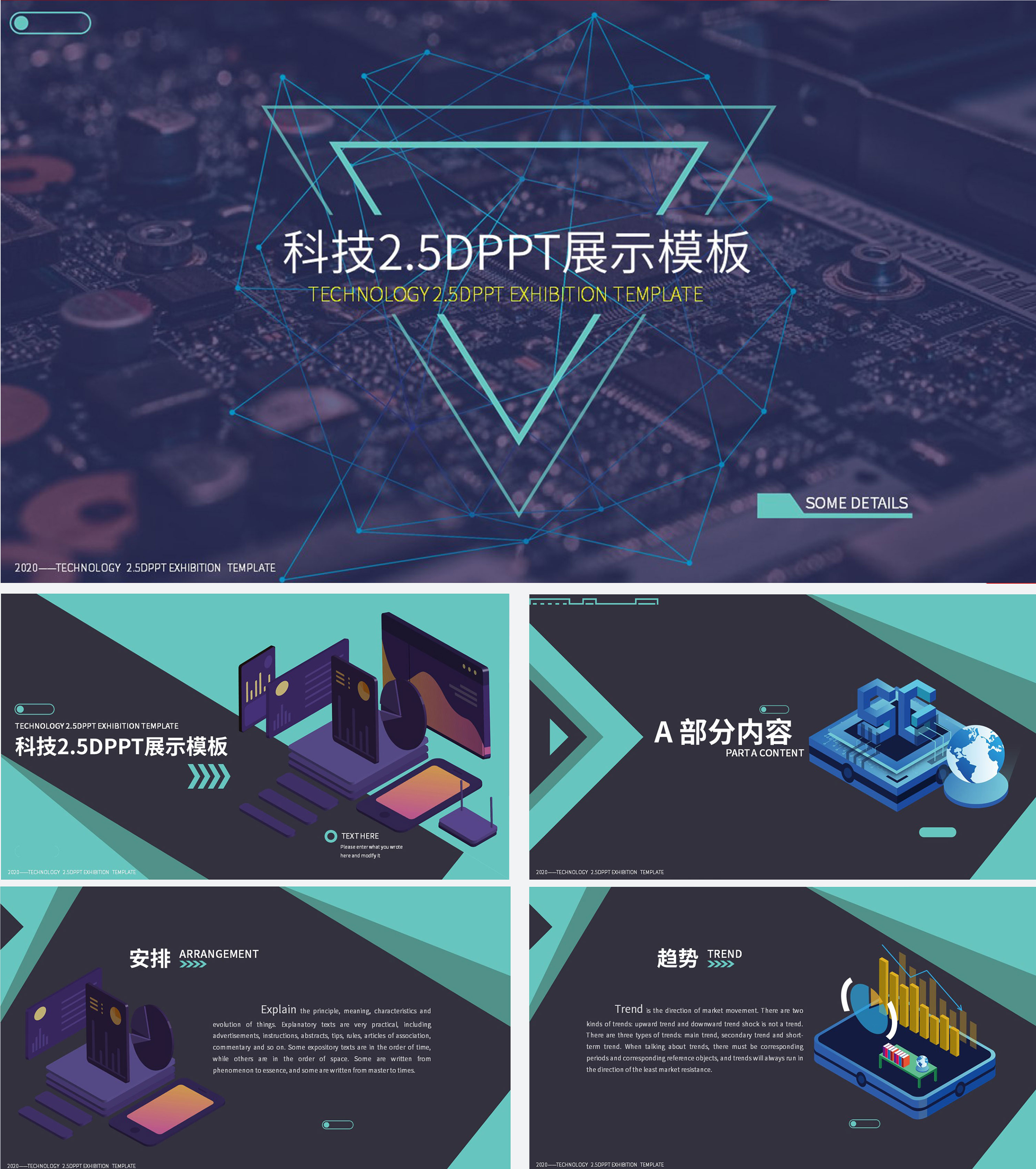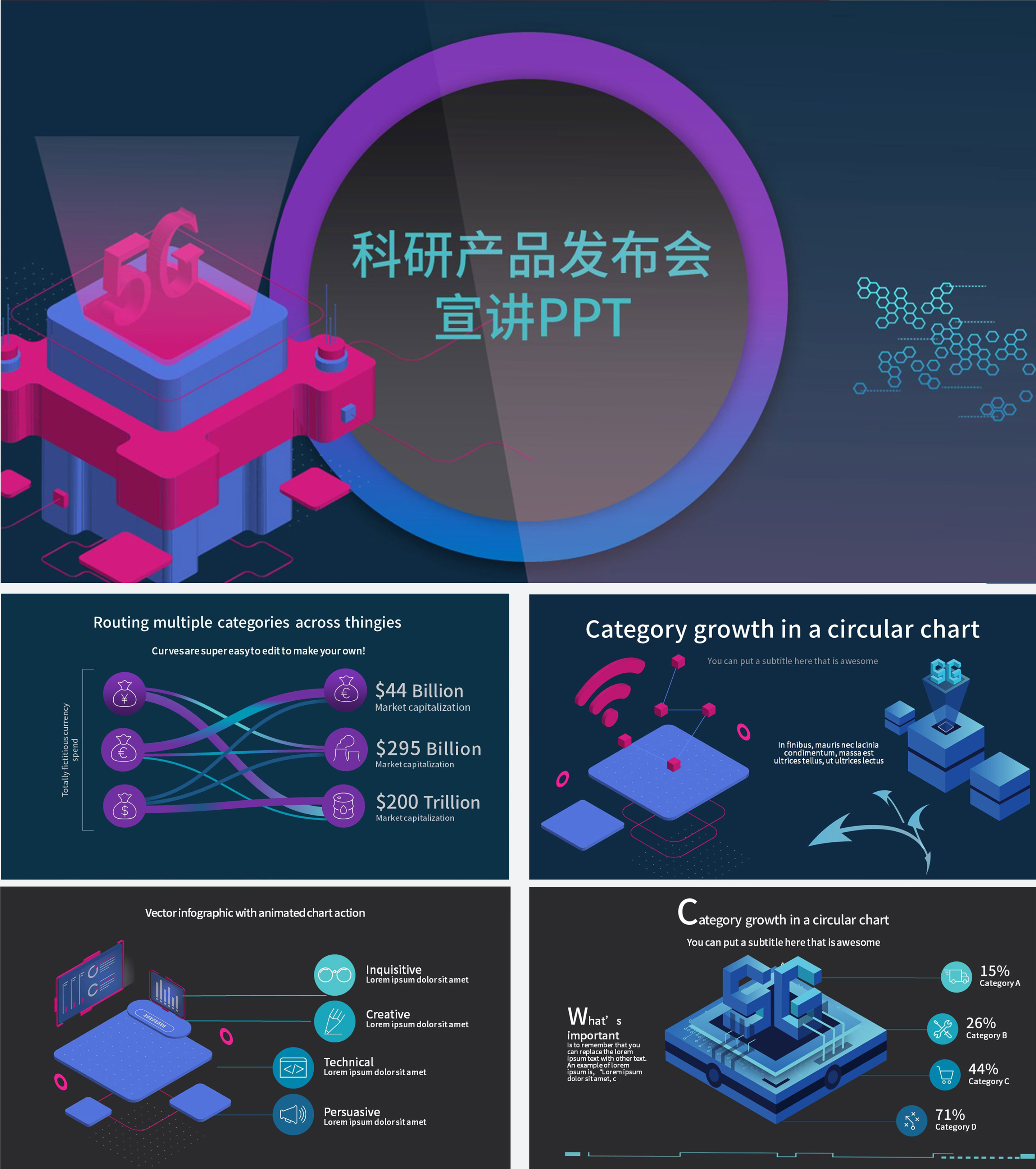 紫色微立体互联网员工职场通用总结汇报PPT模板
