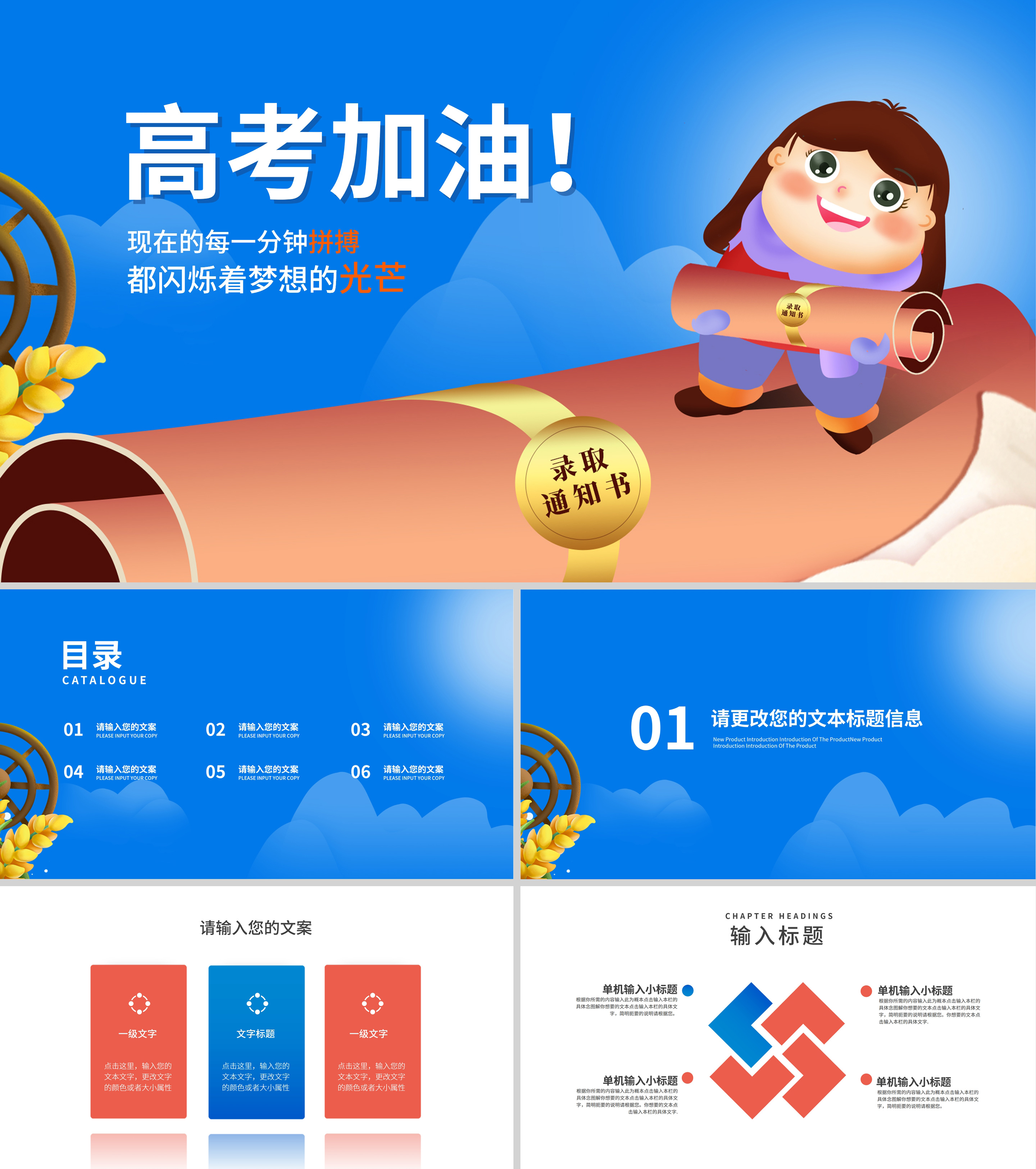 蓝色卡通风录取通知高考加油PPT模板