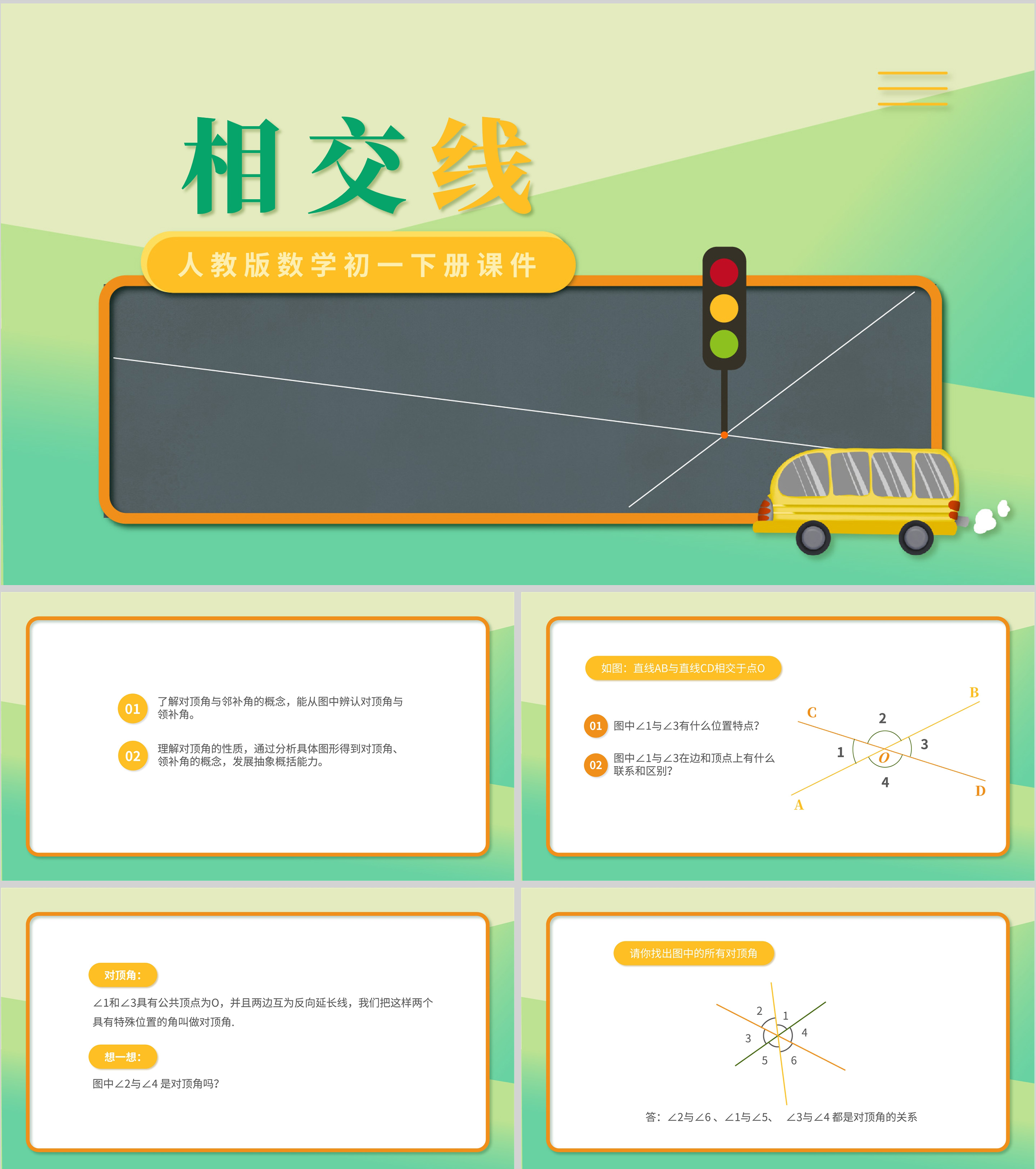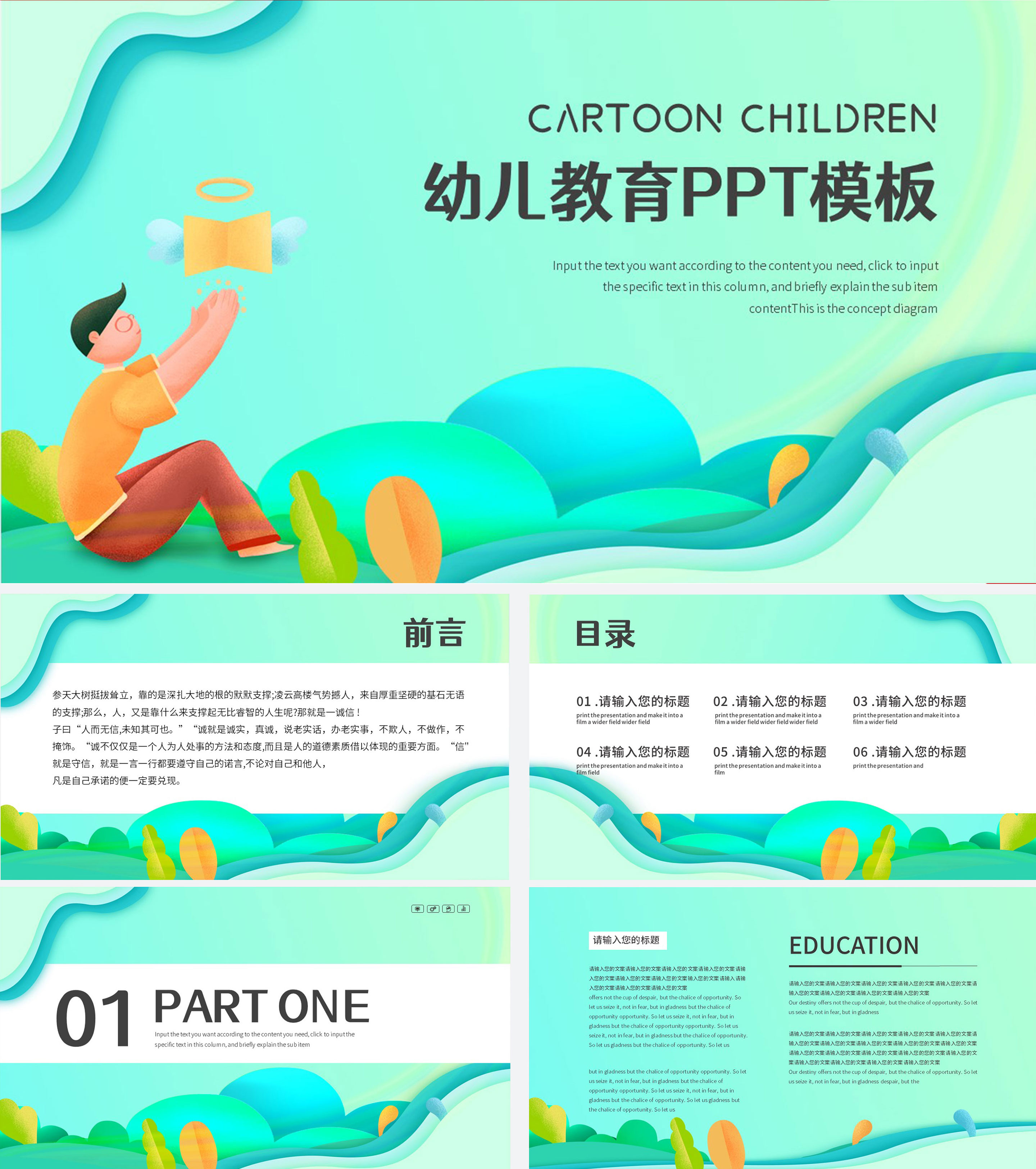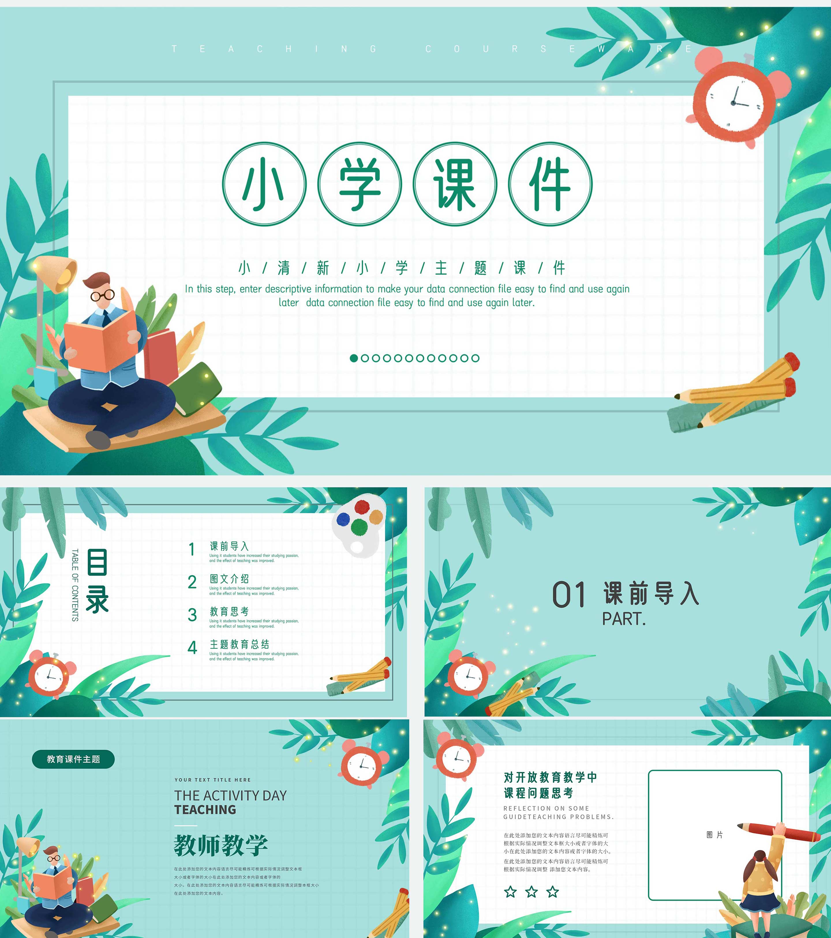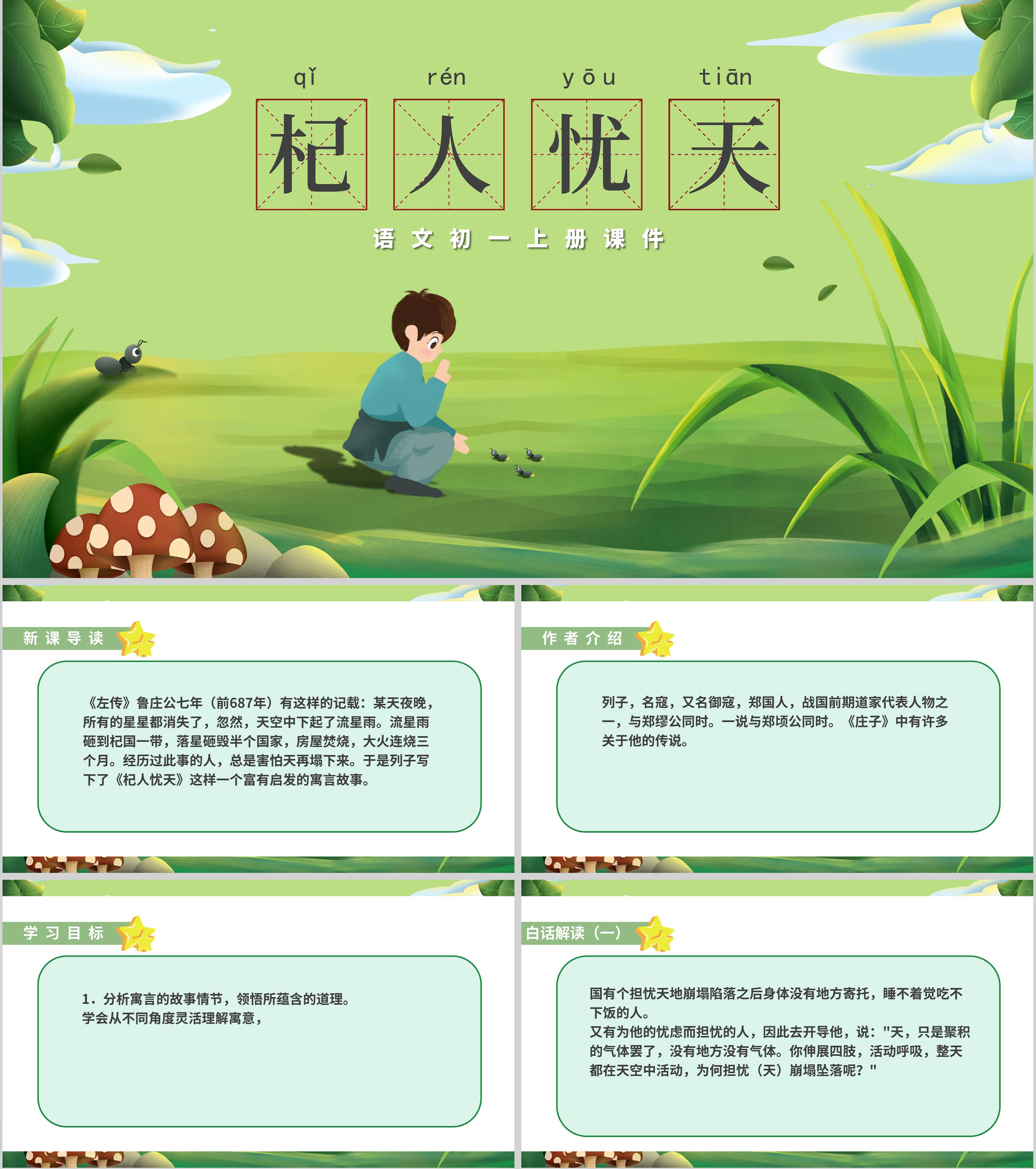 绿色卡通风语文初一课件杞人忧天PPT模板