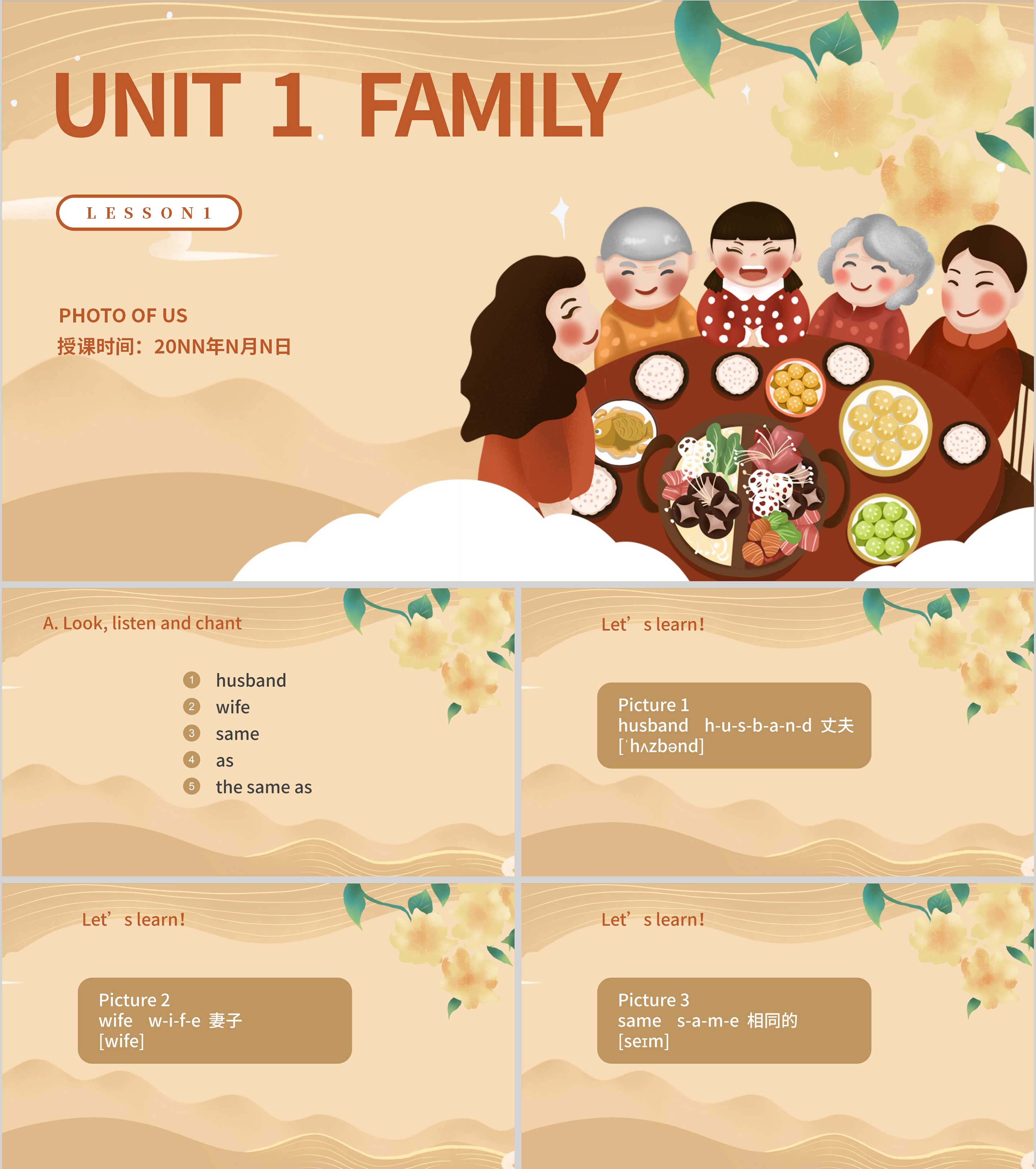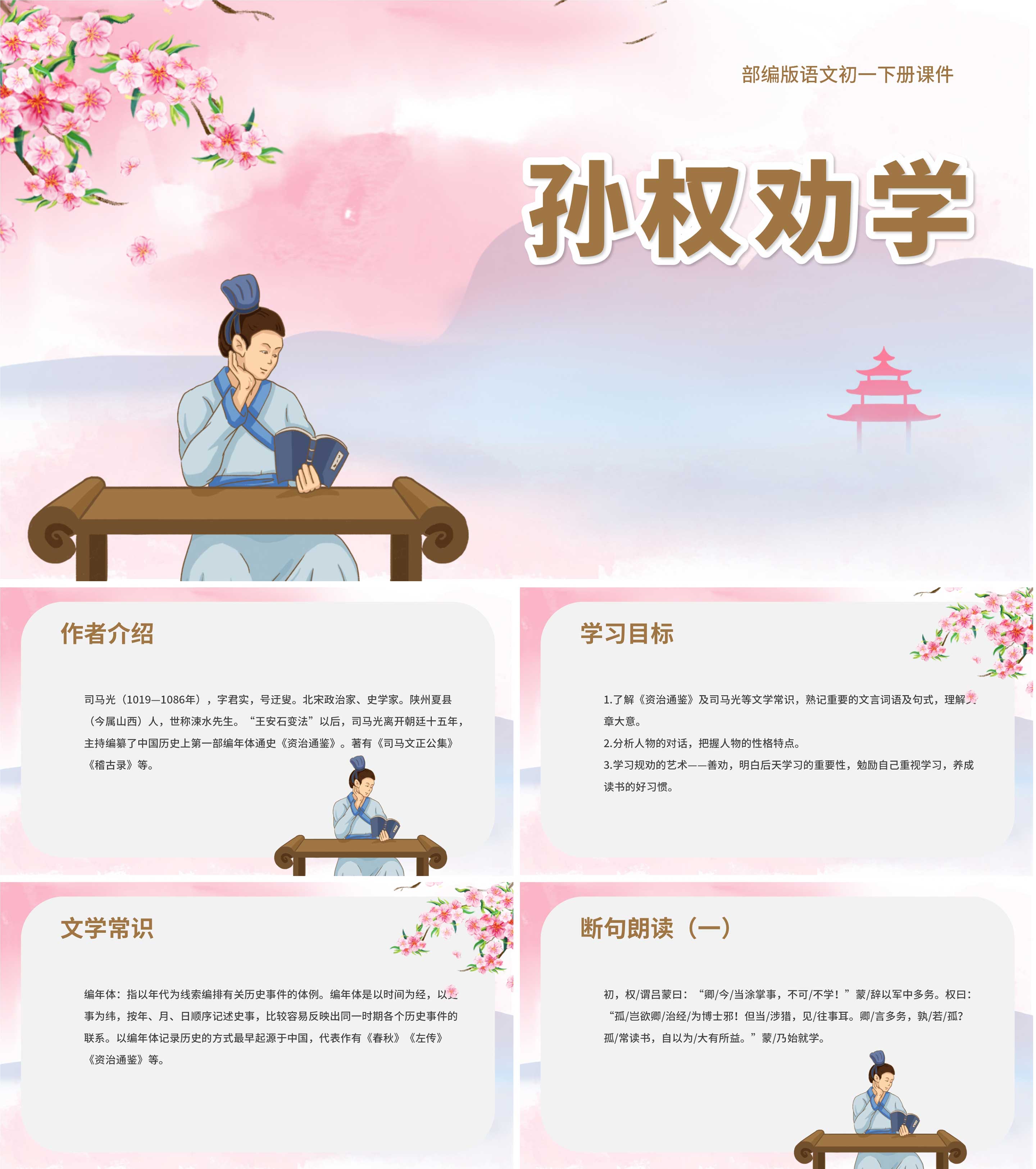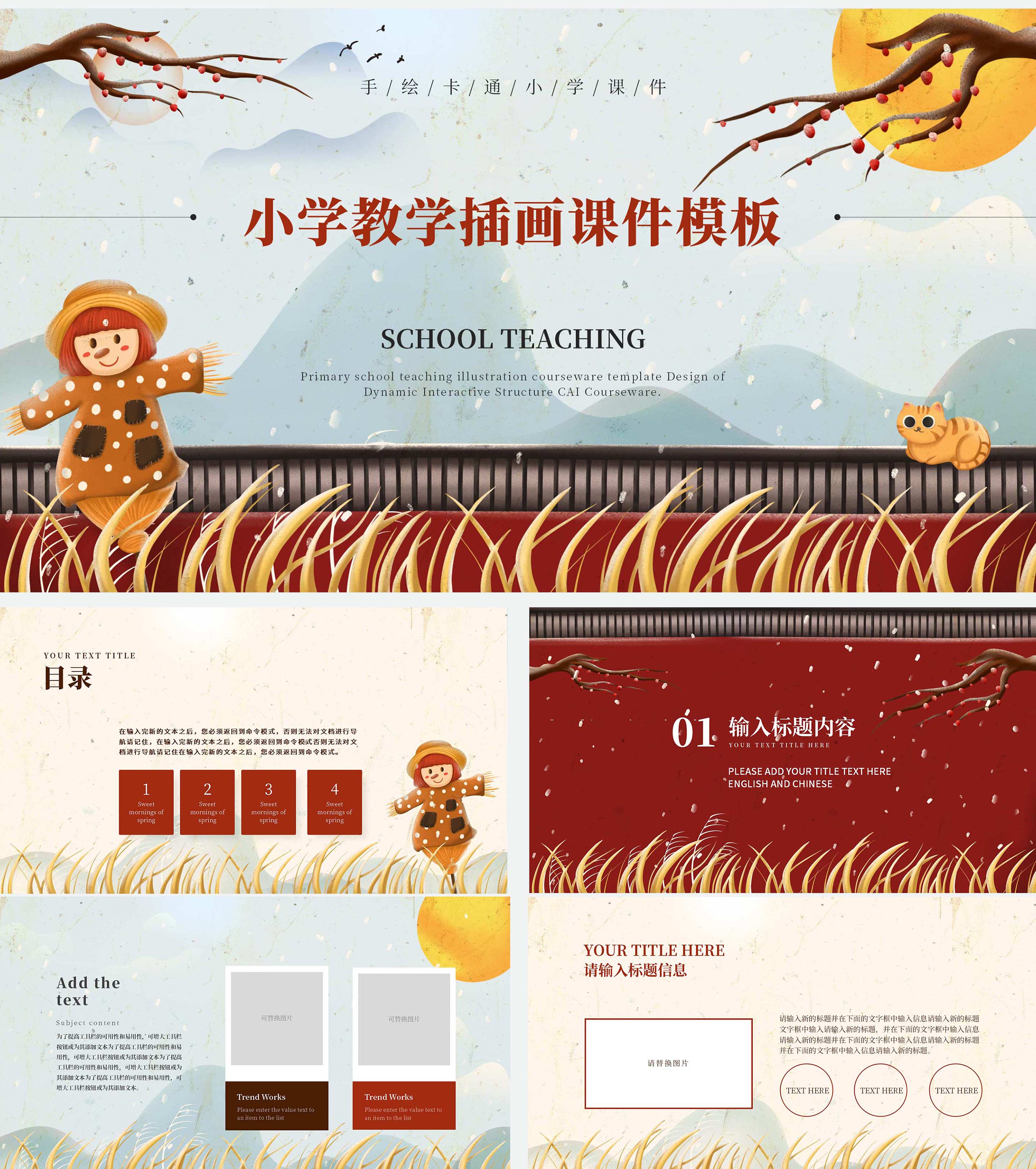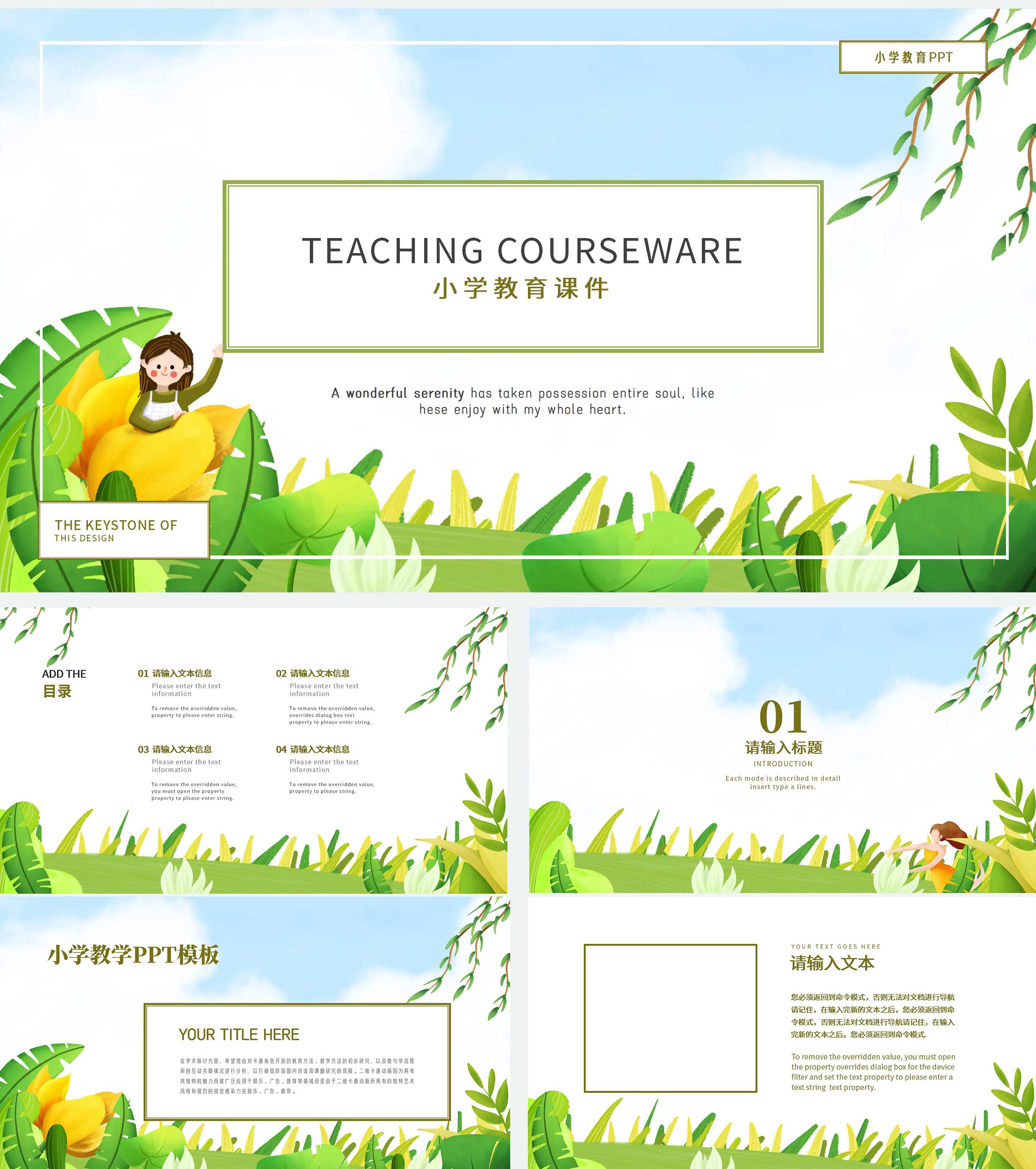 橘粉色卡通可爱小女孩教学课件PPT模板