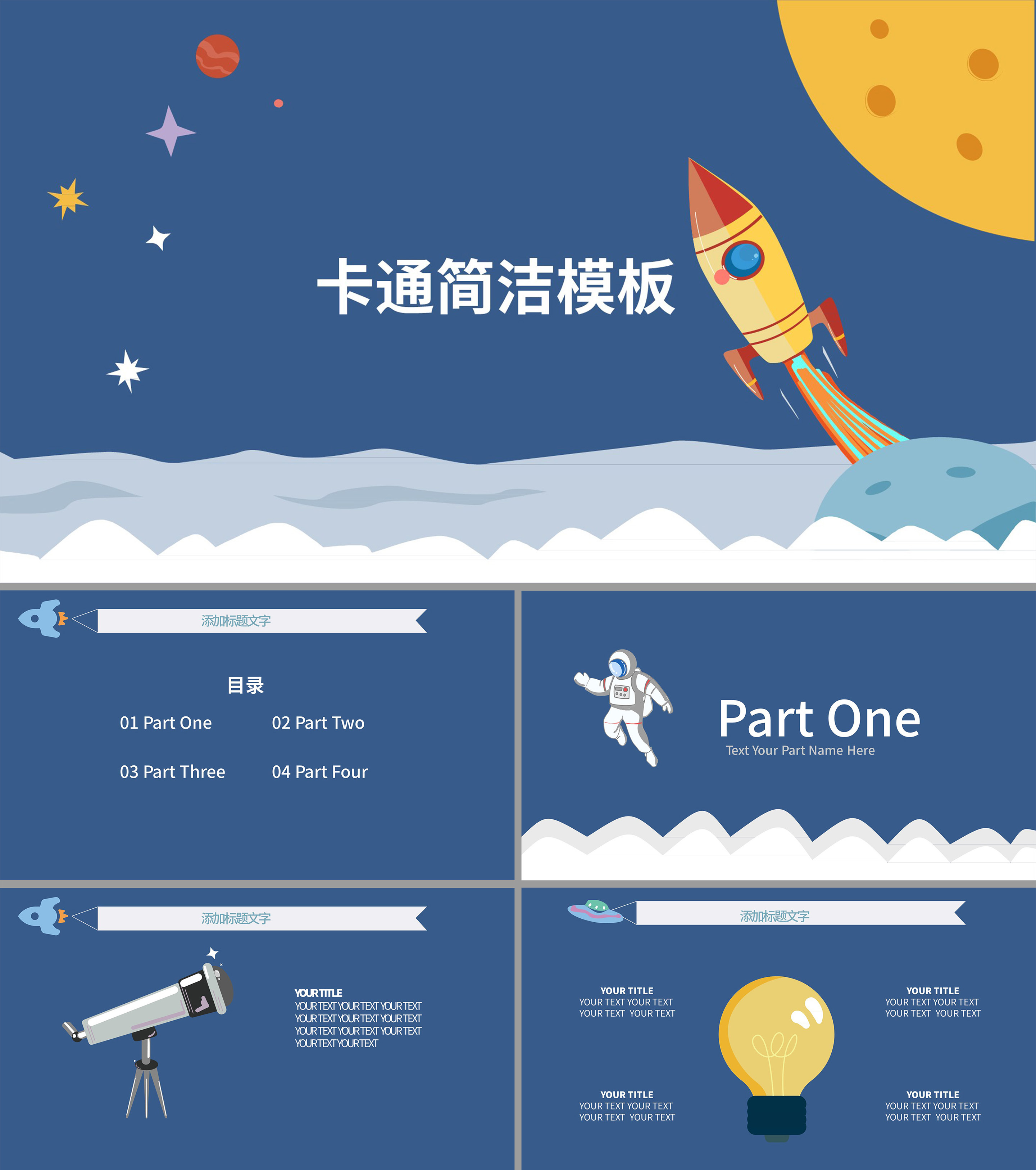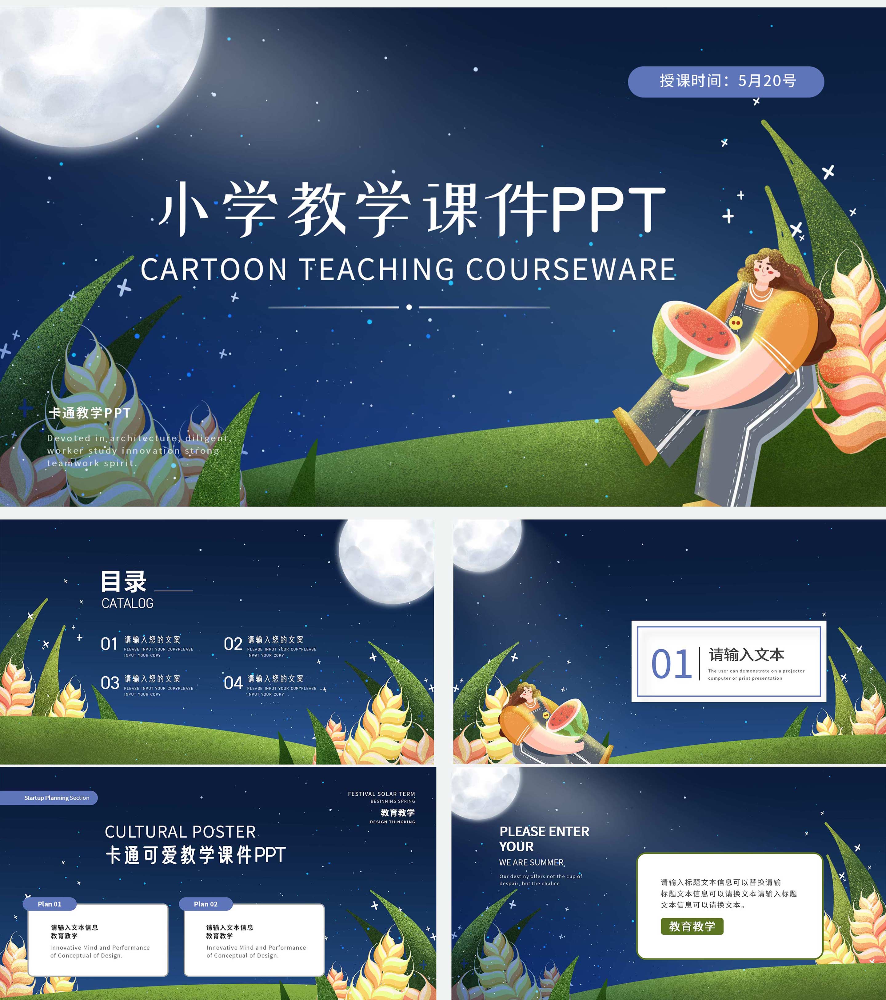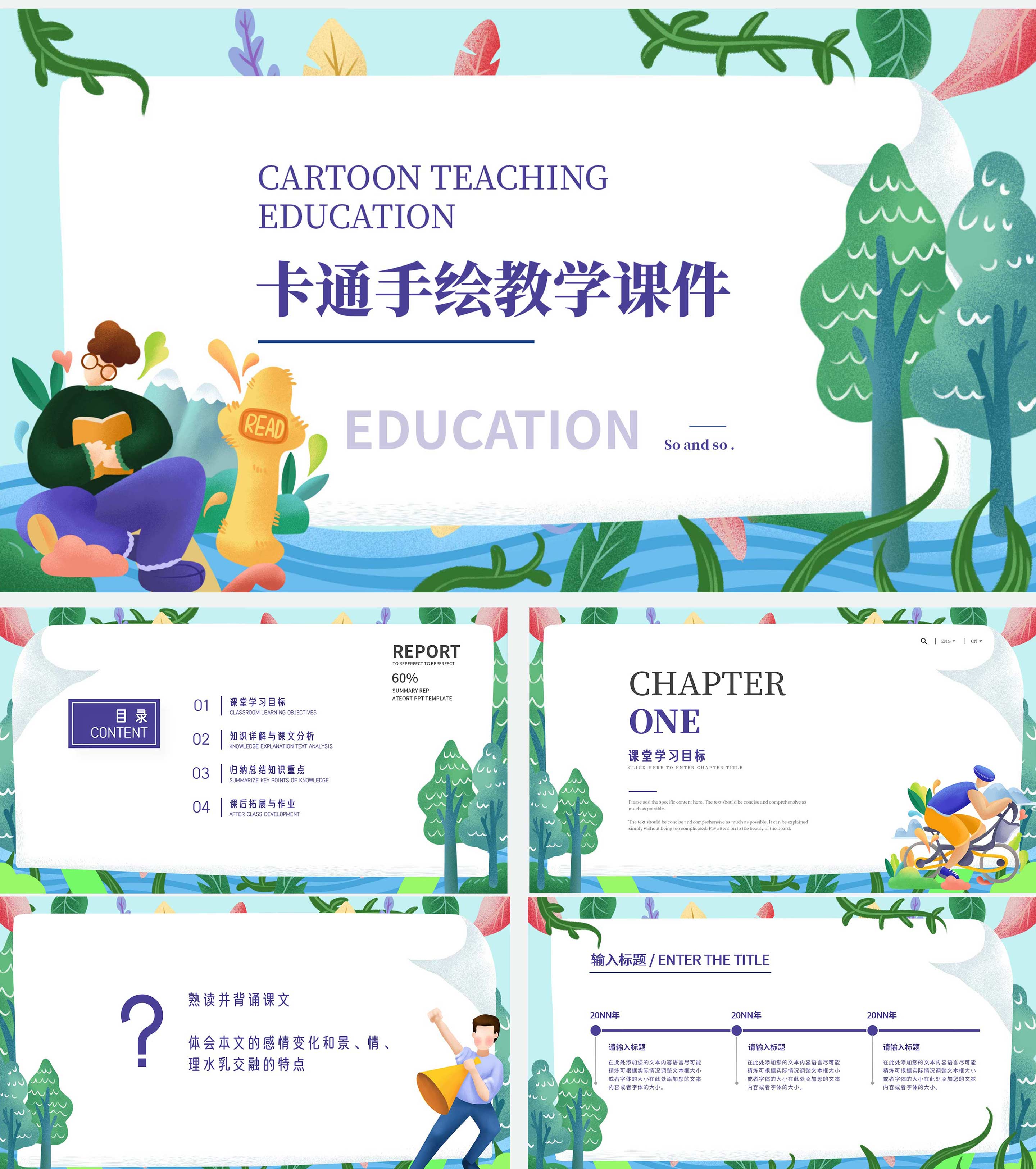 蓝色小清新卡通五年级英语我家附近课件PPT模板
