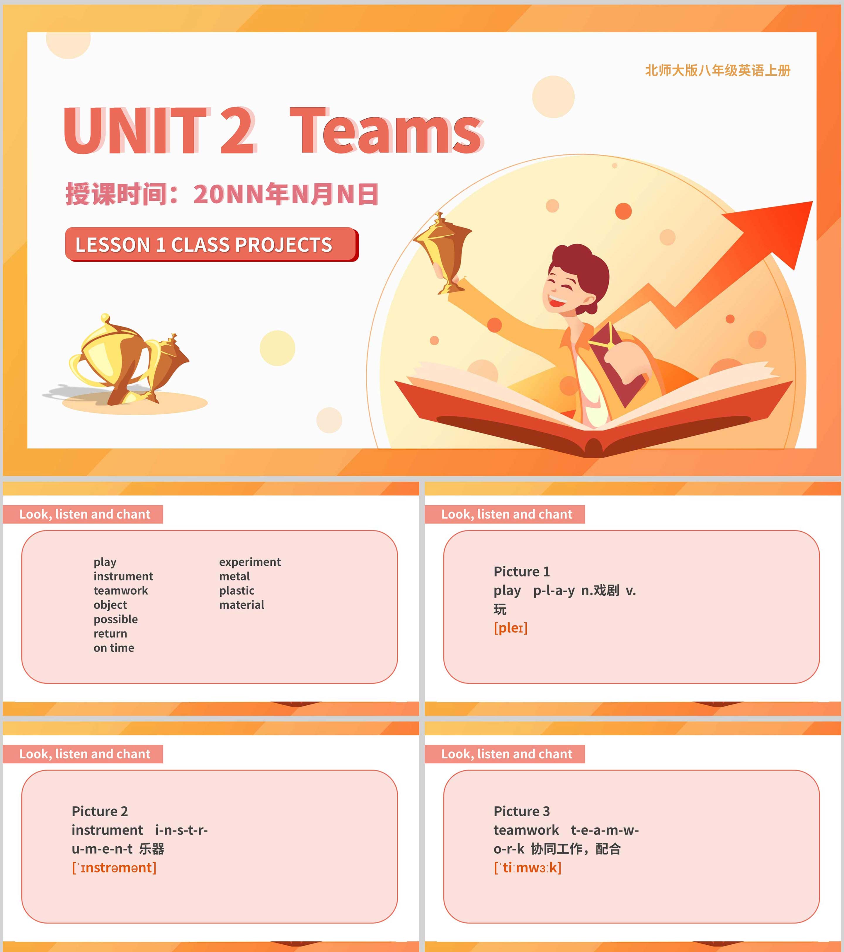 蓝色扁平风八年级英语班级专题课件PPT模板