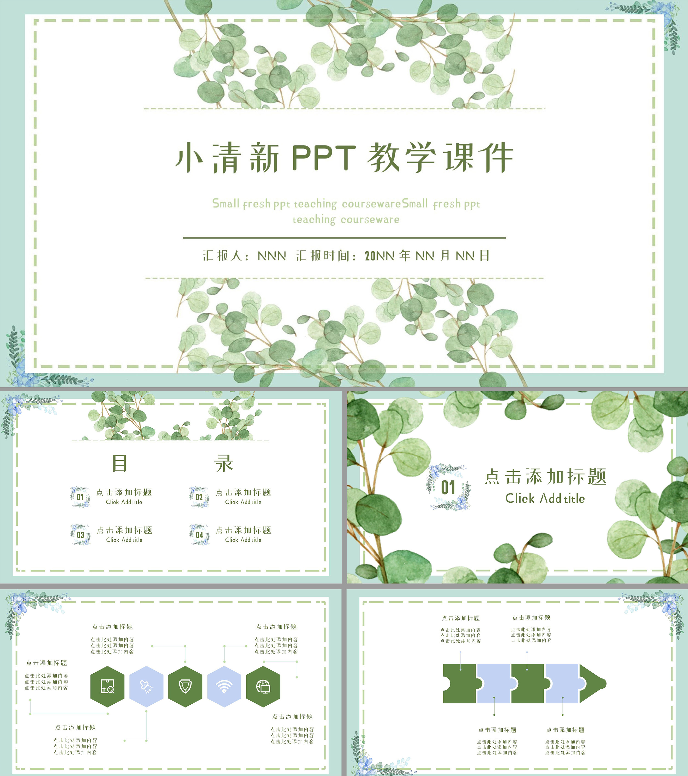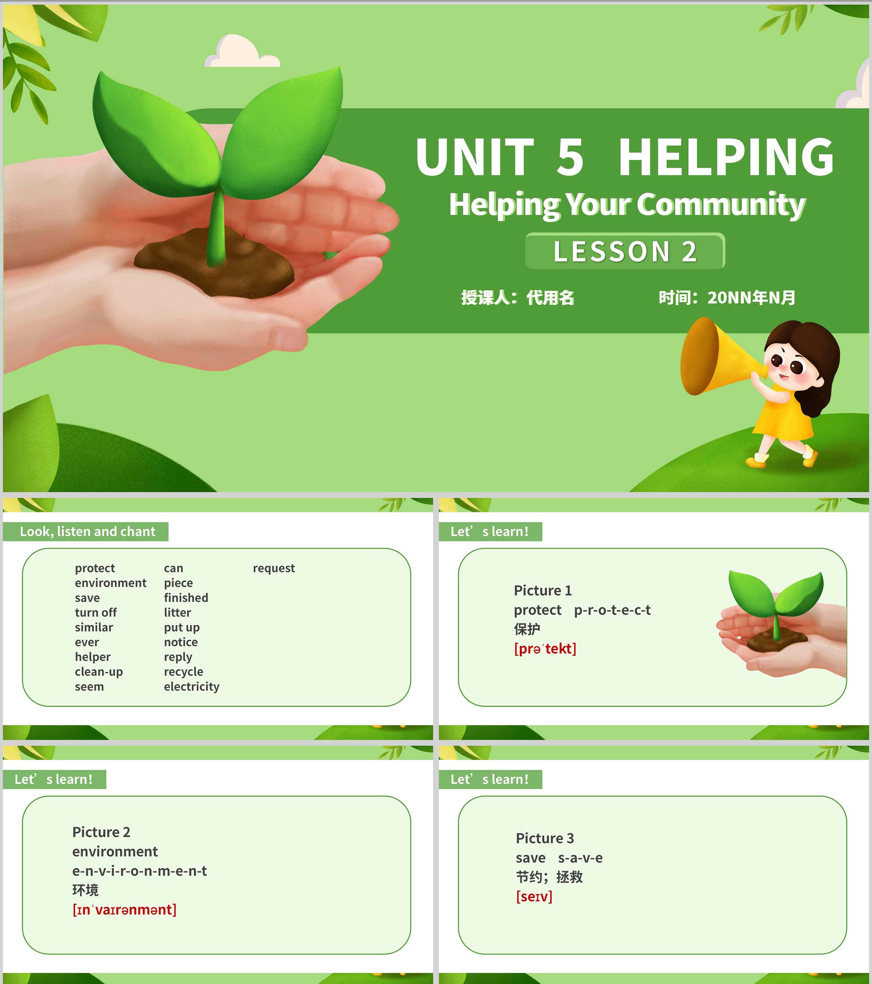 绿色卡通风八年级英语帮助社区环境课件PPT模板