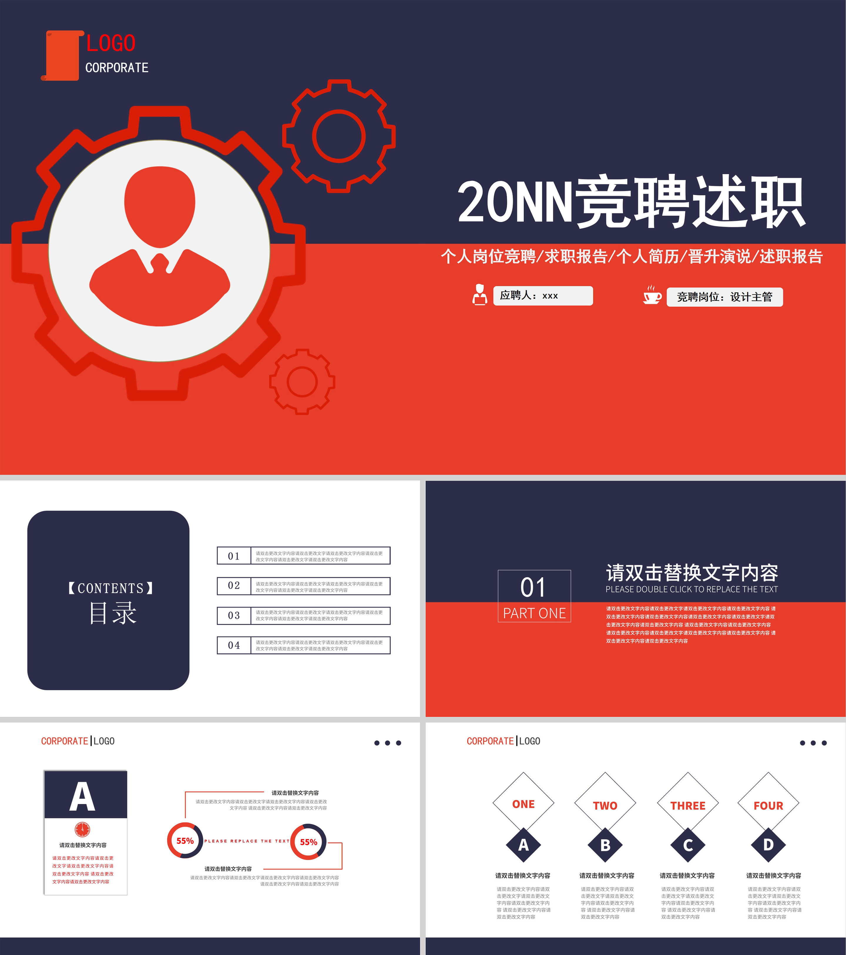 红蓝撞色商务风竞聘述职PPT模板