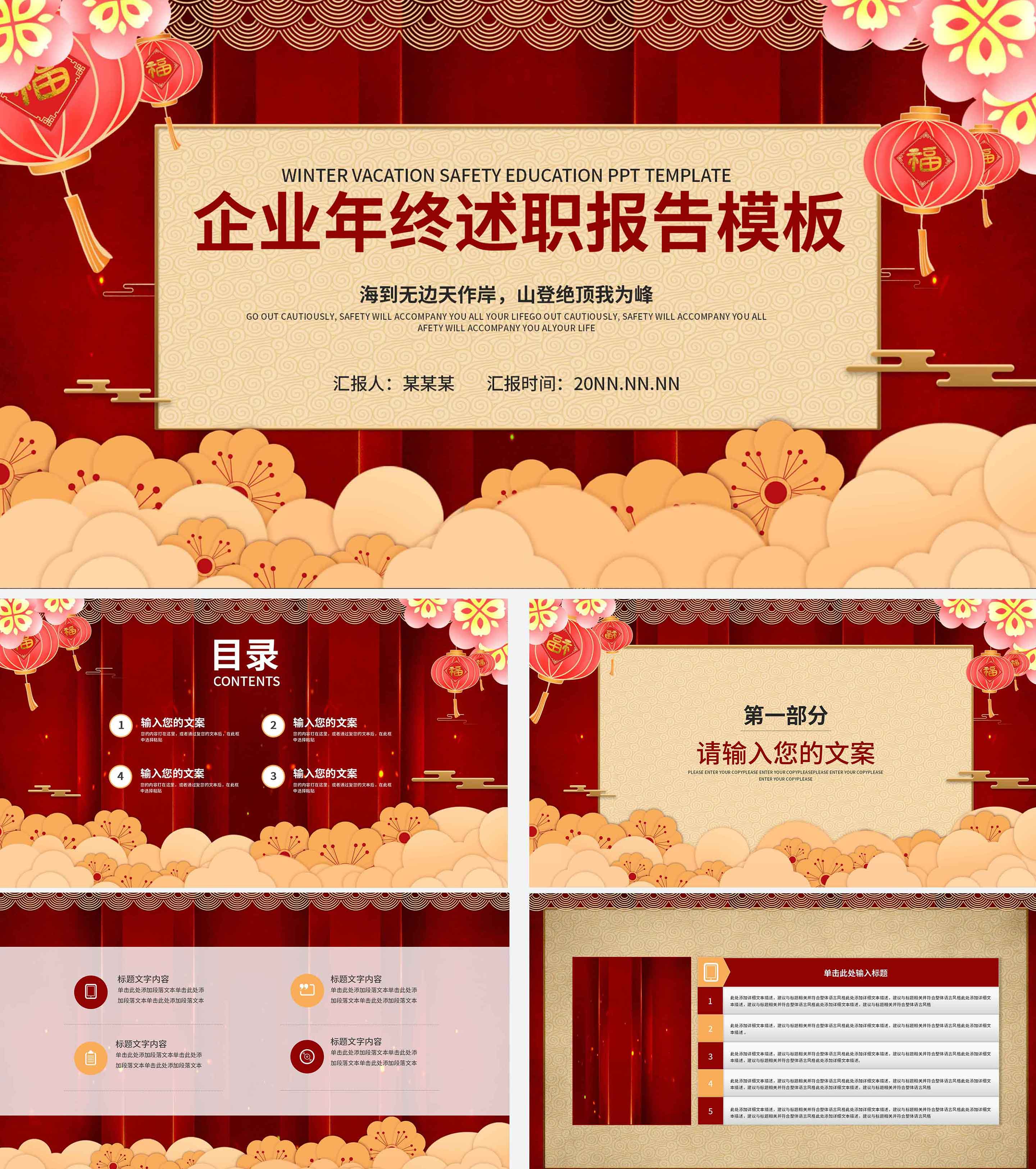 红色祥云灯笼年终述职PPT模板