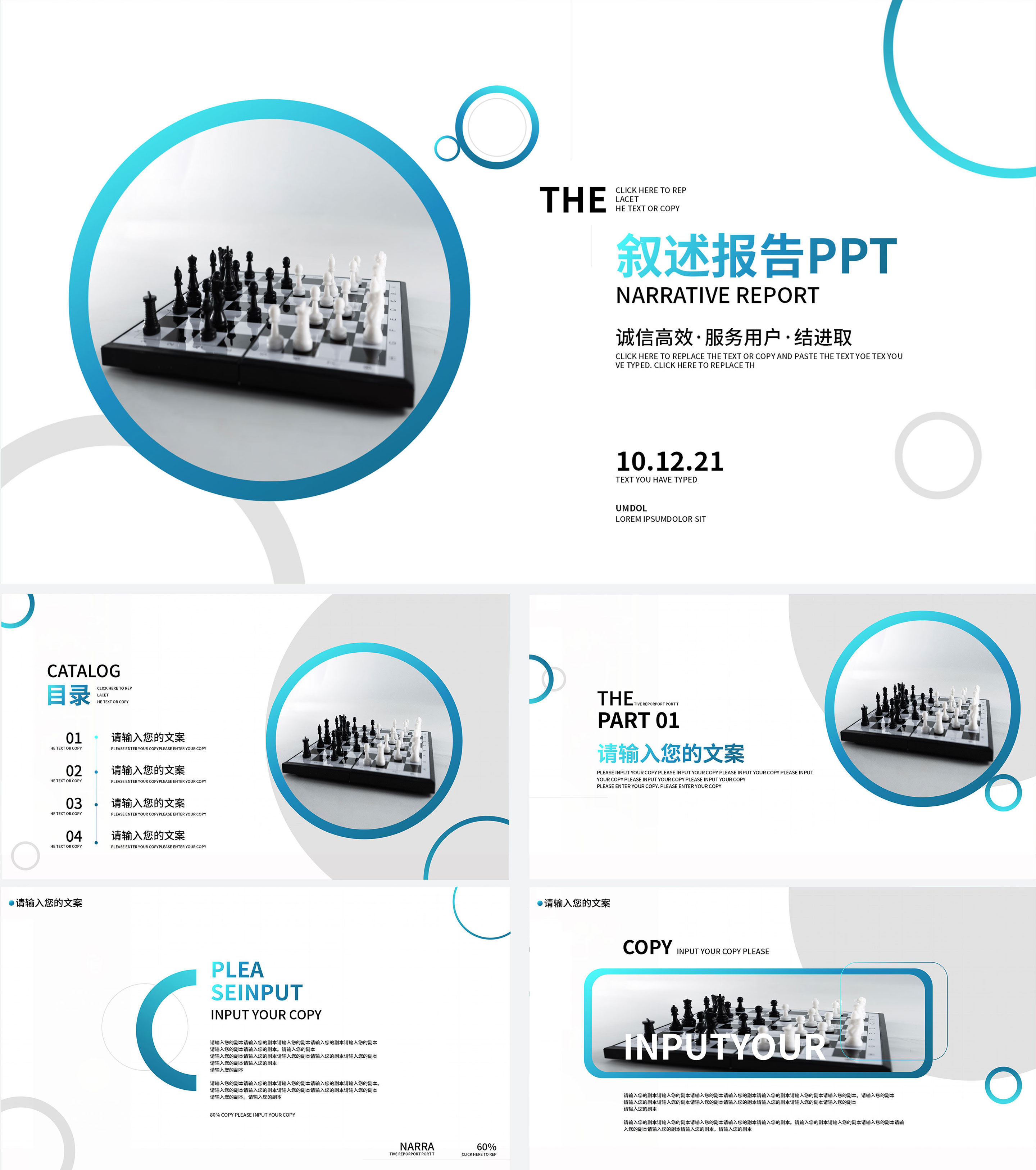 蓝色气泡年终述职PPT模板