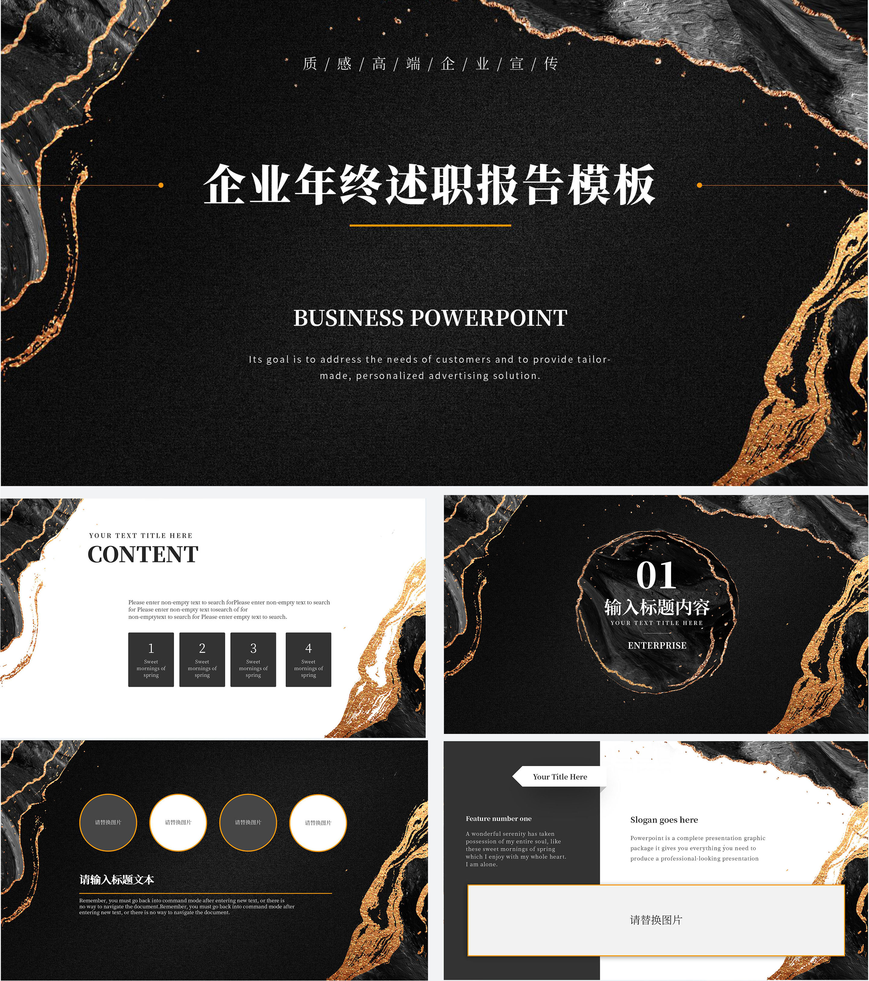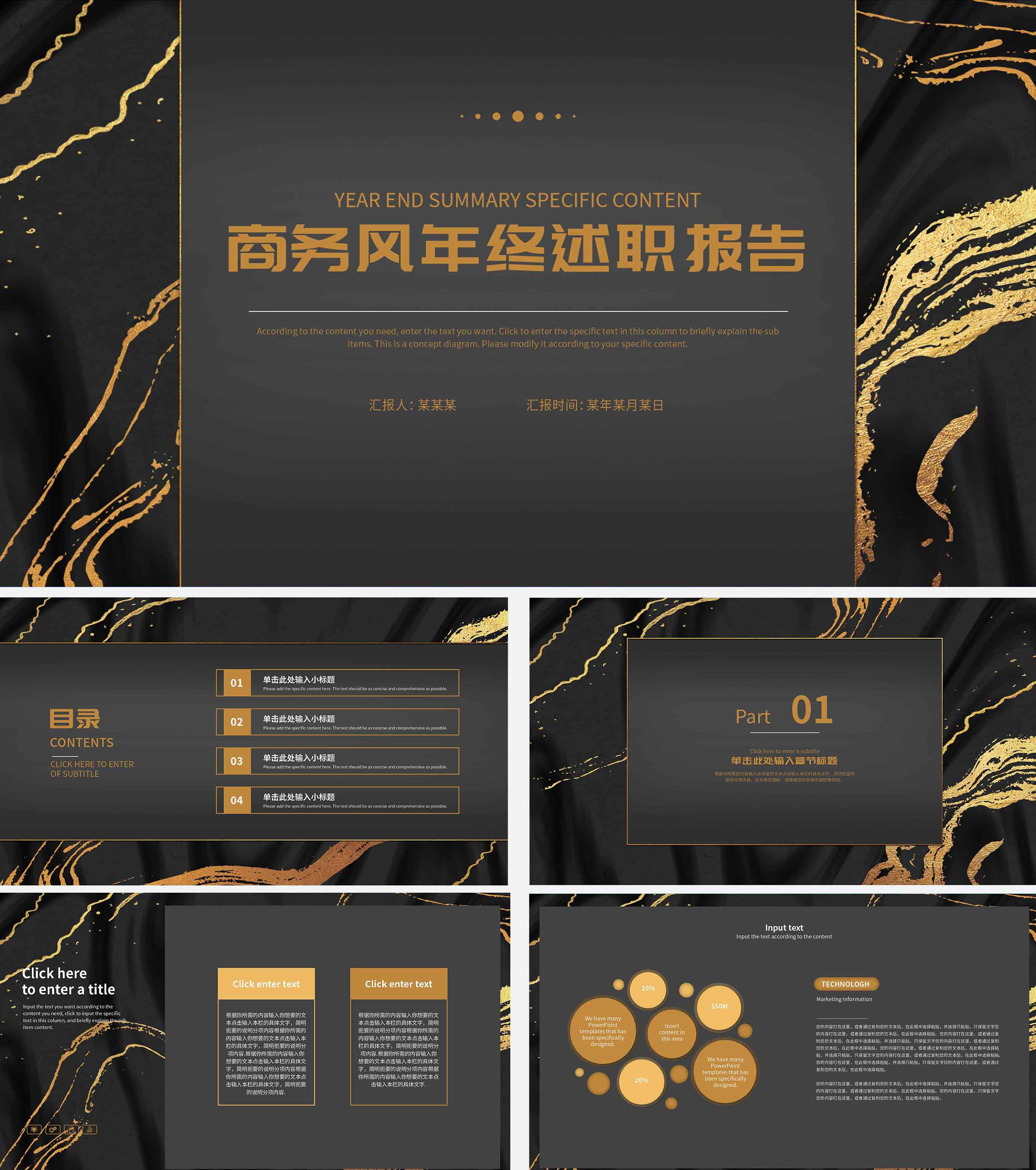 黑色大理石年终述职PPT模板