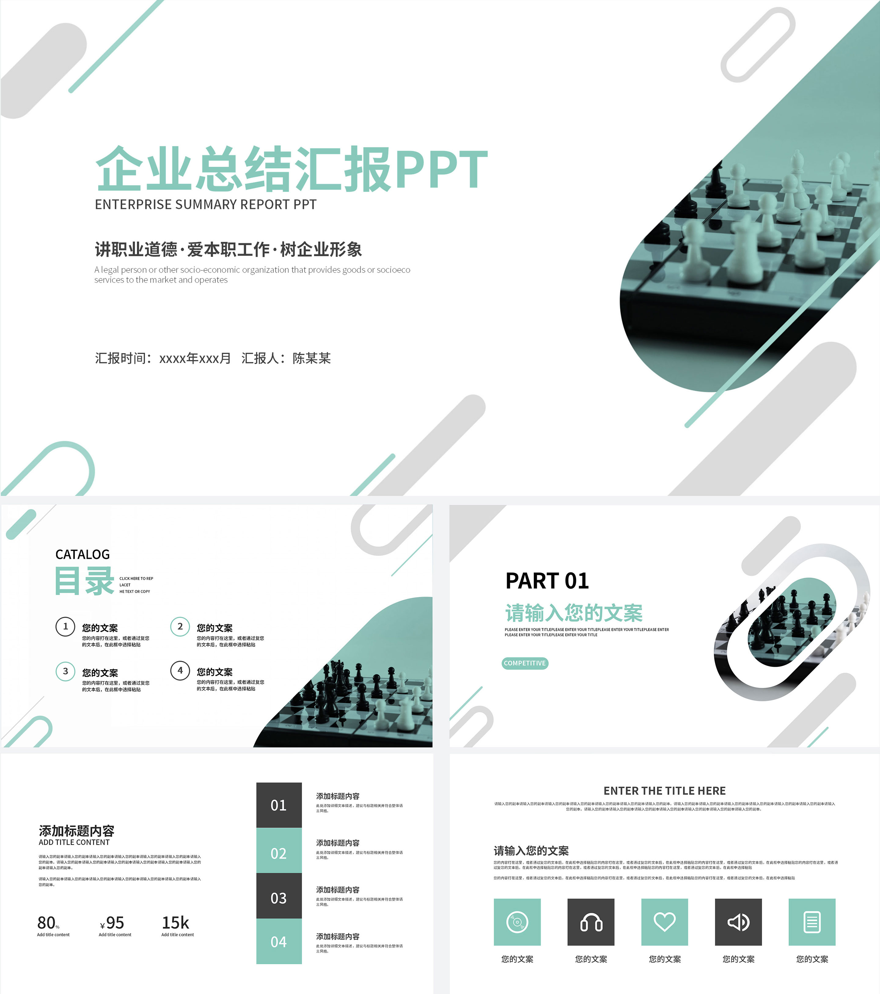 黑白棋盘竞聘述职PPT模板