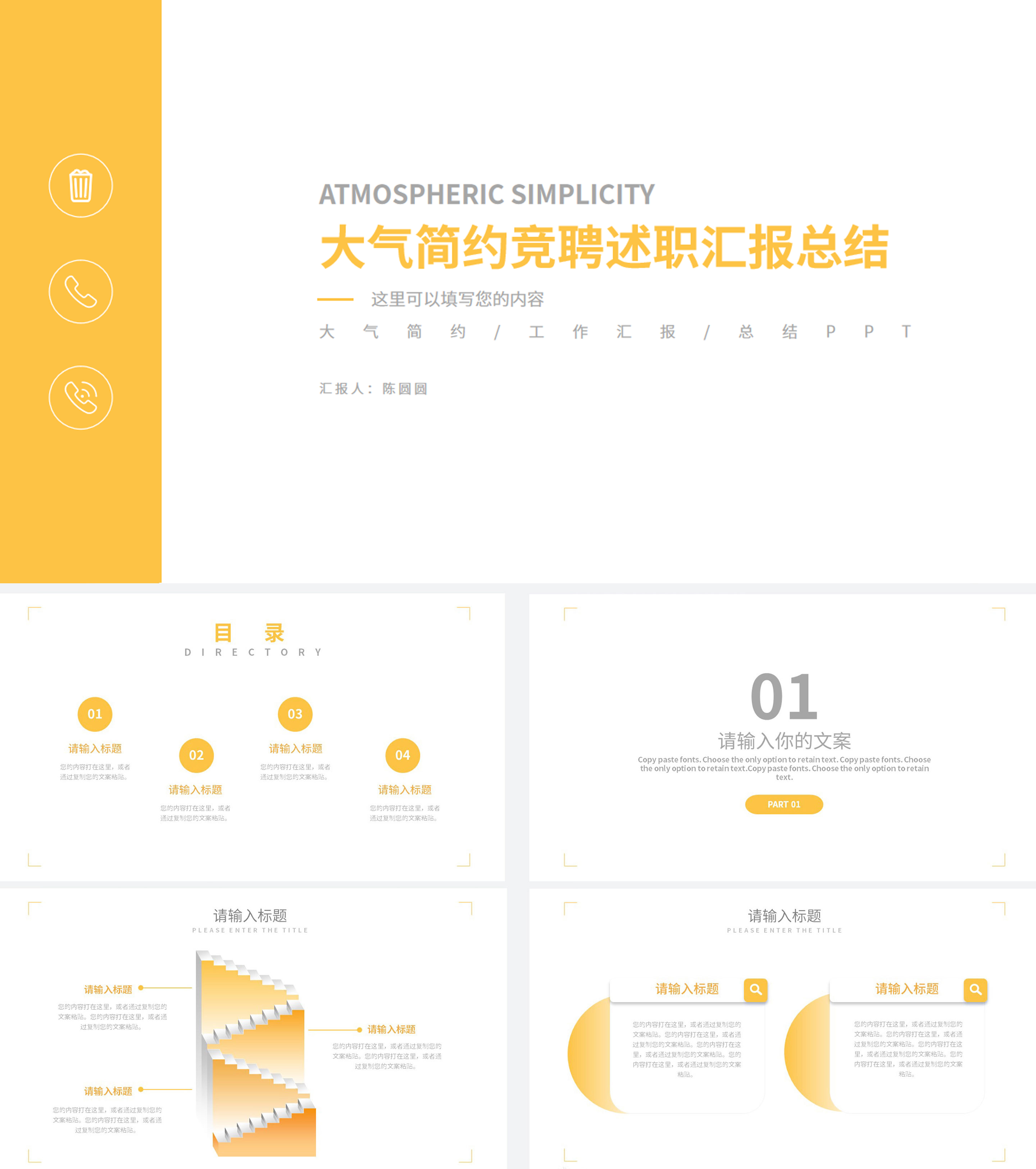 黄色清新个人竞聘述职PPT模板