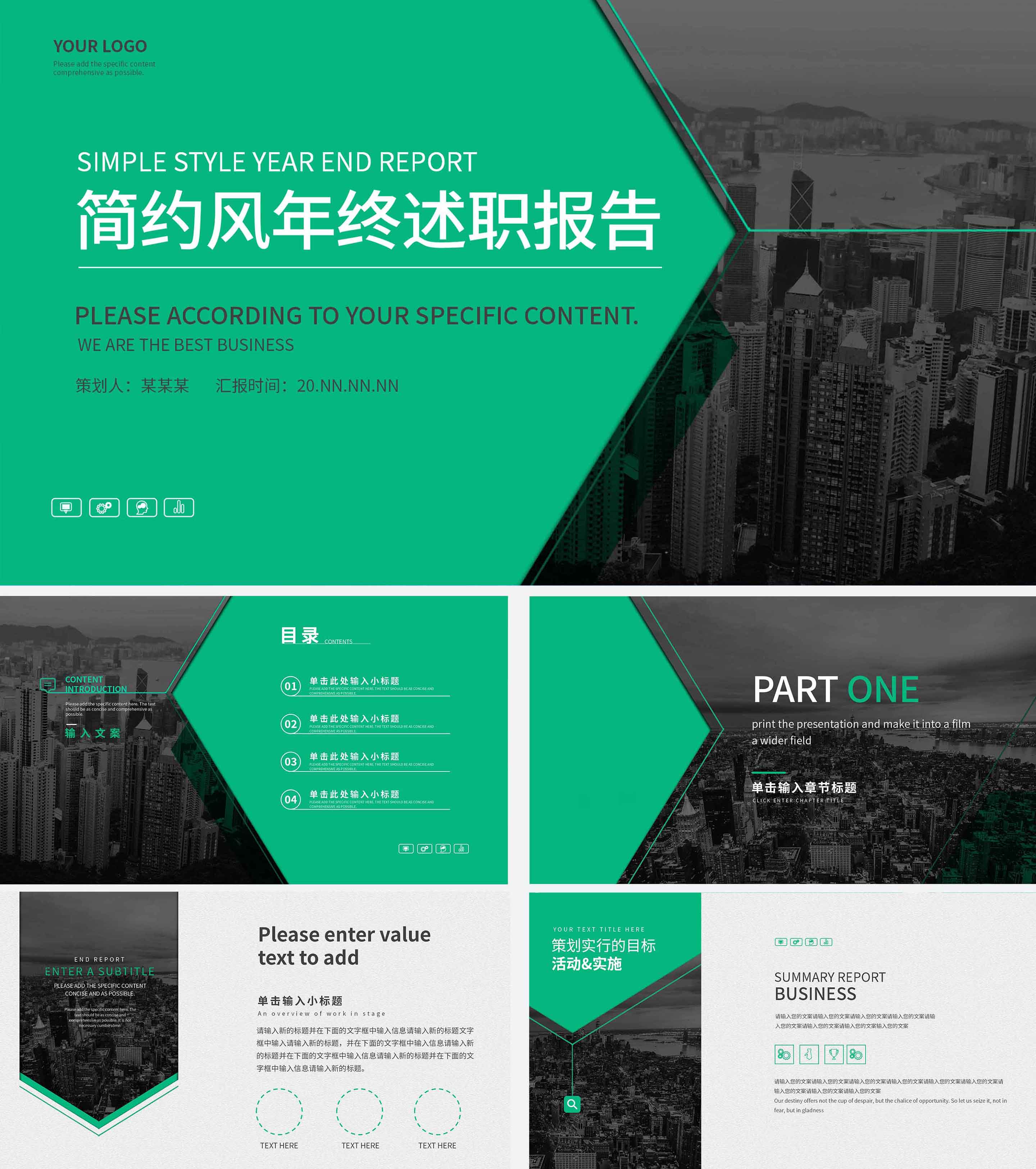 绿色简约风年终述职PPT模板