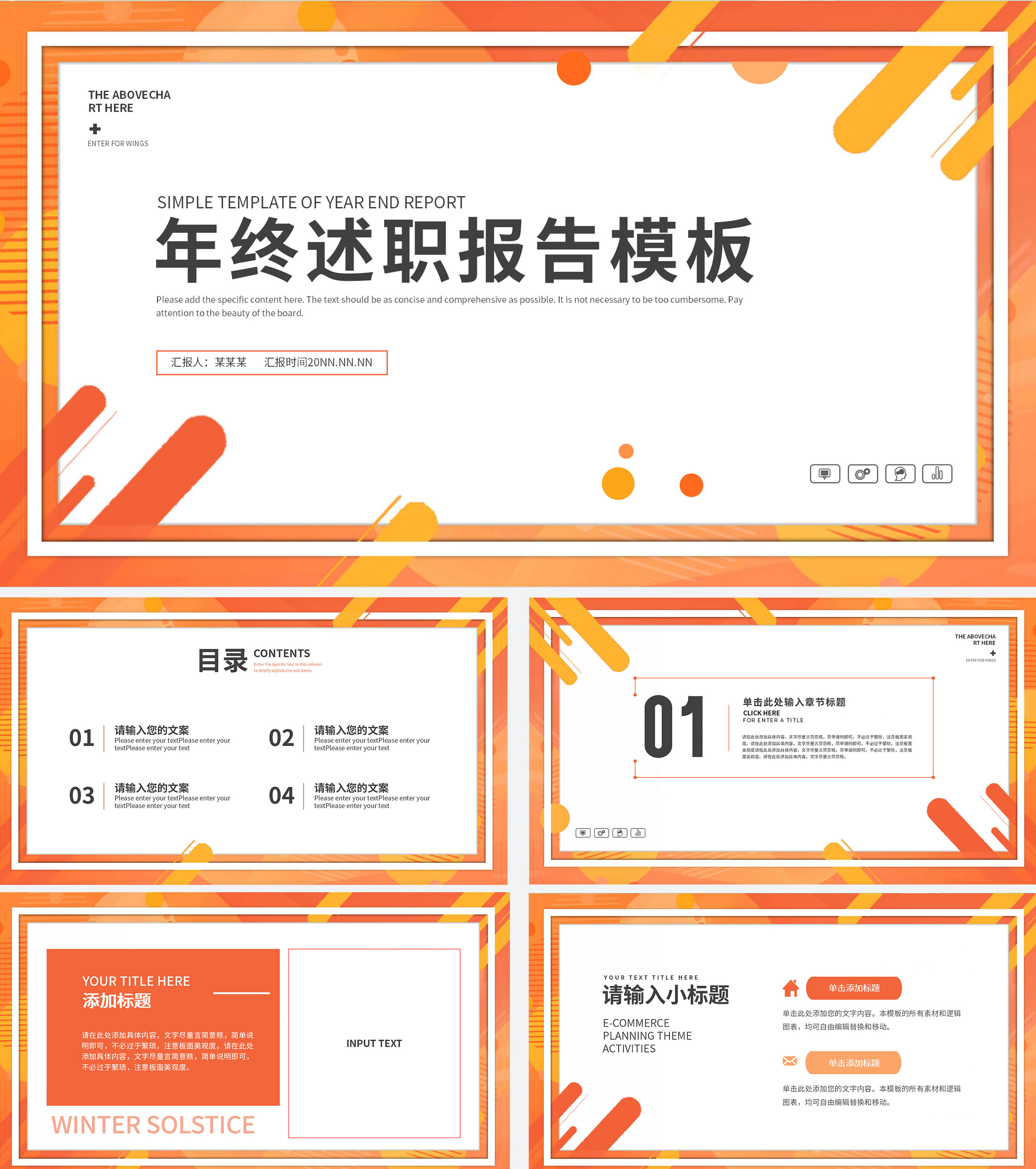 橘色水彩年终述职PPT模板
