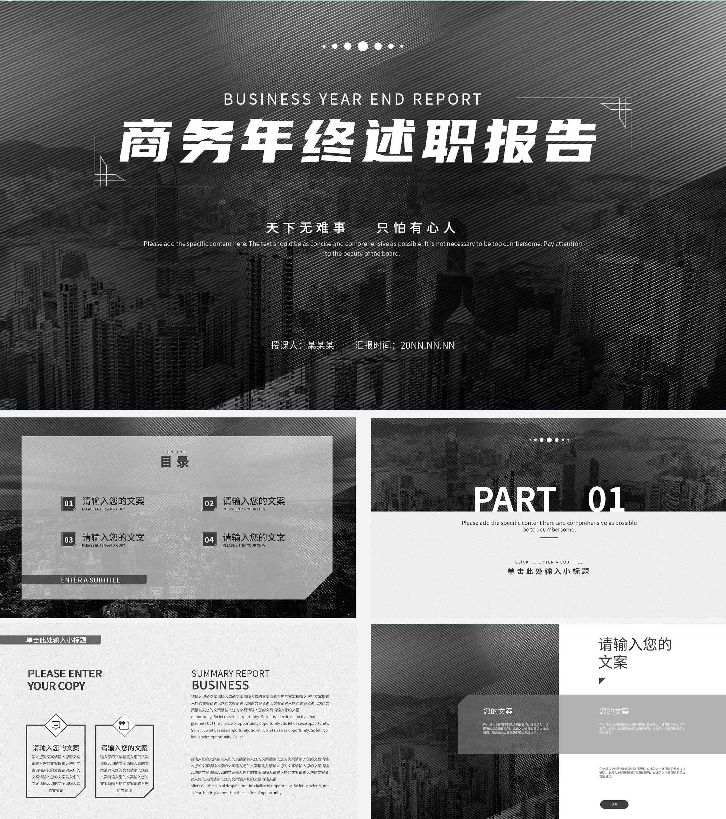 深灰色城市商务年终述职PPT模板