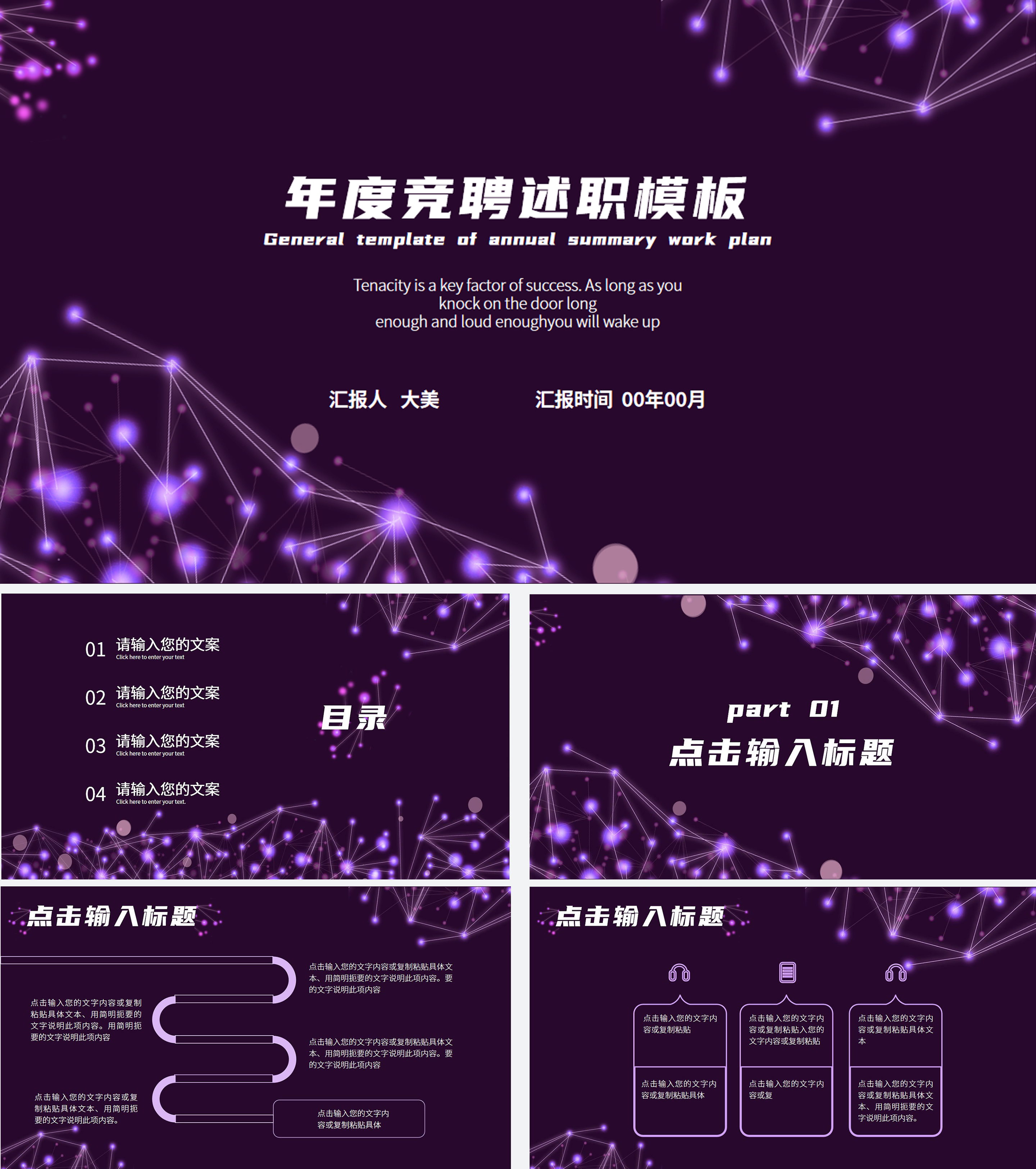 紫色光点年度竞聘述职PPT模板