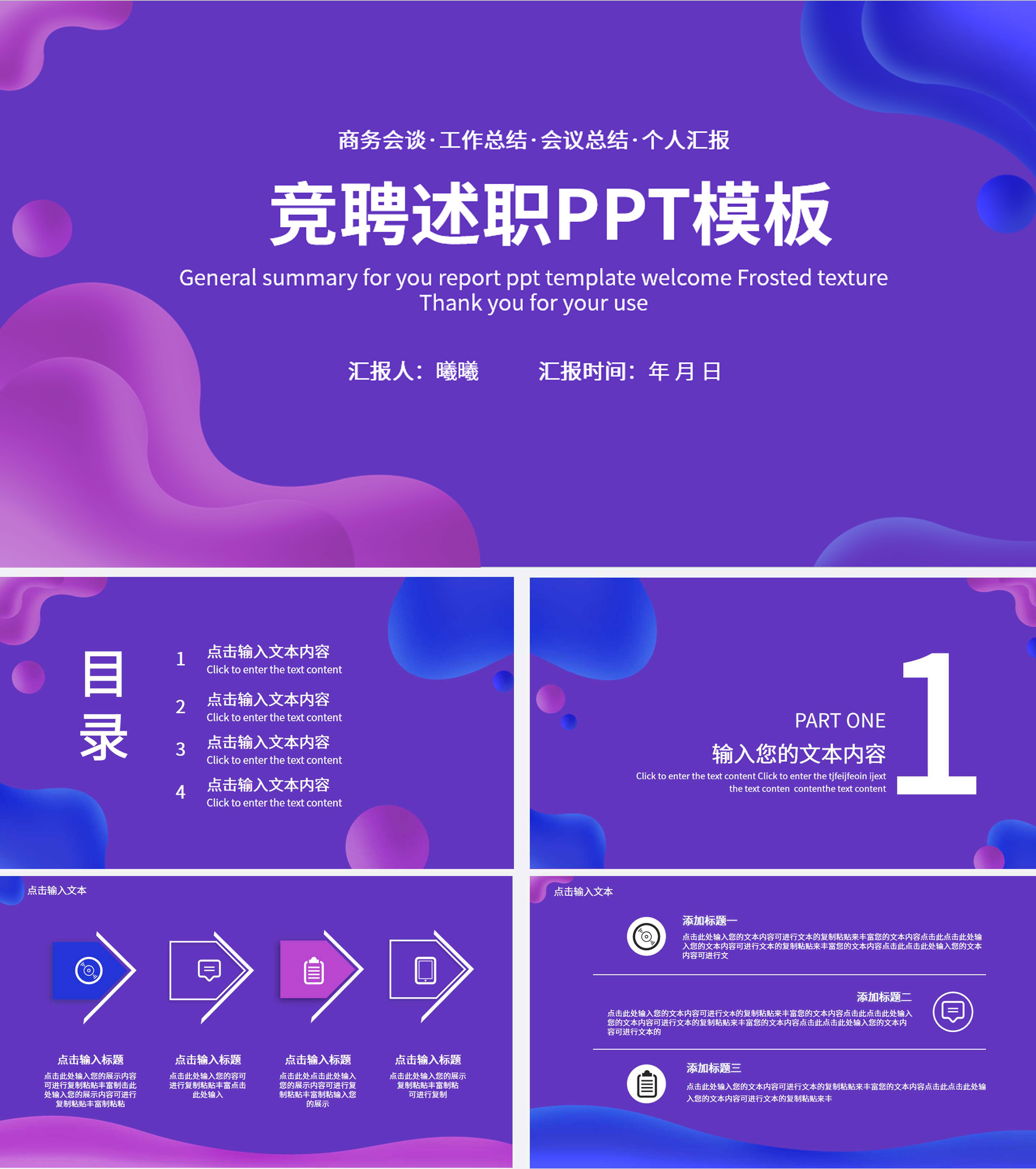 紫色创意渐变竞聘述职PPT模板