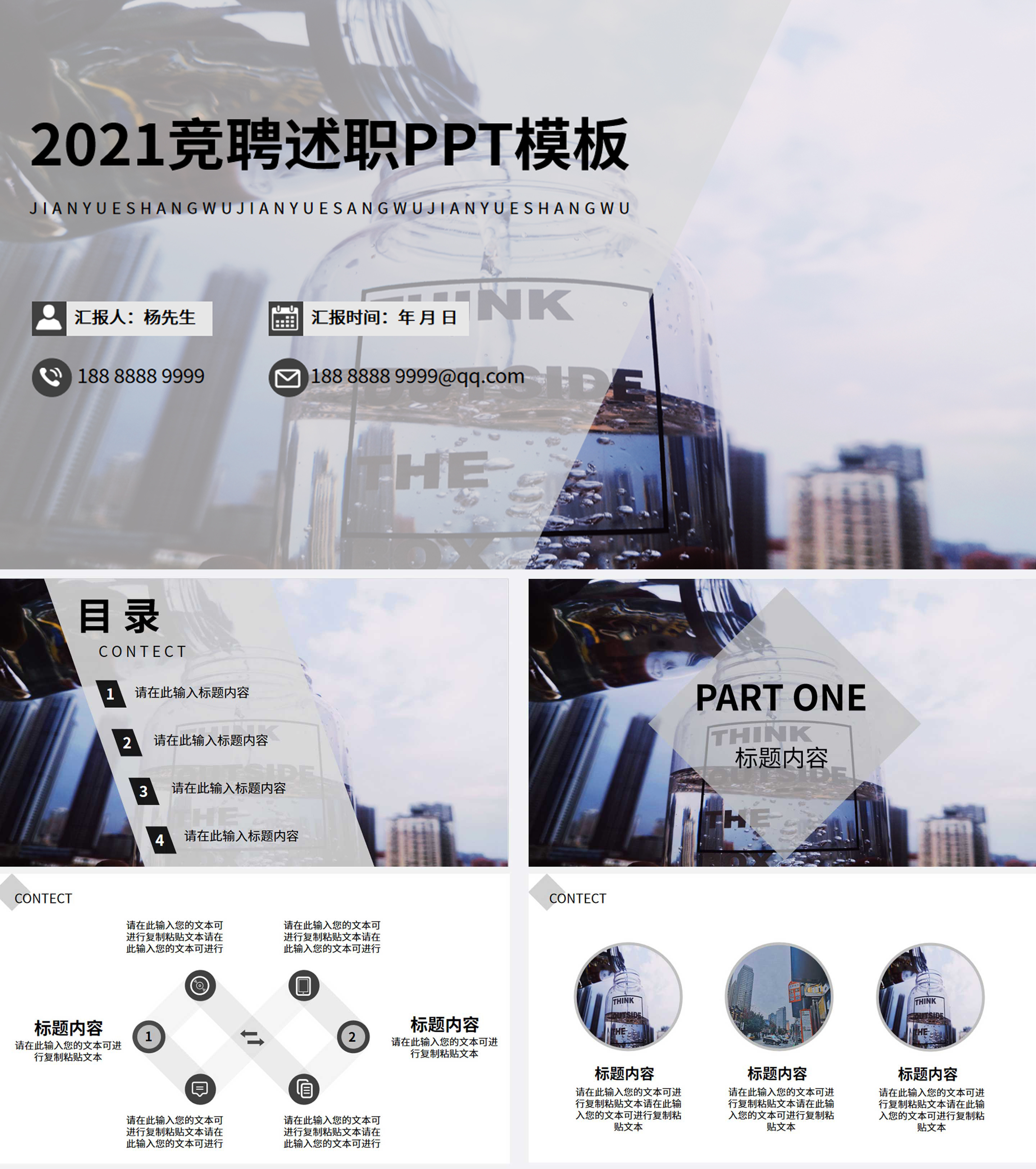白色都市简约竞聘述职PPT模板
