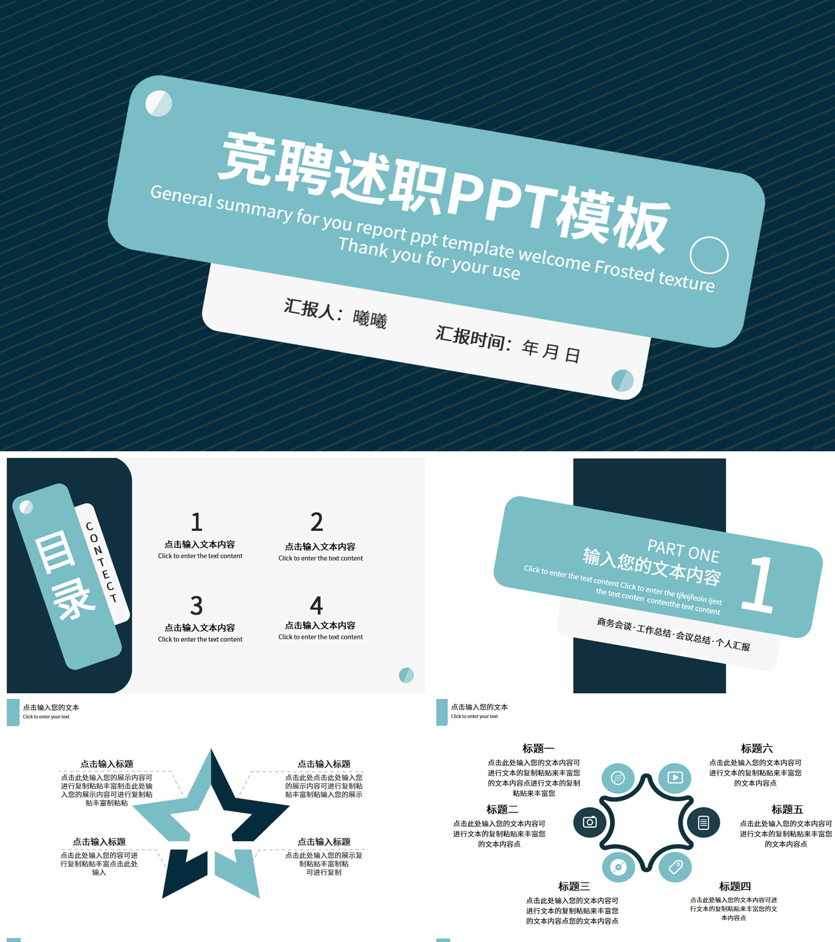 墨蓝色创意竞聘述职PPT模板
