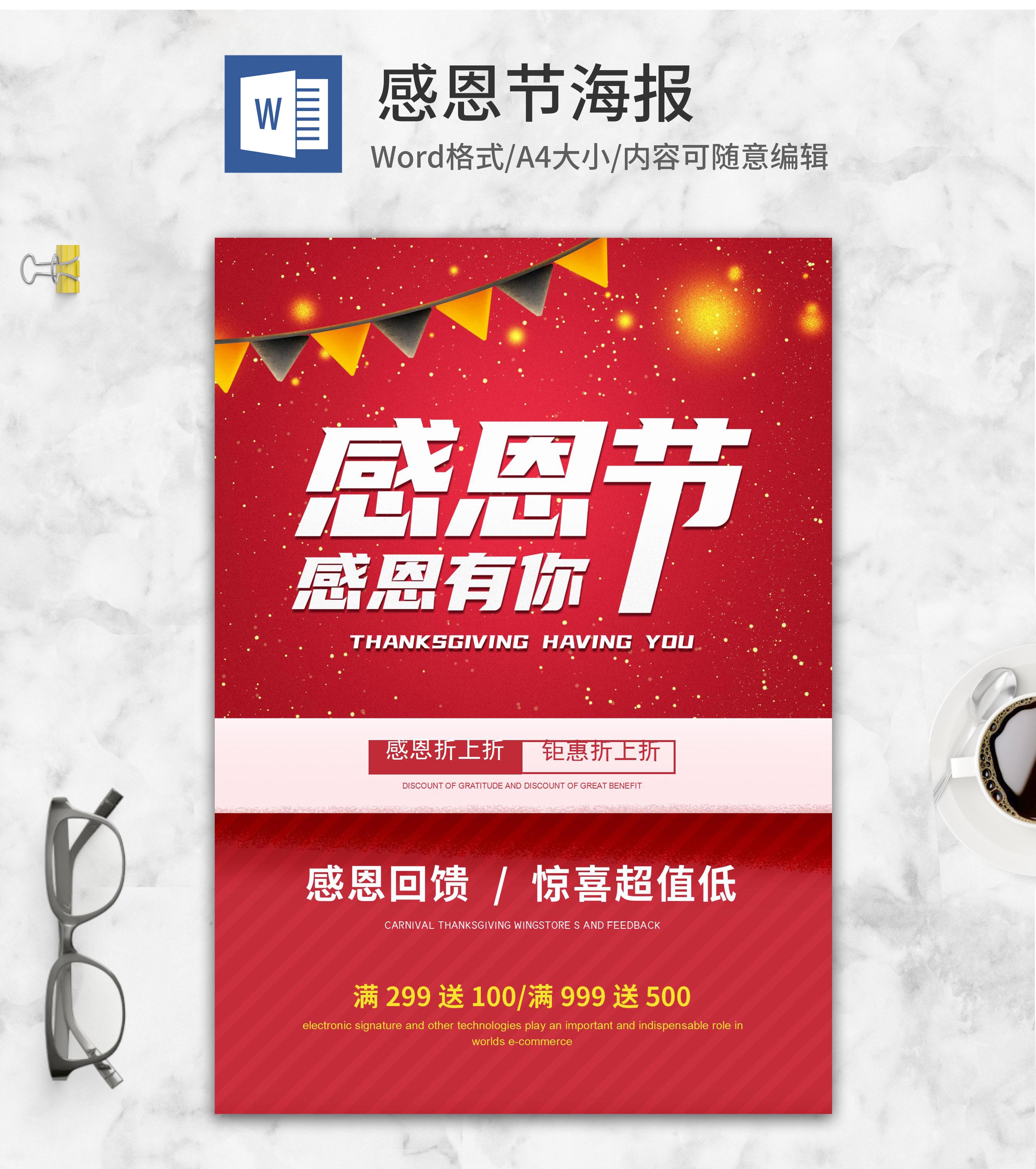 感恩节感谢有你海报模板
