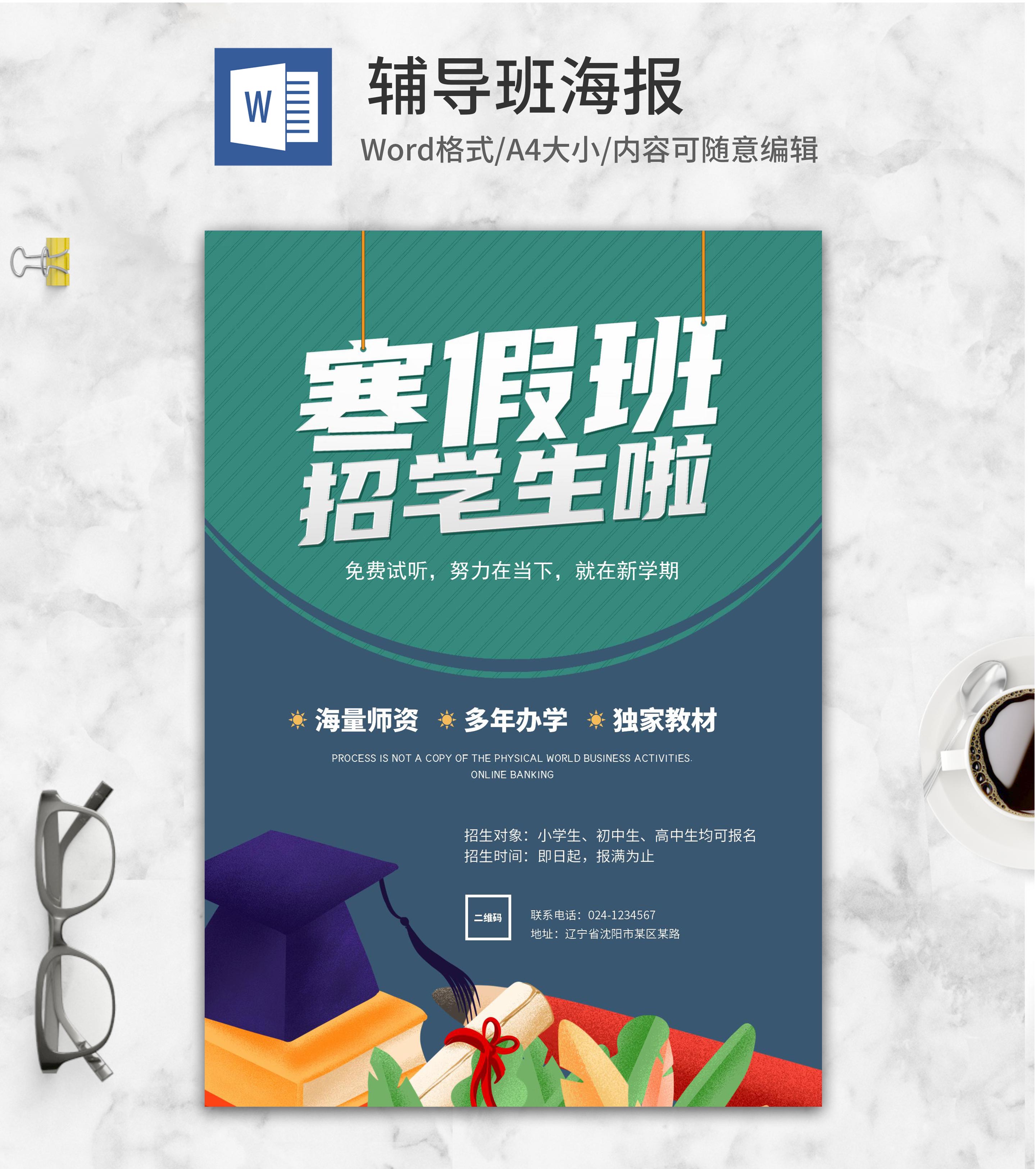 寒假补习班招生海报模板