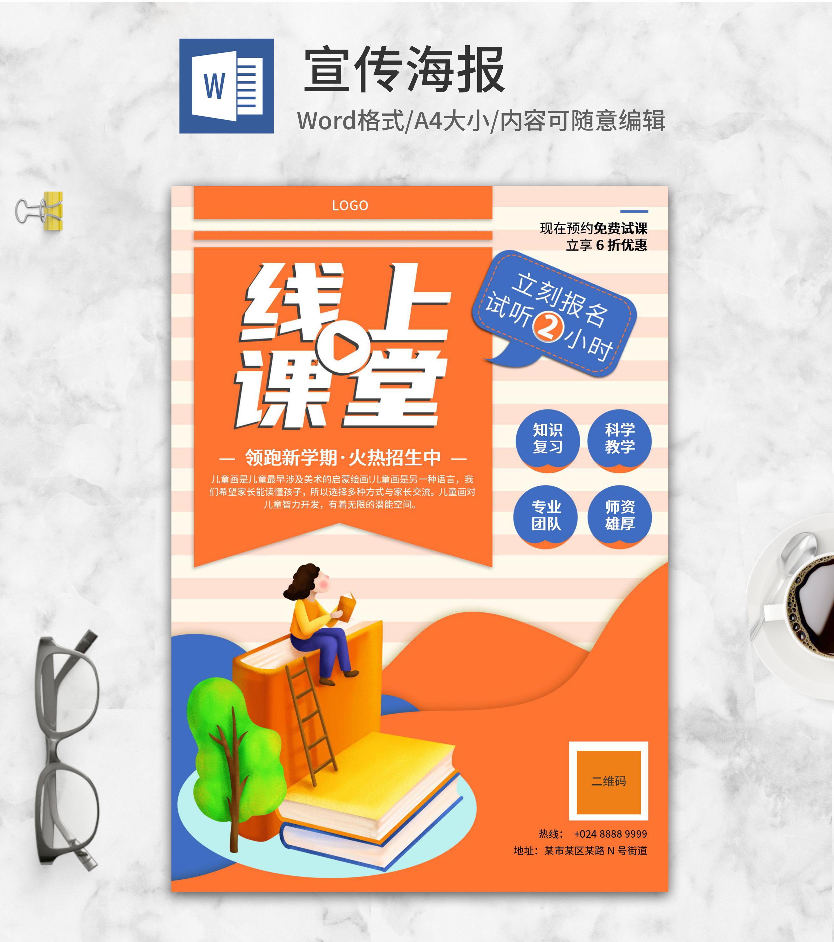 橙色卡通线上课堂教育WORD海报