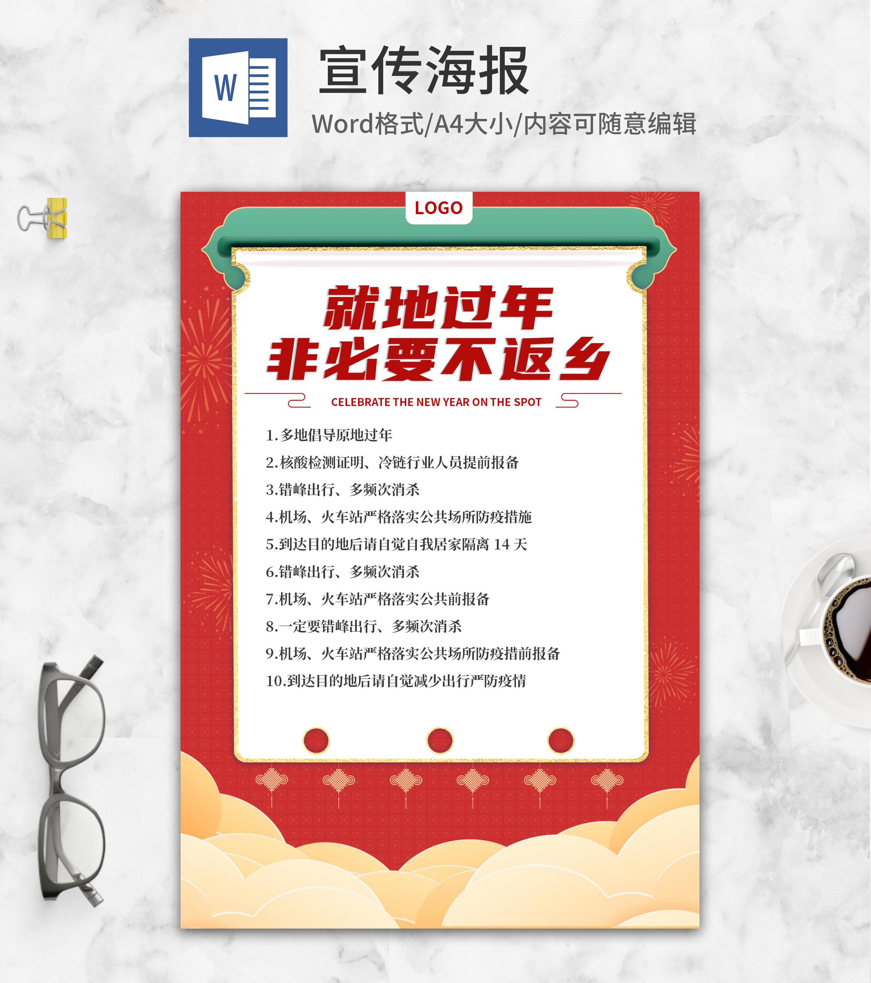 小清新红色就地过年创意海报word模板