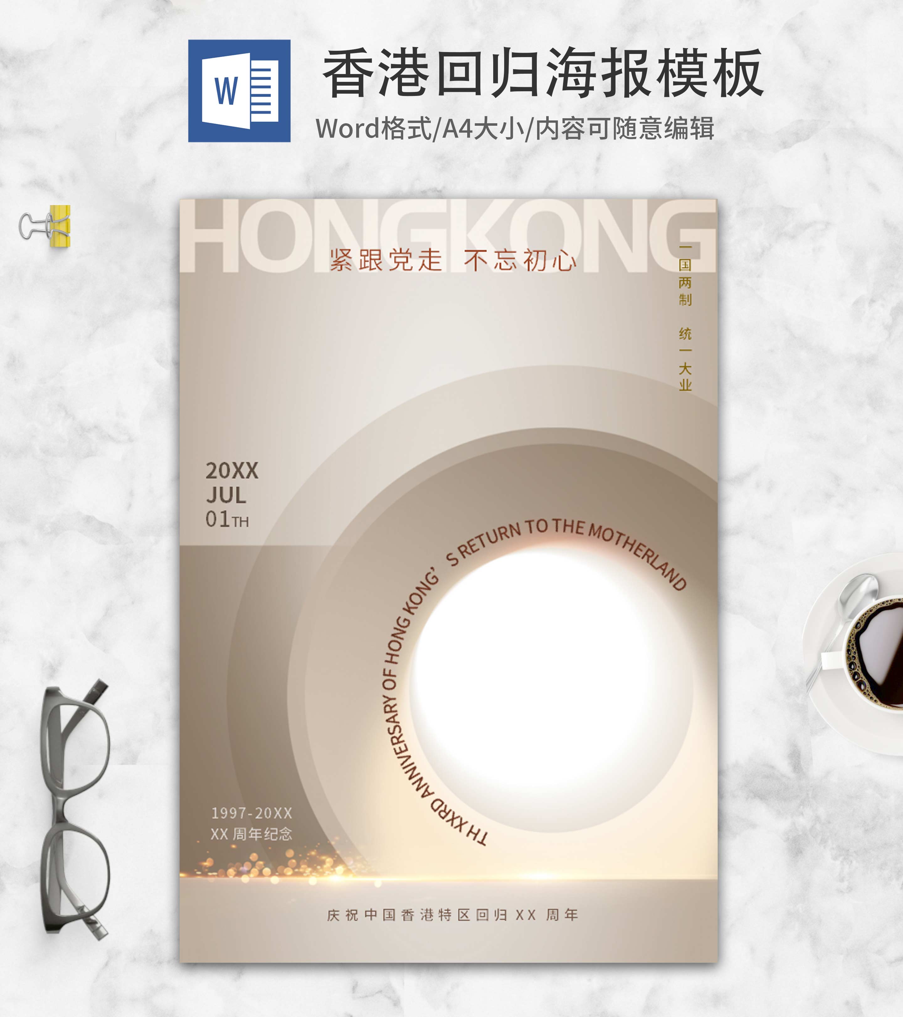 黄色简约香港回归纪念日word模板