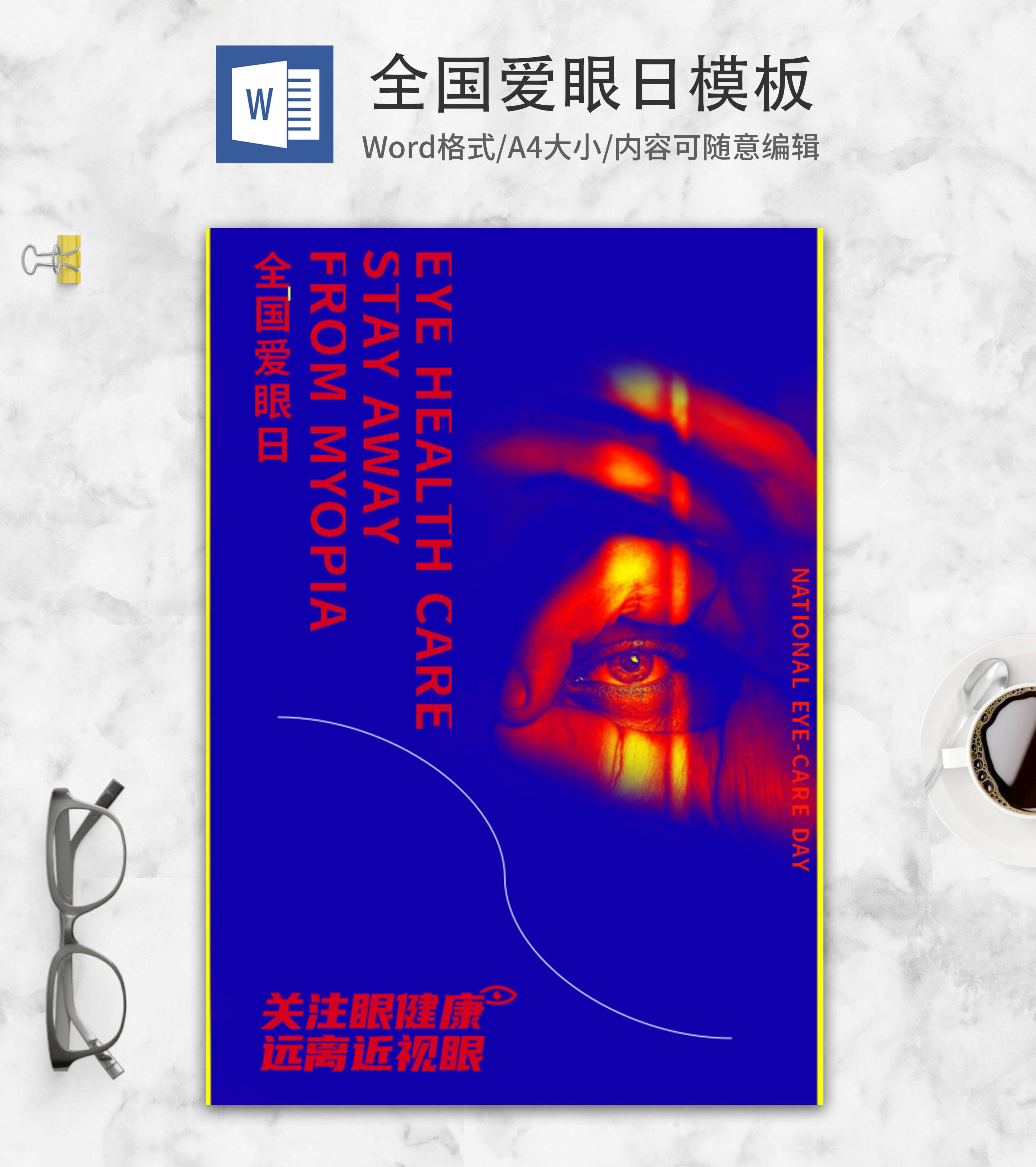 蓝色简约全国爱眼日海报word模板