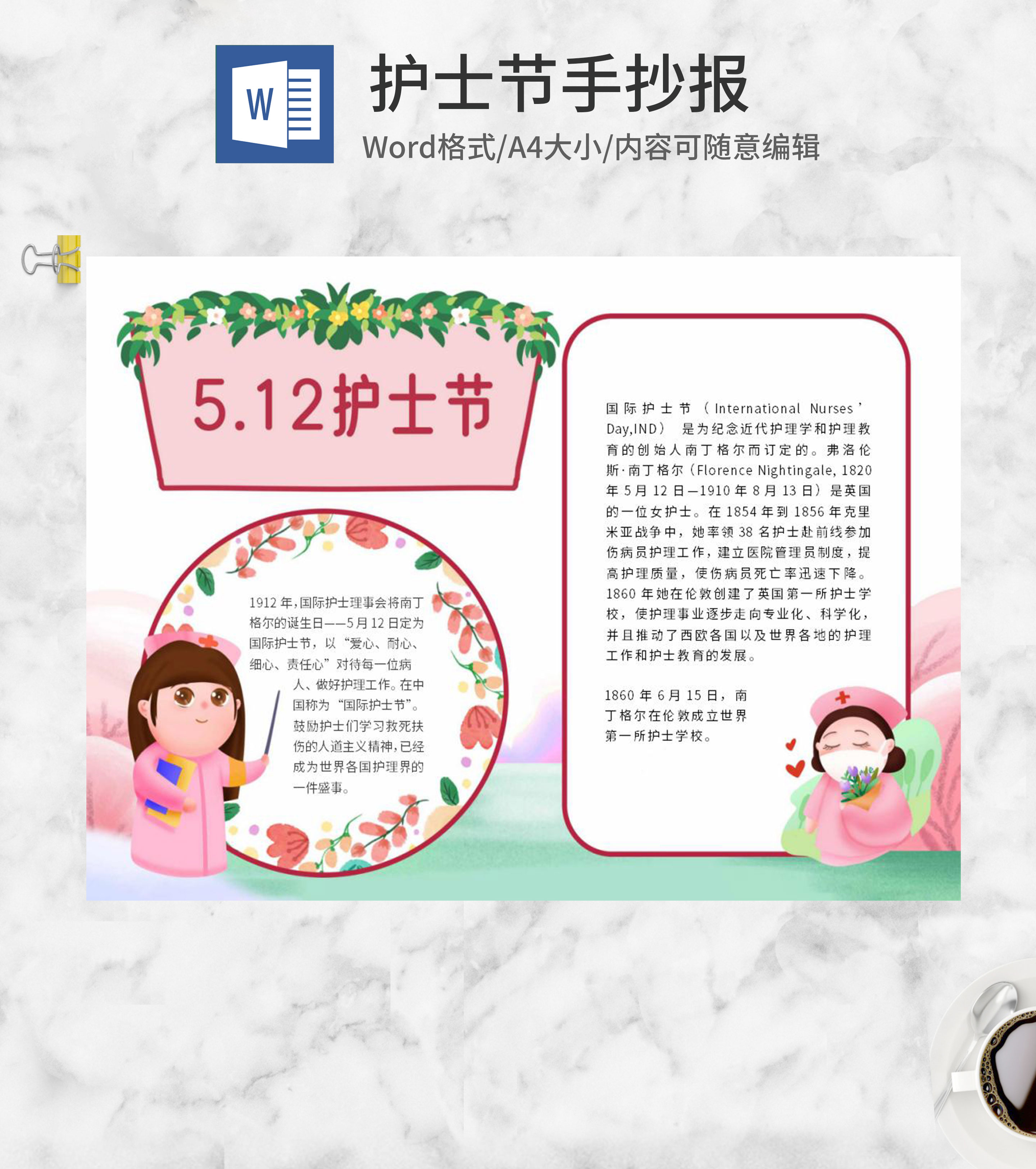 粉色5.12护士节手抄报