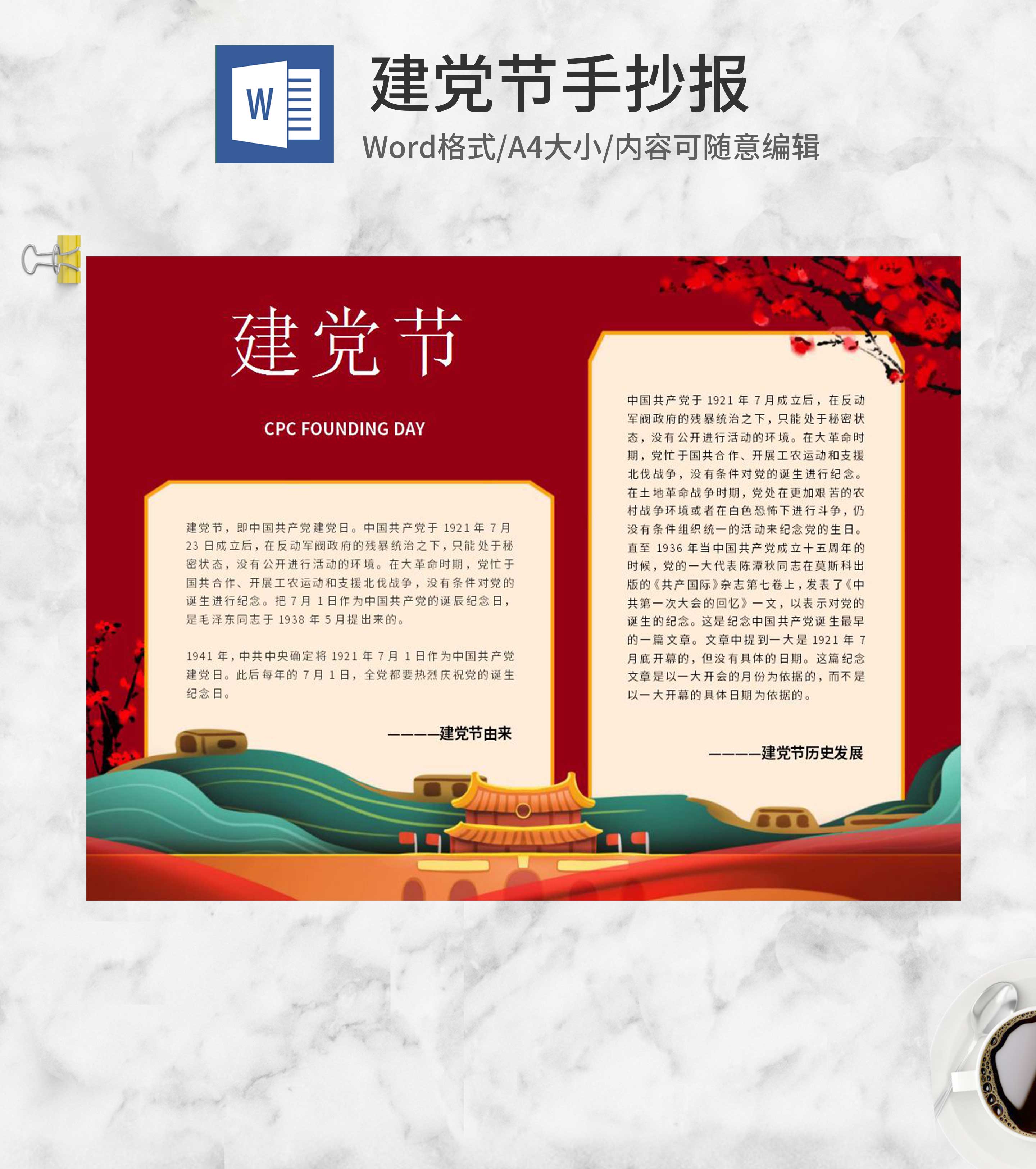 大红建党节手抄报