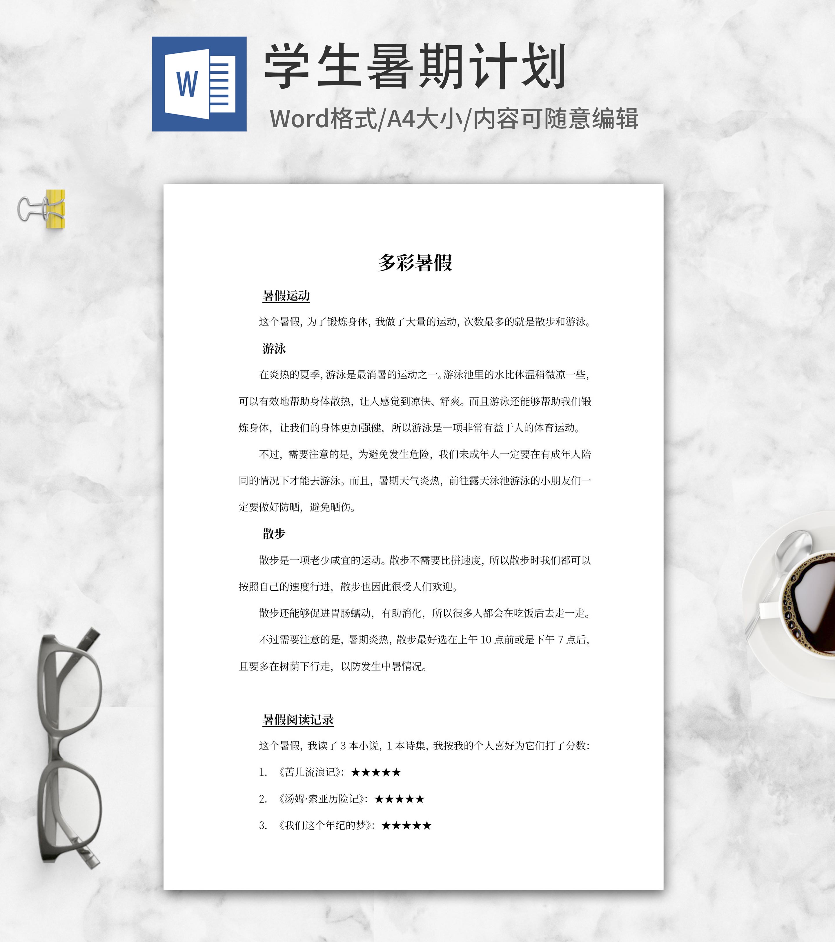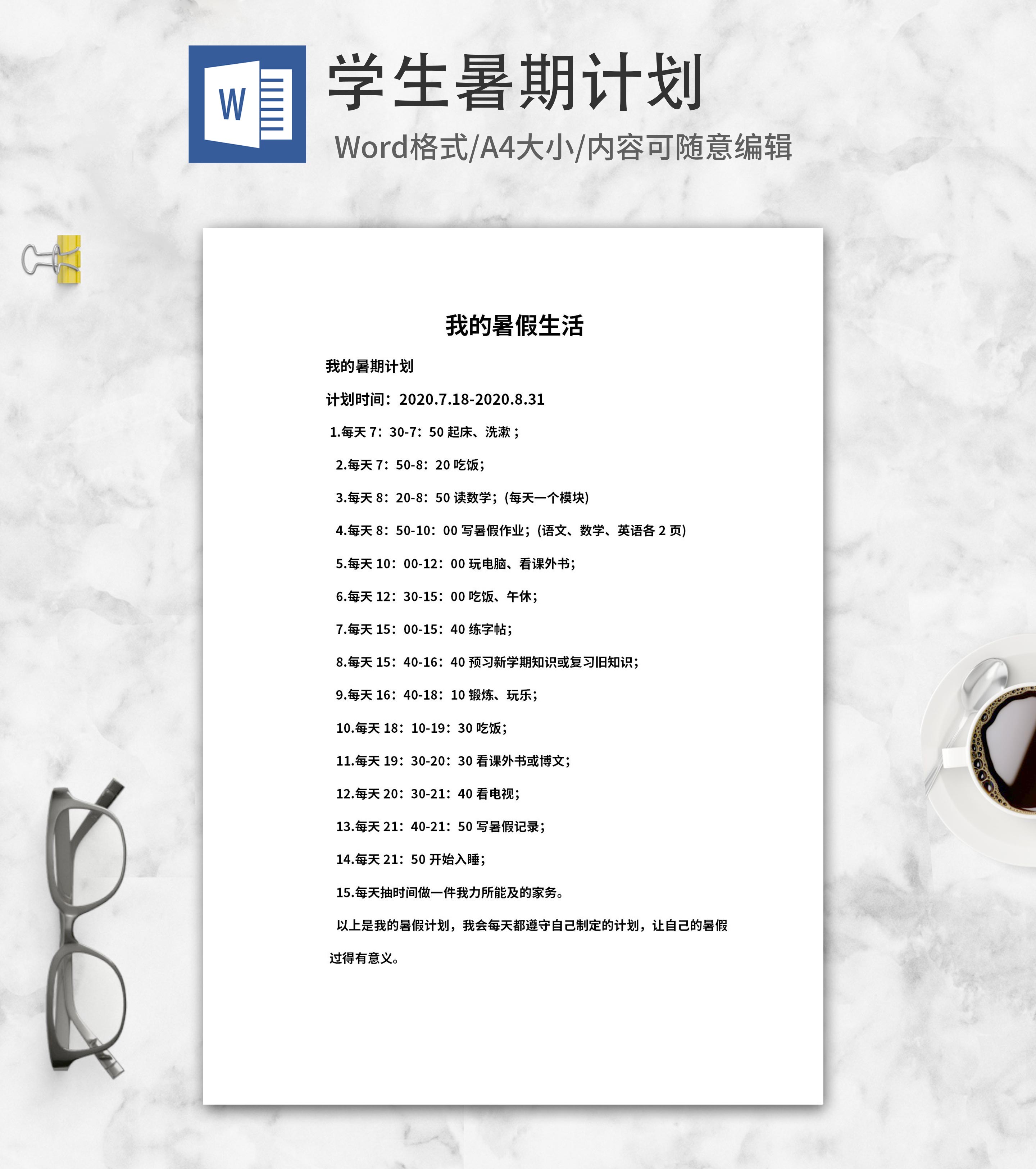 我的暑假计划word模板