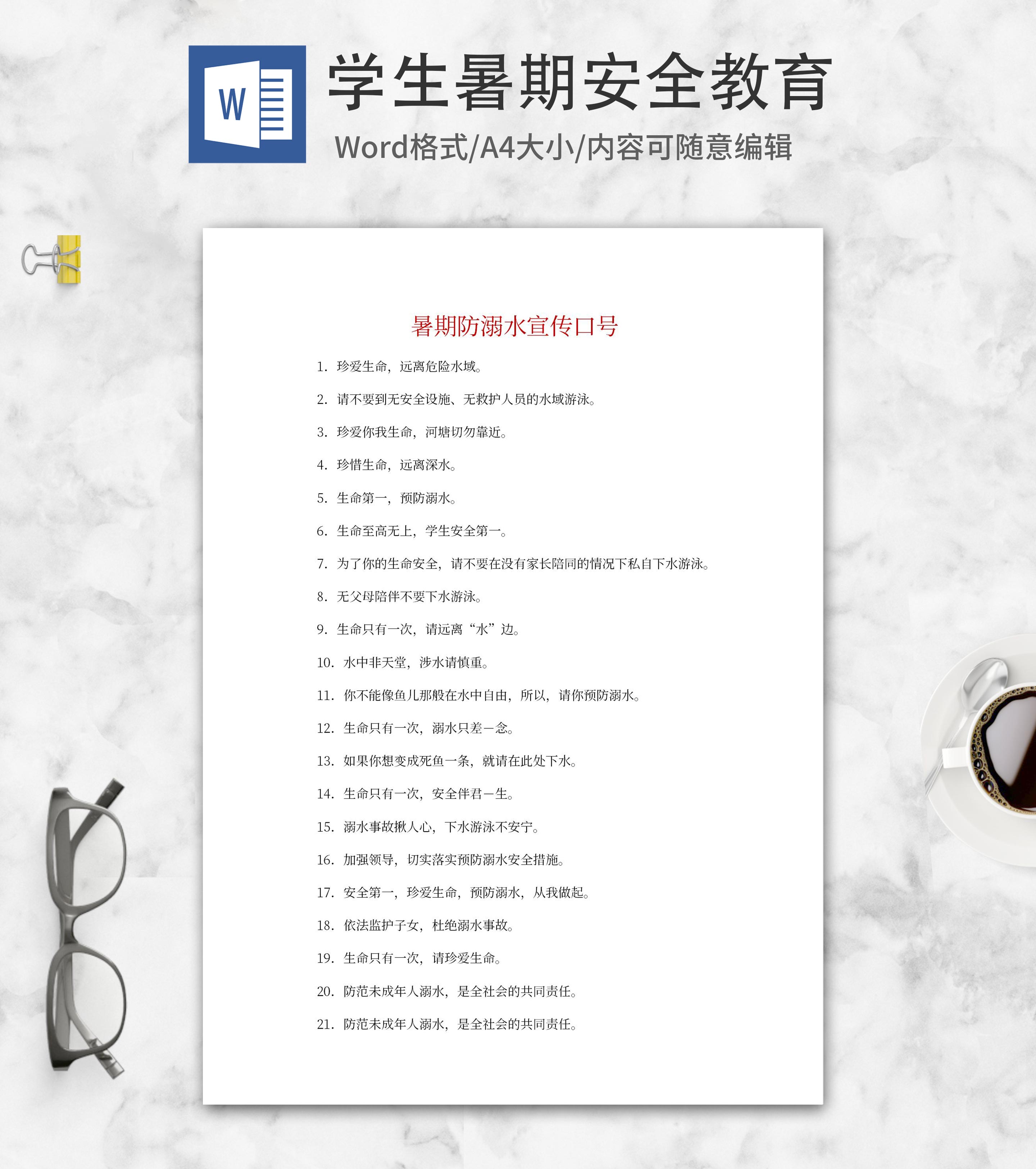 暑期防溺水宣传口号word模板