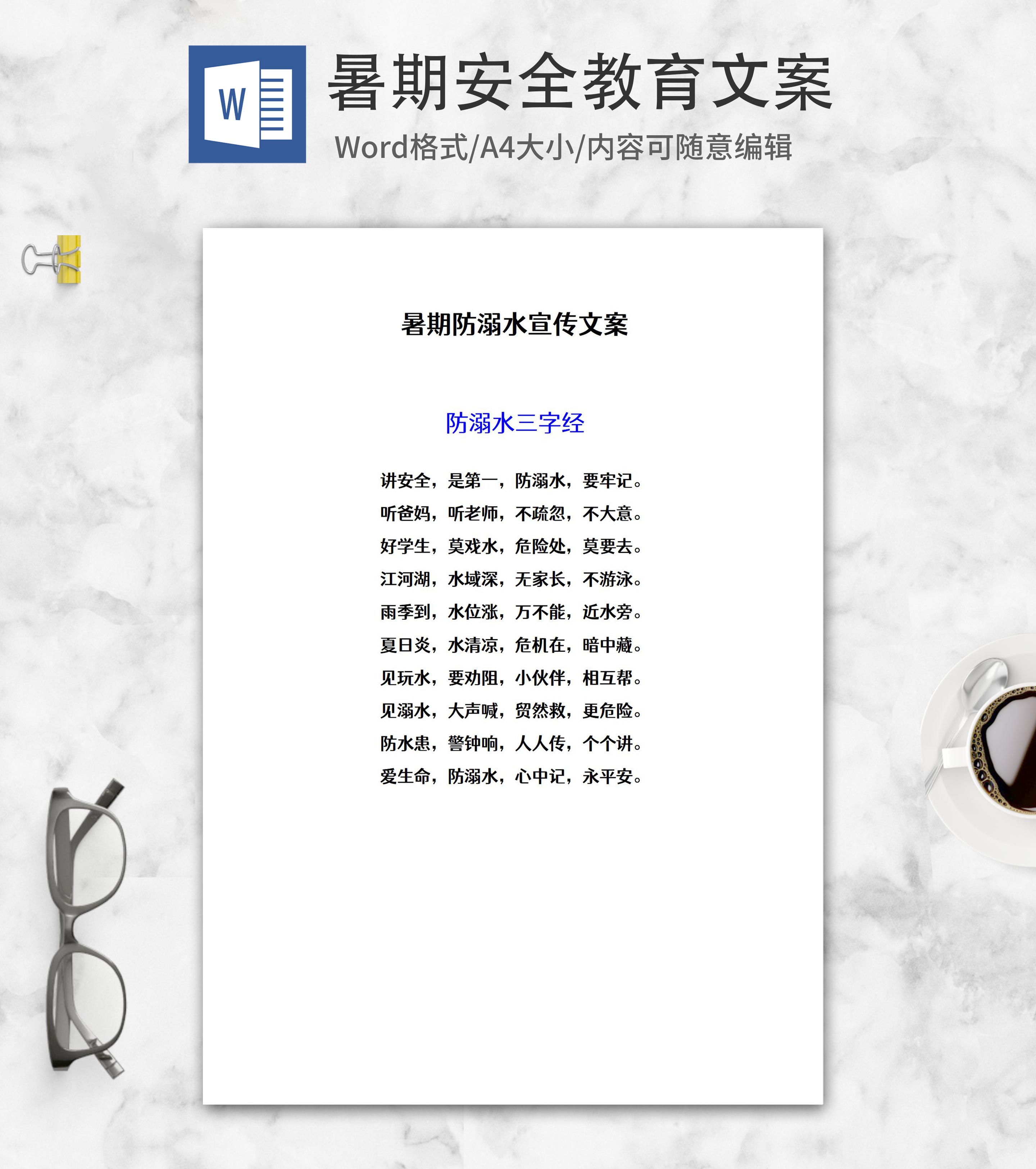 暑期防溺水宣传文案word模板