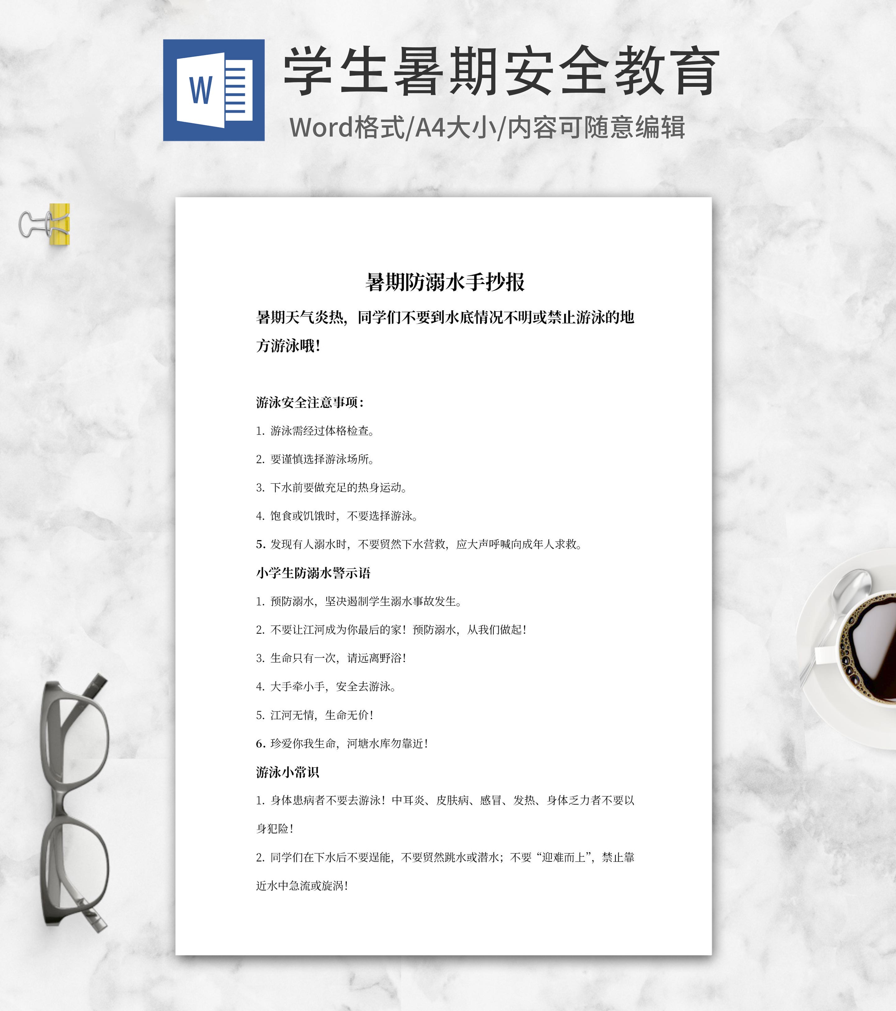暑期安全手抄报文案word模板