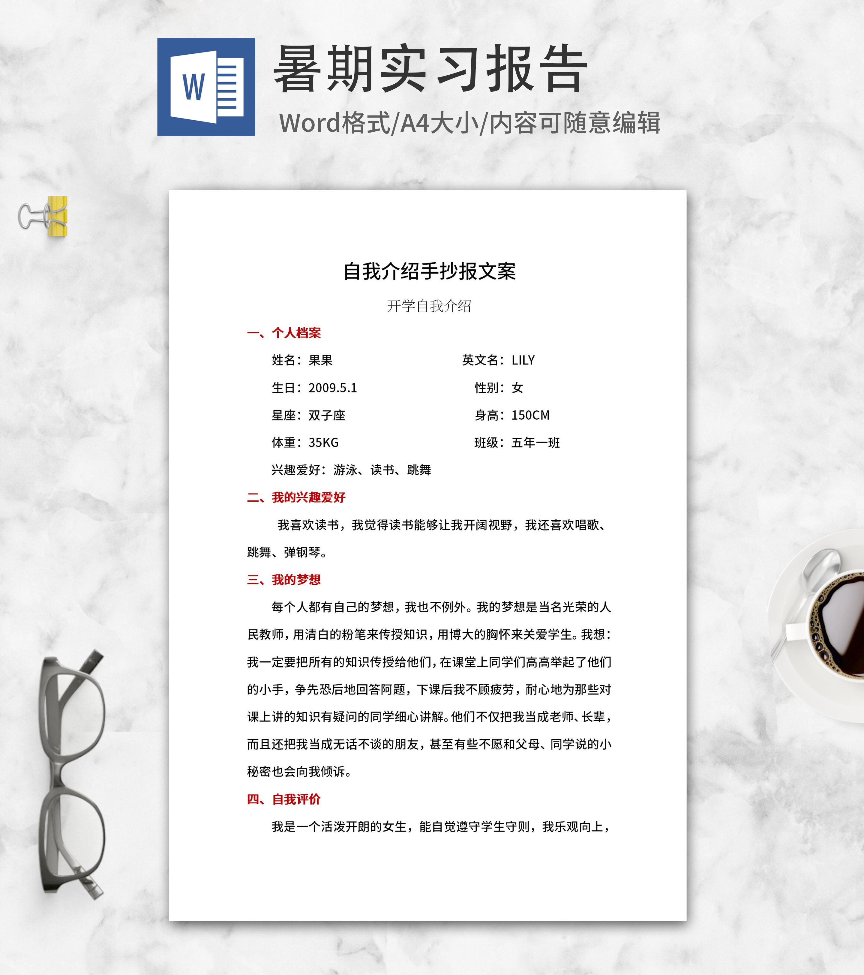 开学自我介绍文案word模板