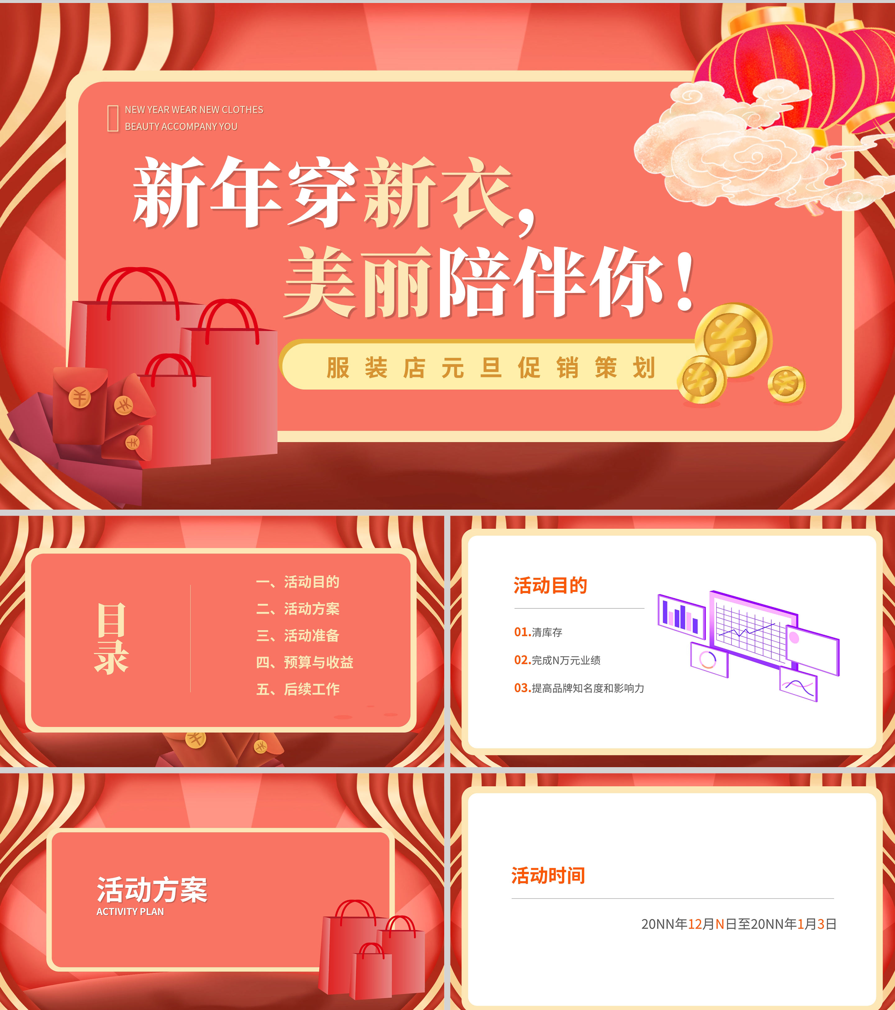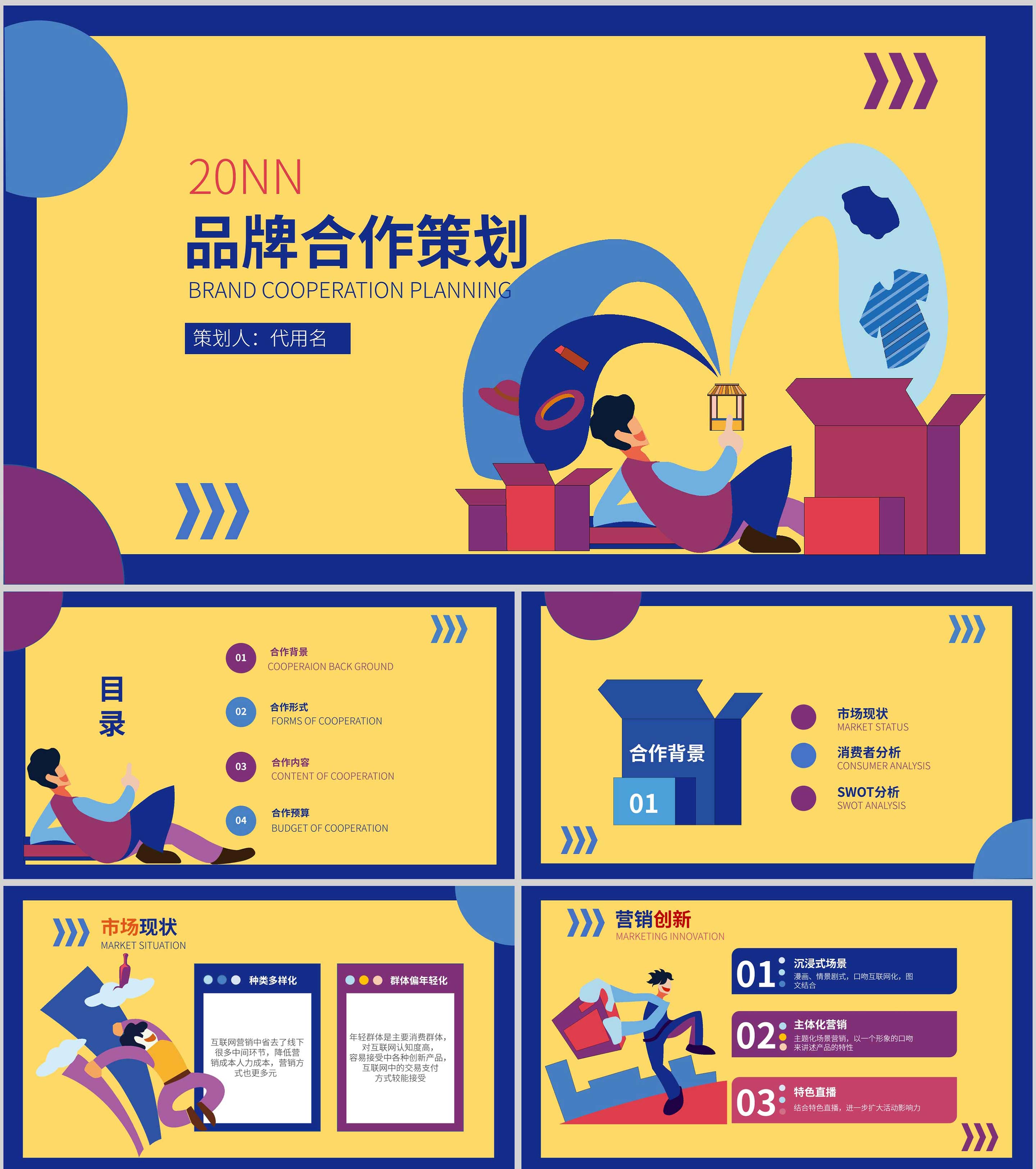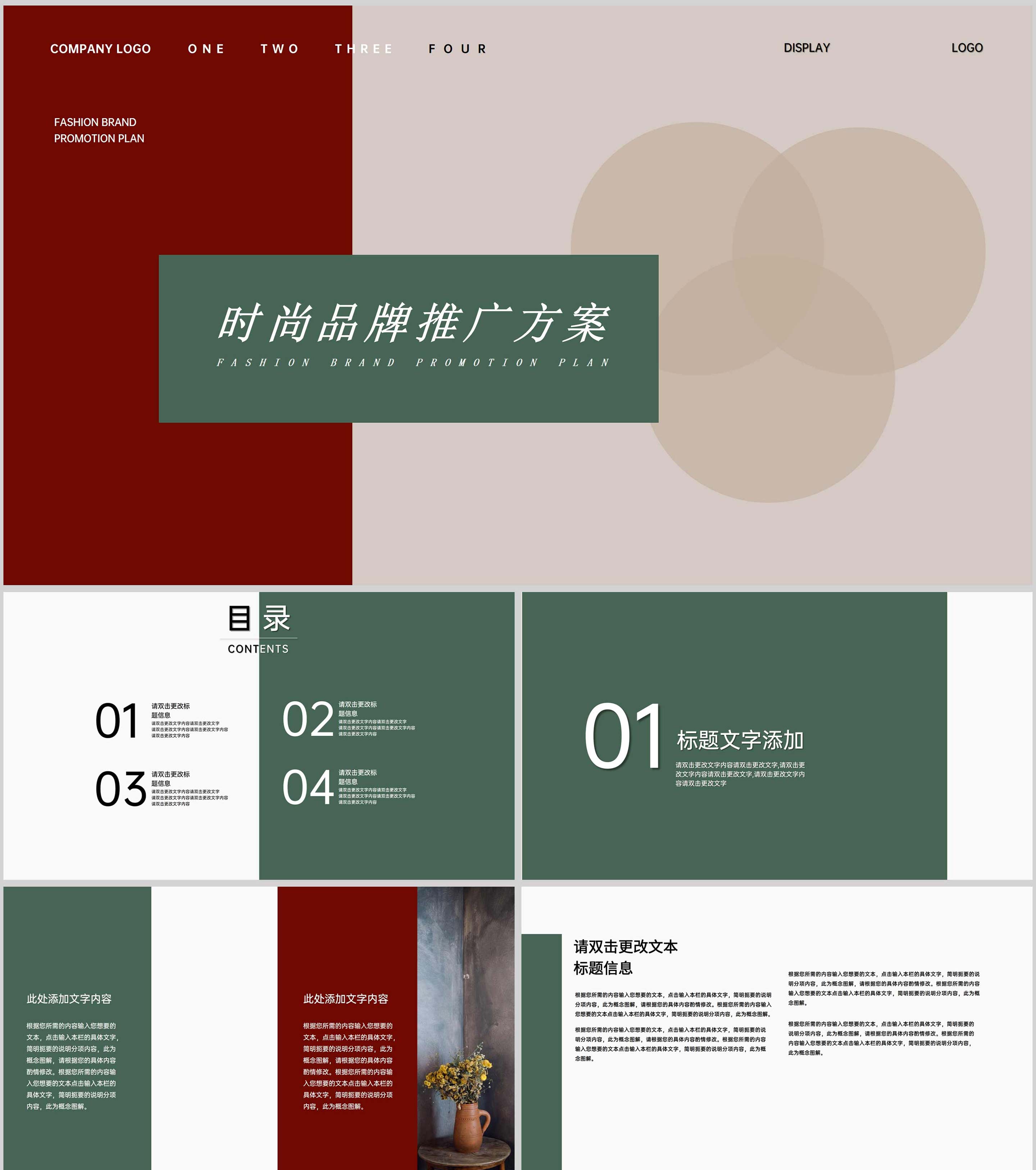 绿色扁平风复古时尚品牌推广方案PPT模板