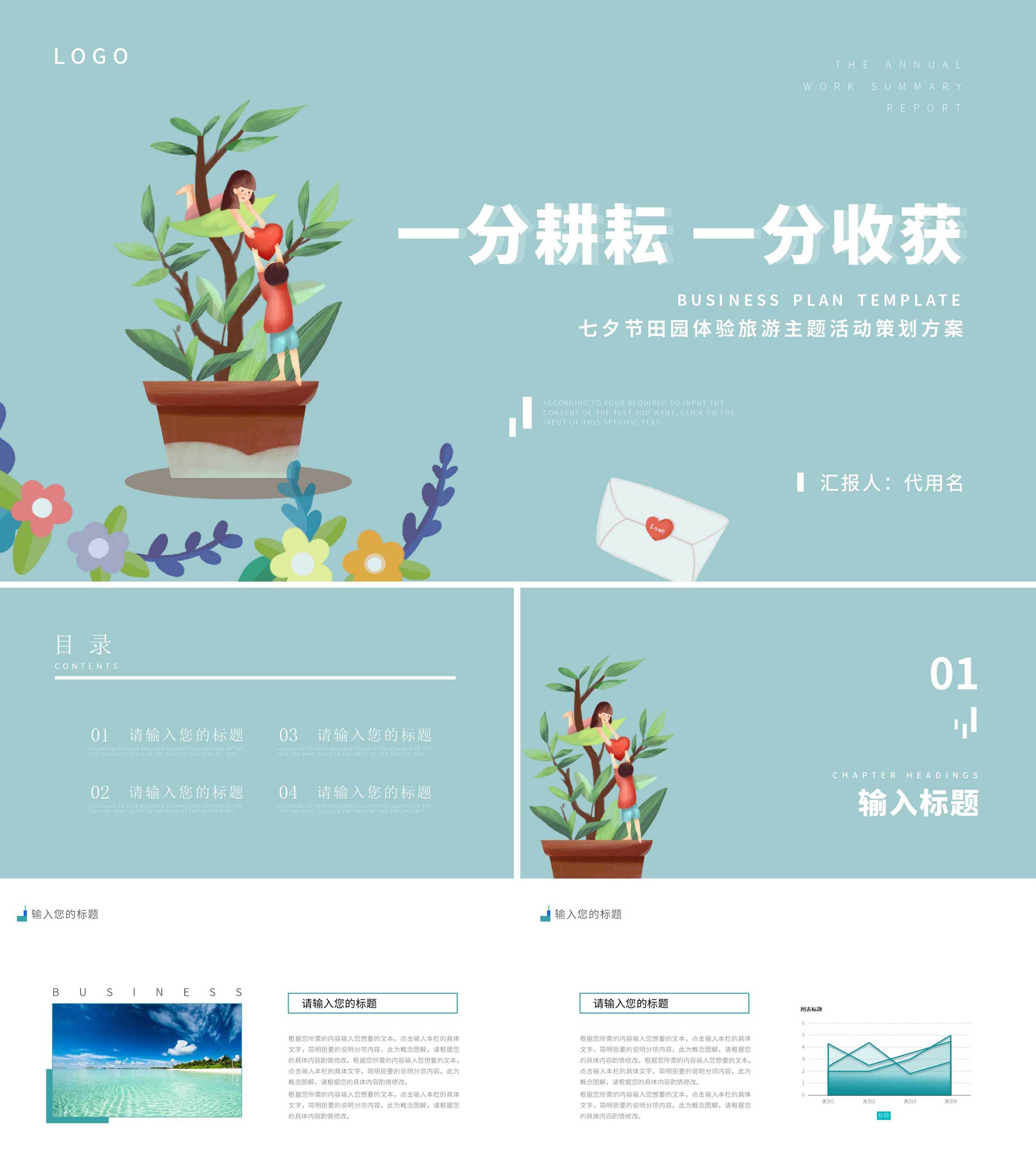 蓝色小清新七夕节自然田园主题活动策划方案PPT模板
