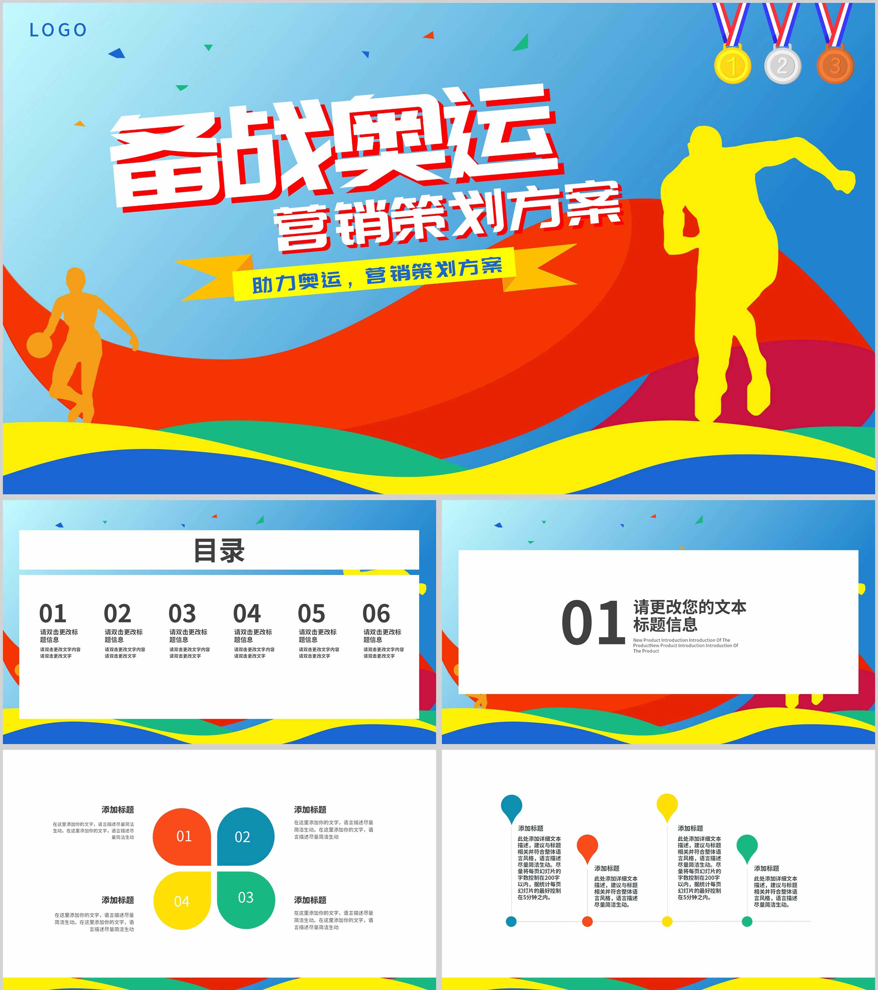 蓝色插画风备战奥运运动营销策划方案PPT模板