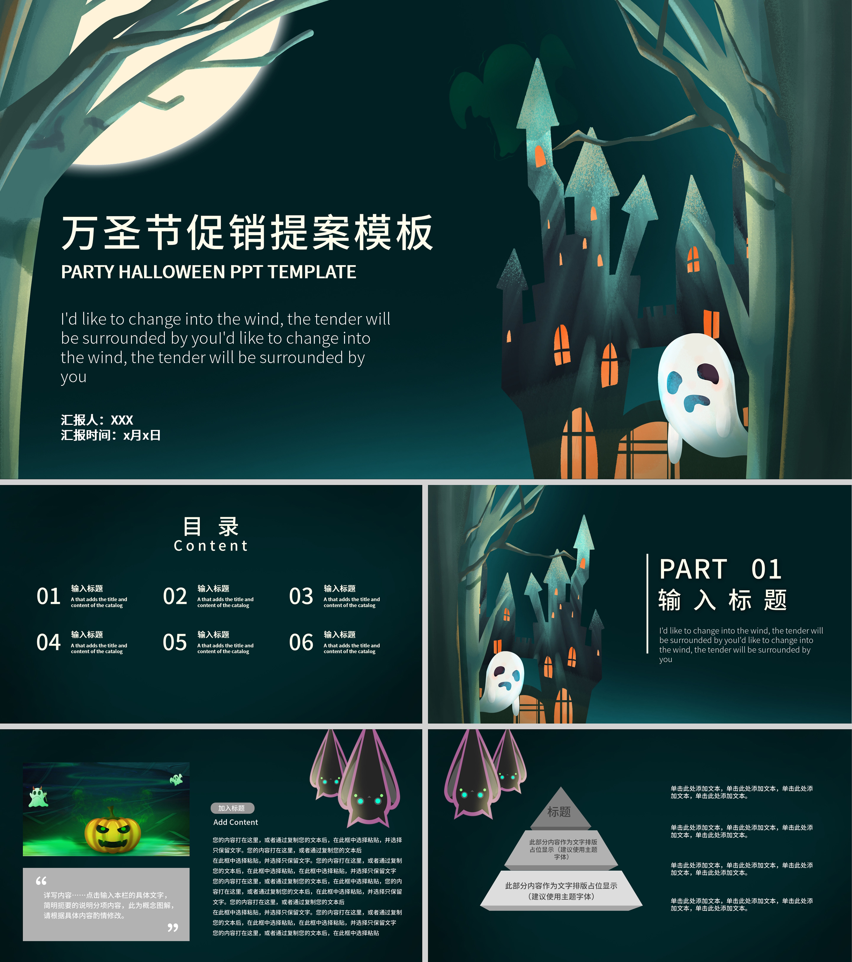 黑色卡通风万圣节营销活动策划方案PPT模板