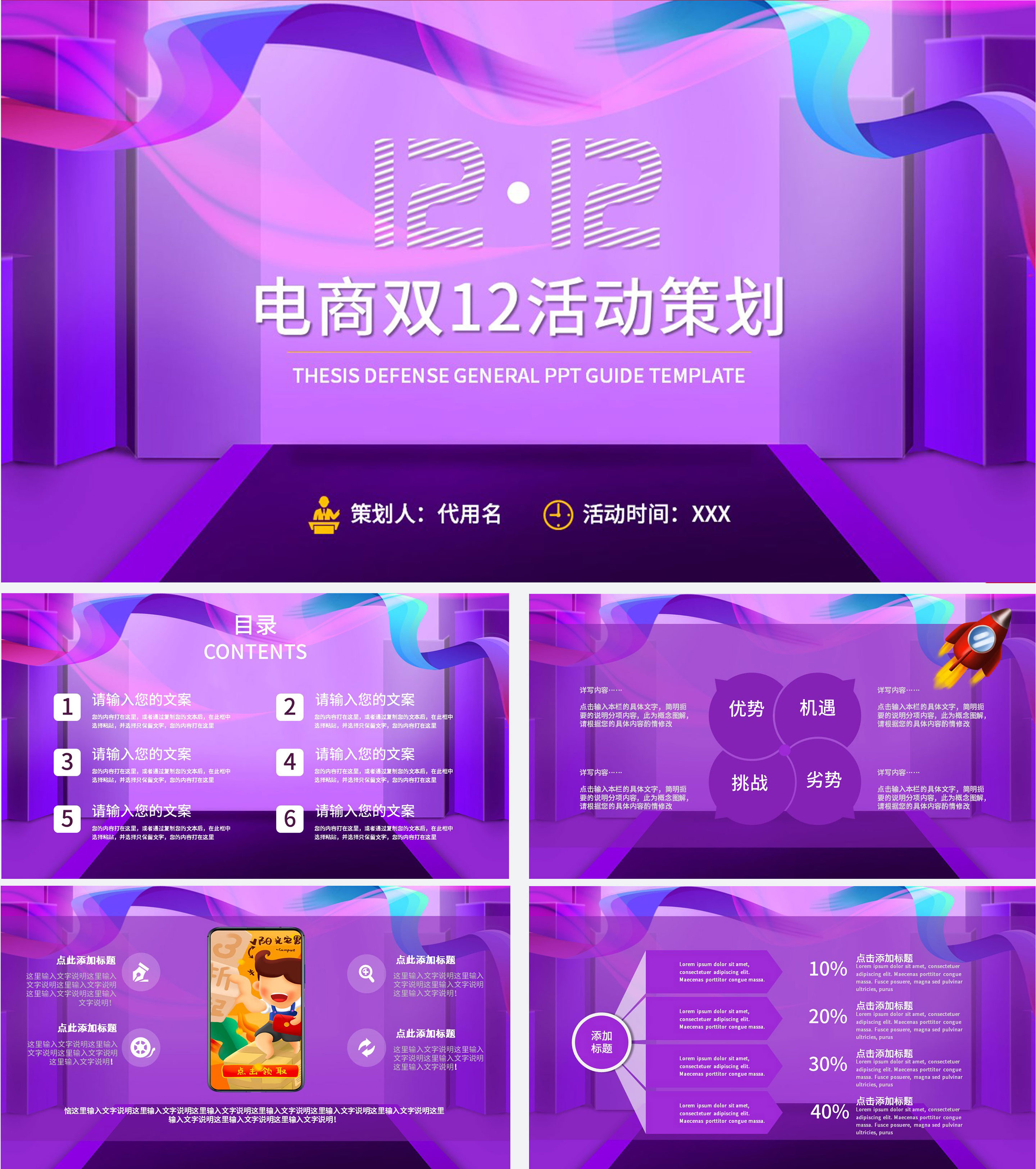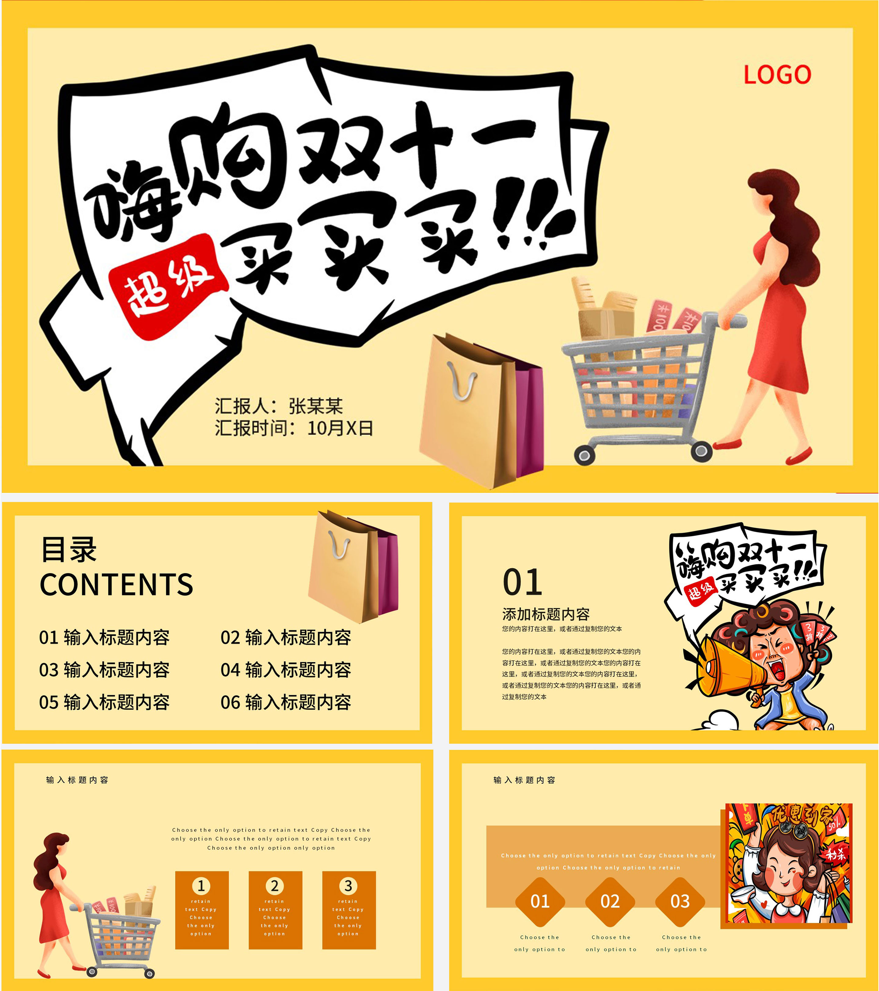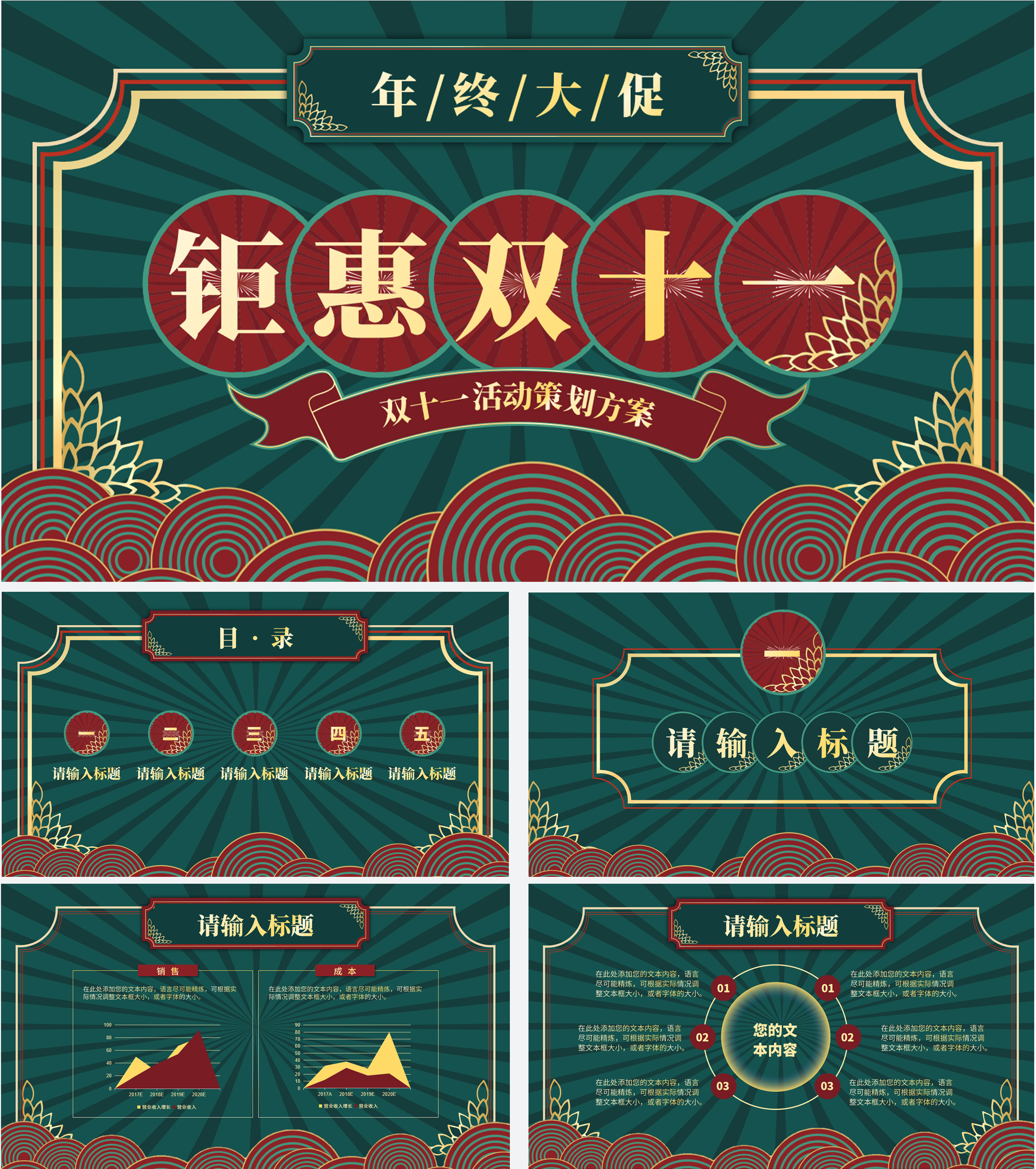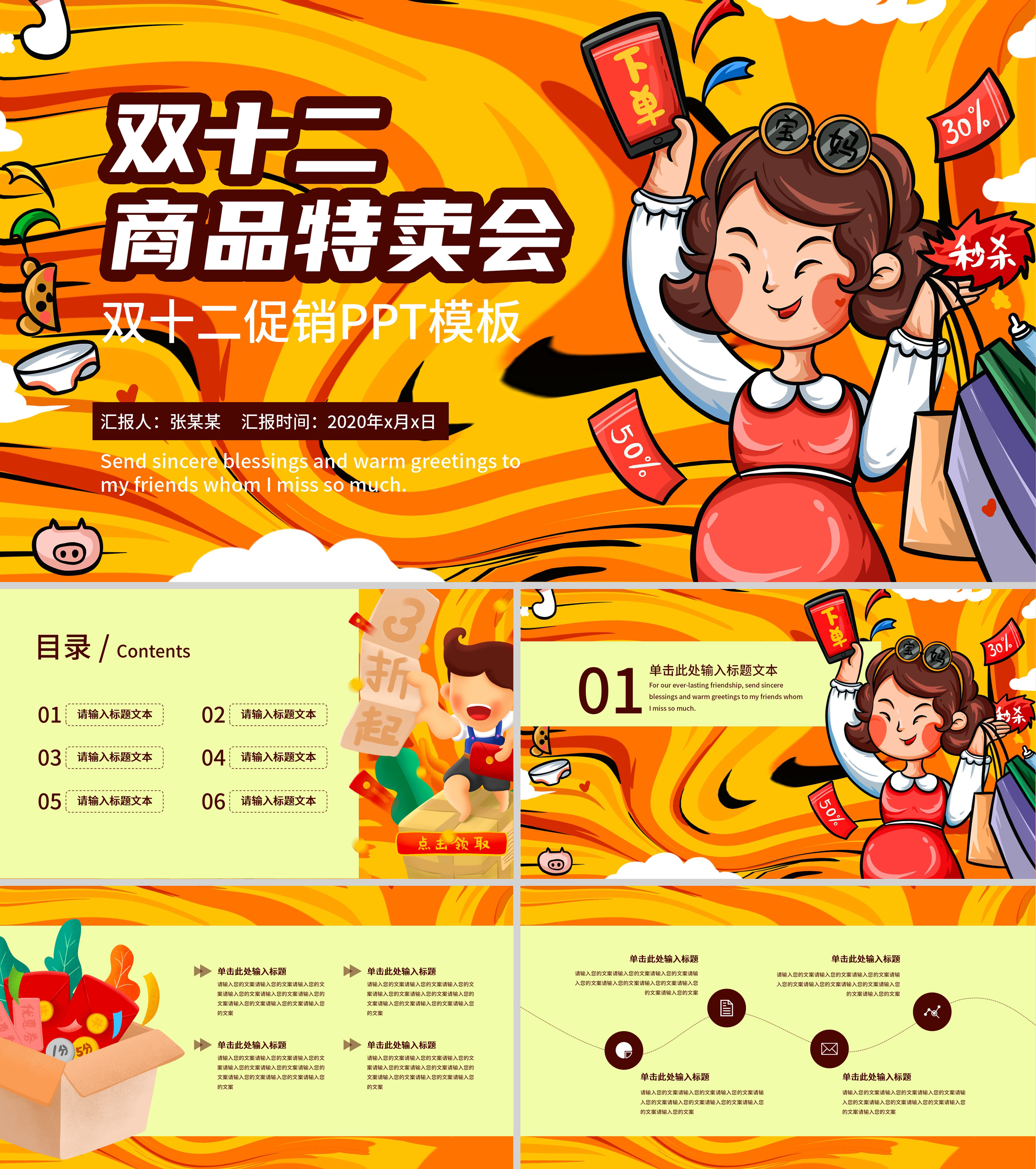 黄色插画风国潮双十二电商促销策划方案PPT模板