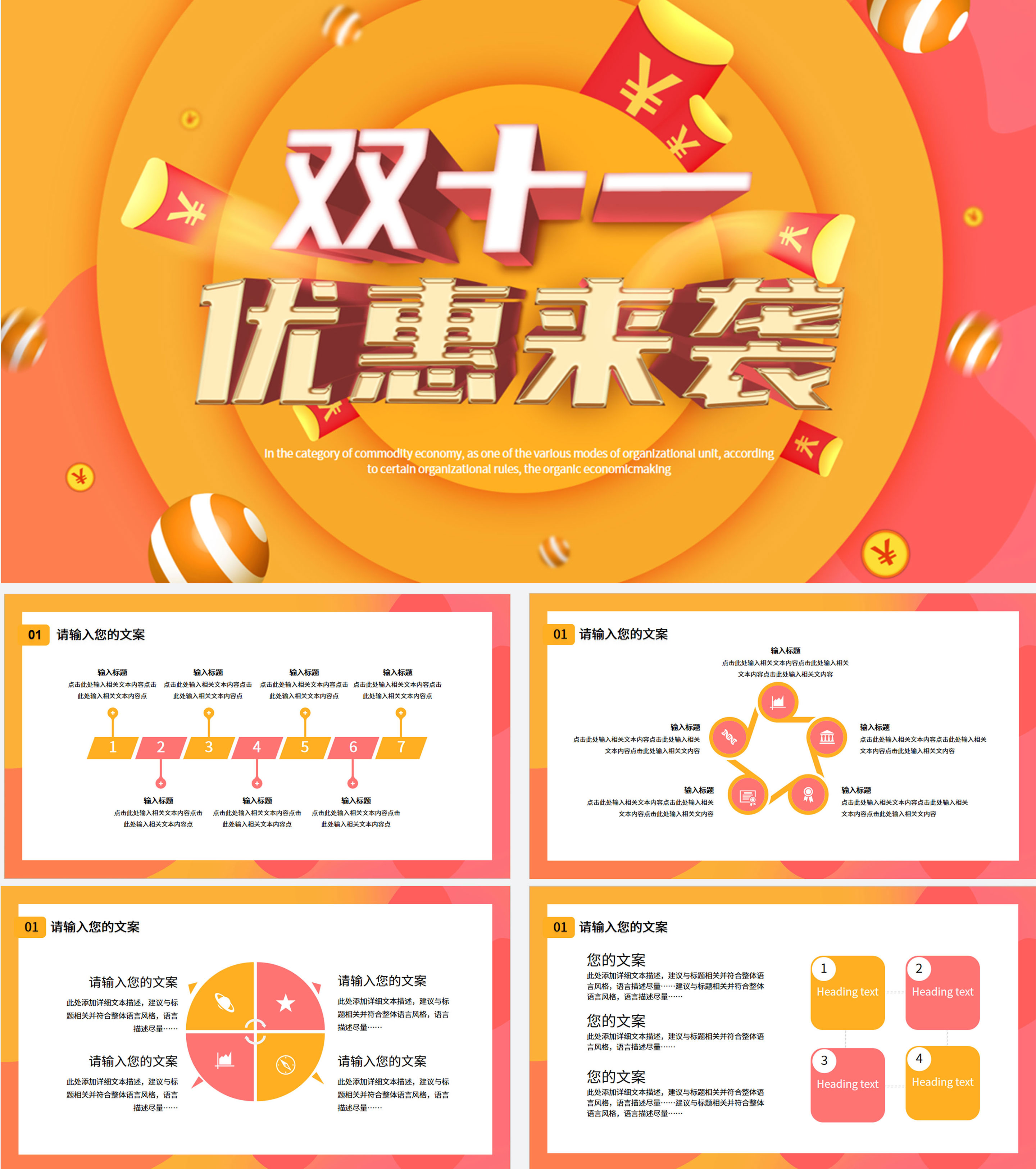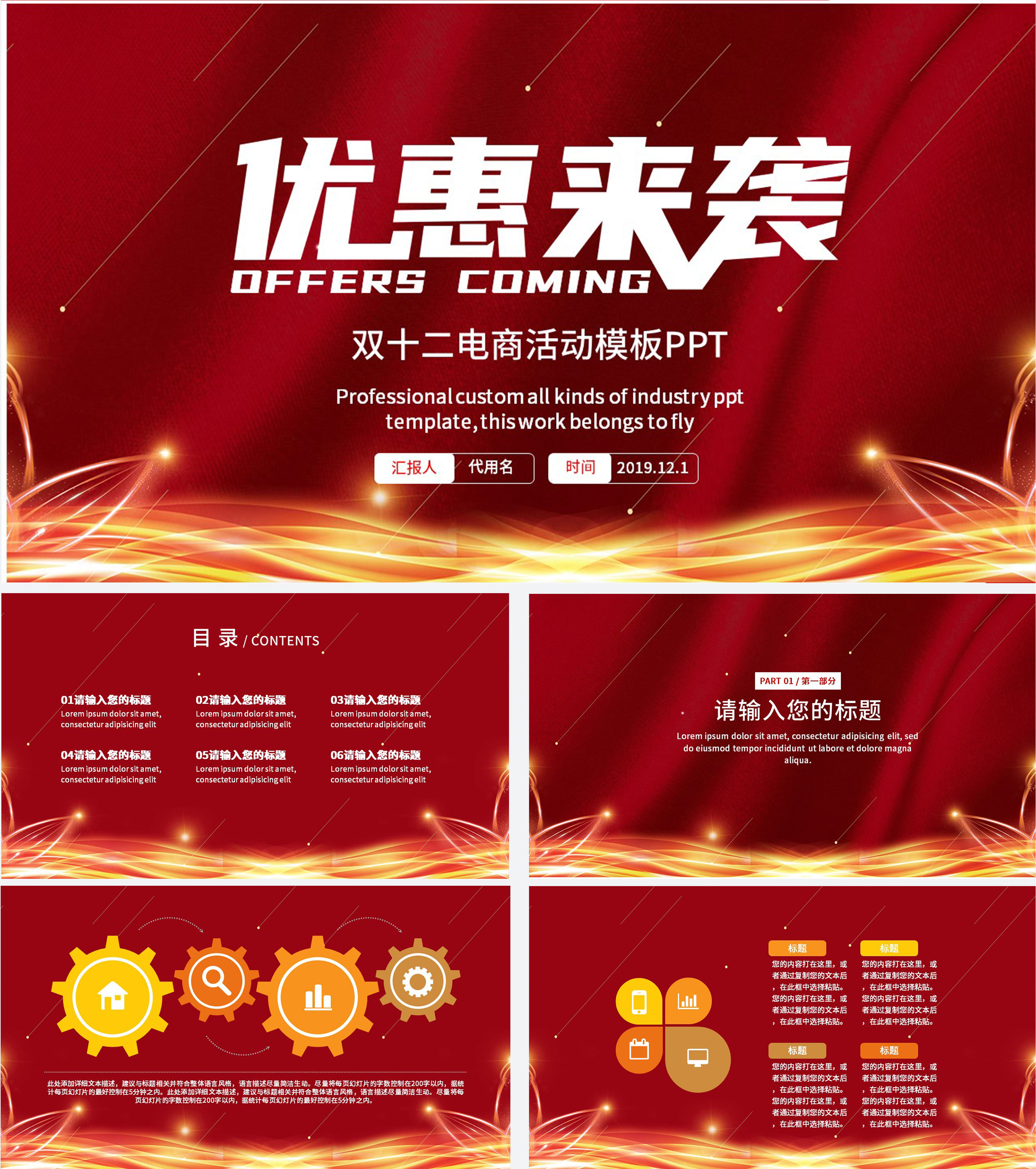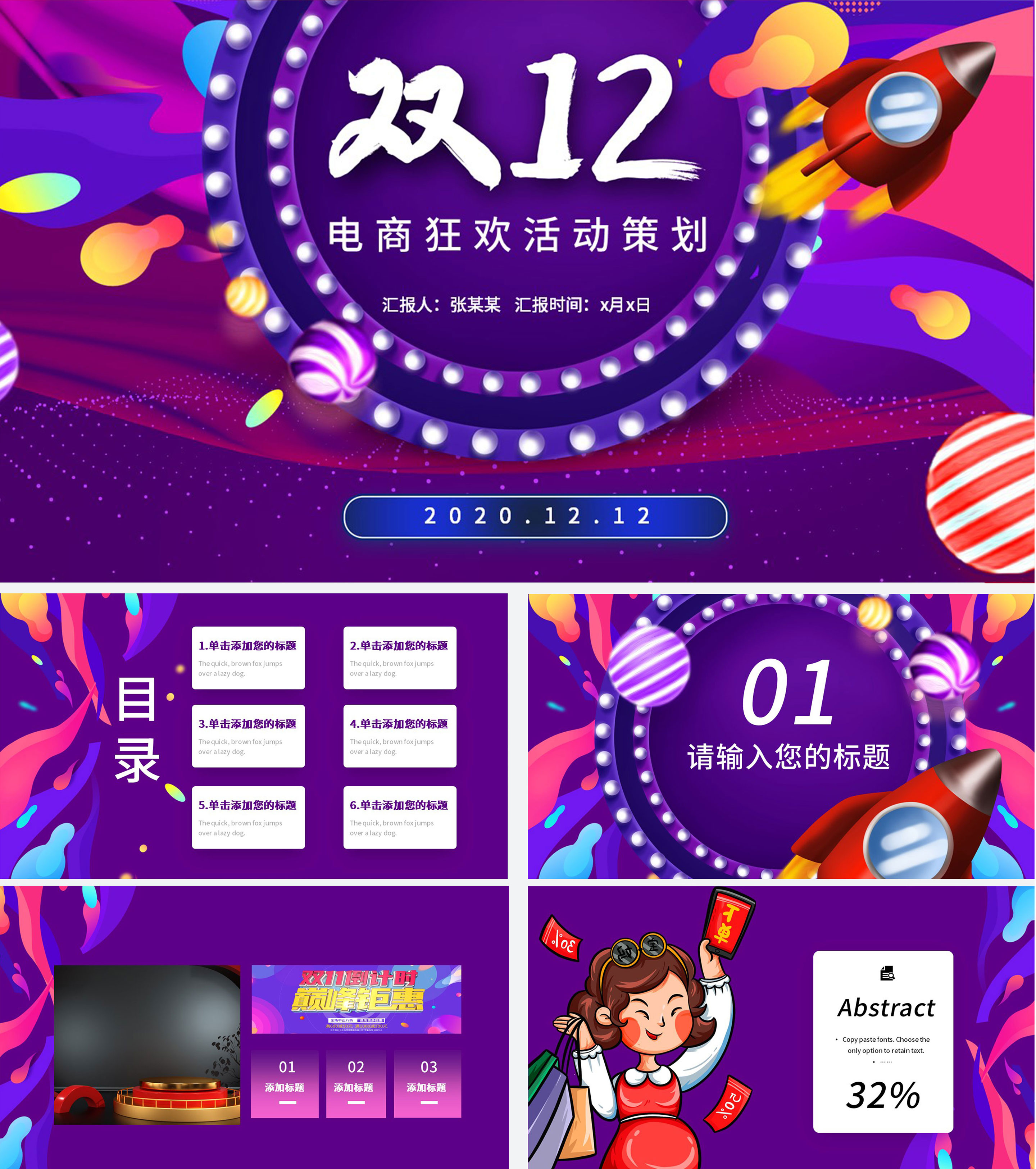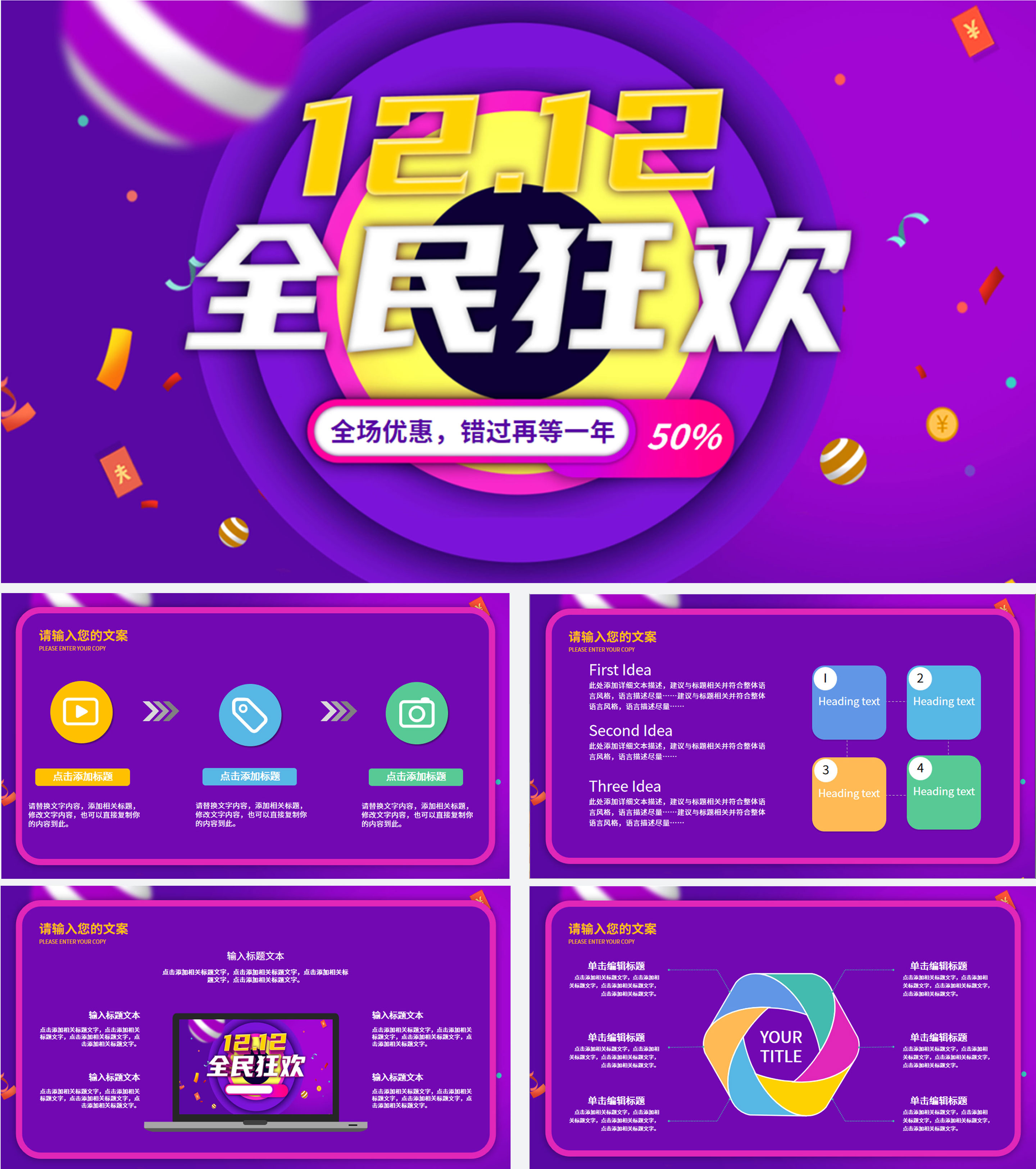 黄色插画风国潮双十二电商促销策划方案PPT模板