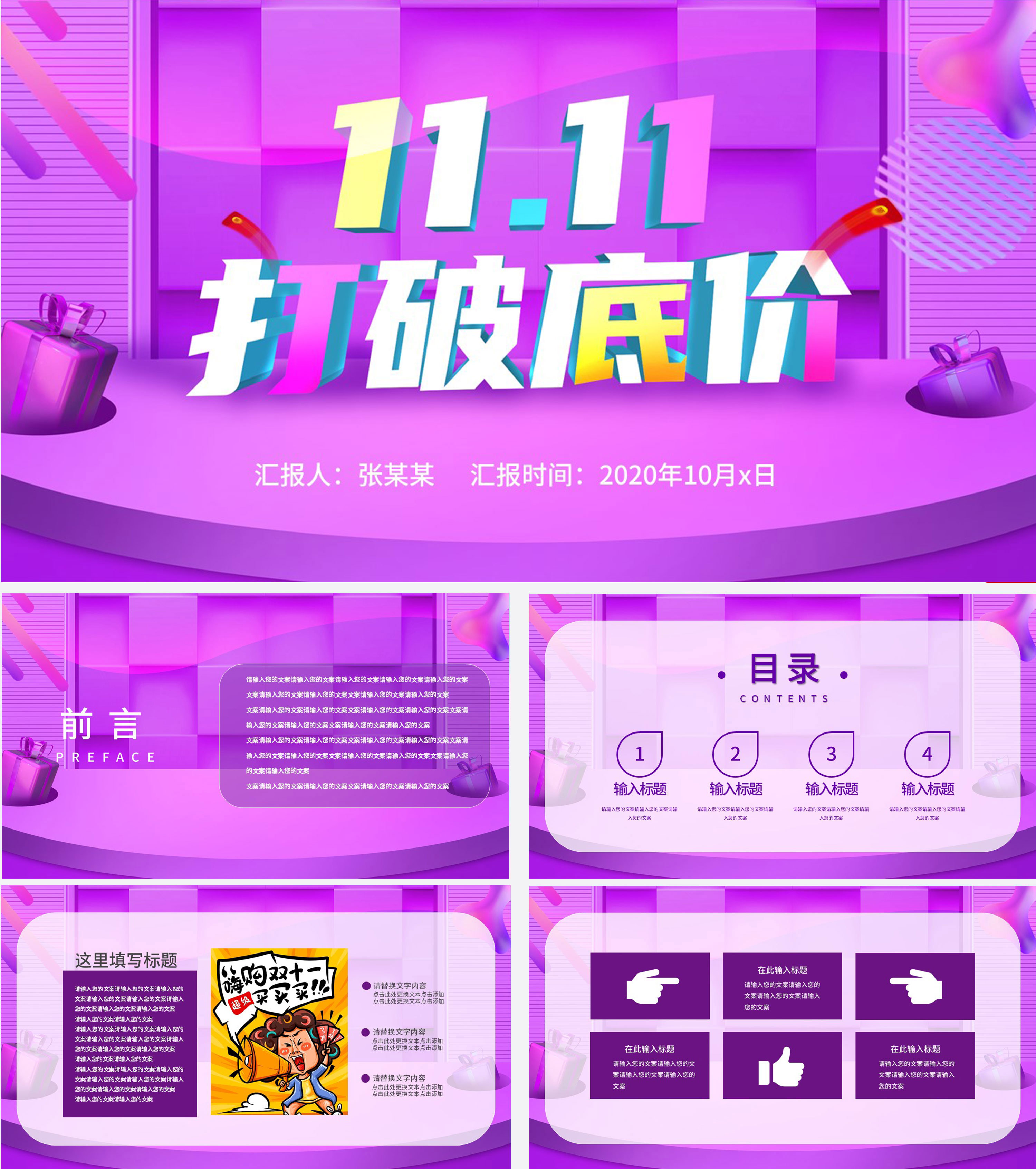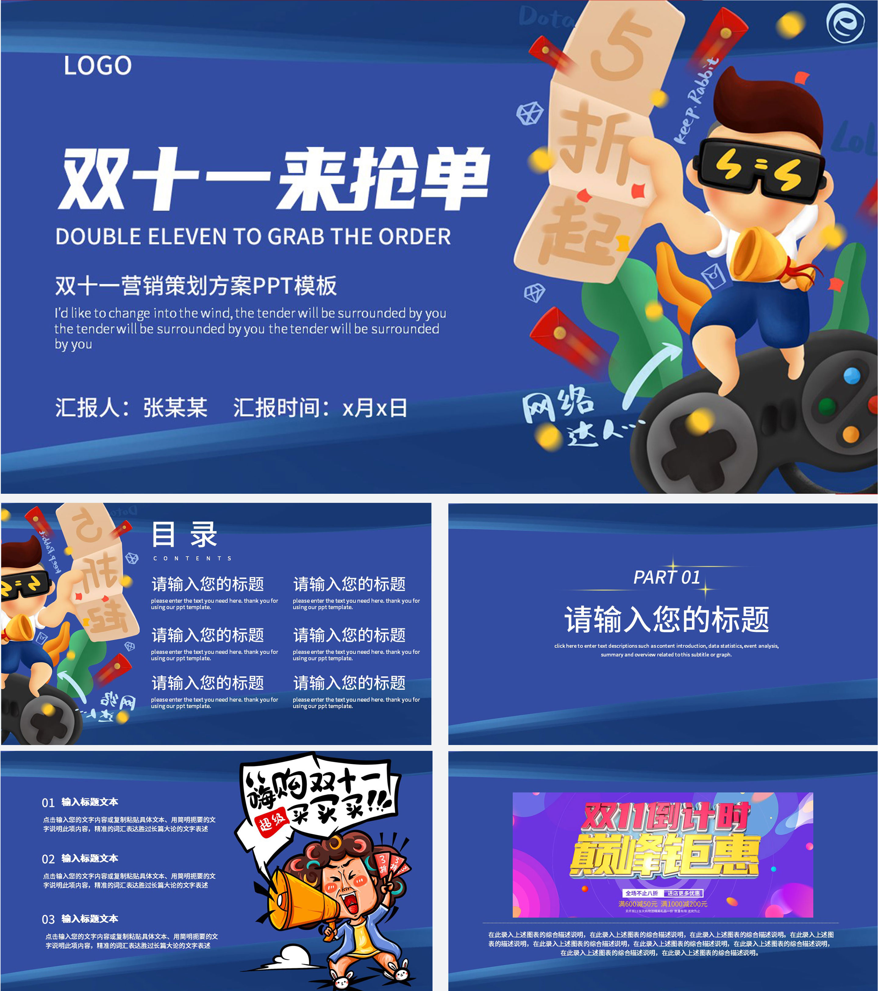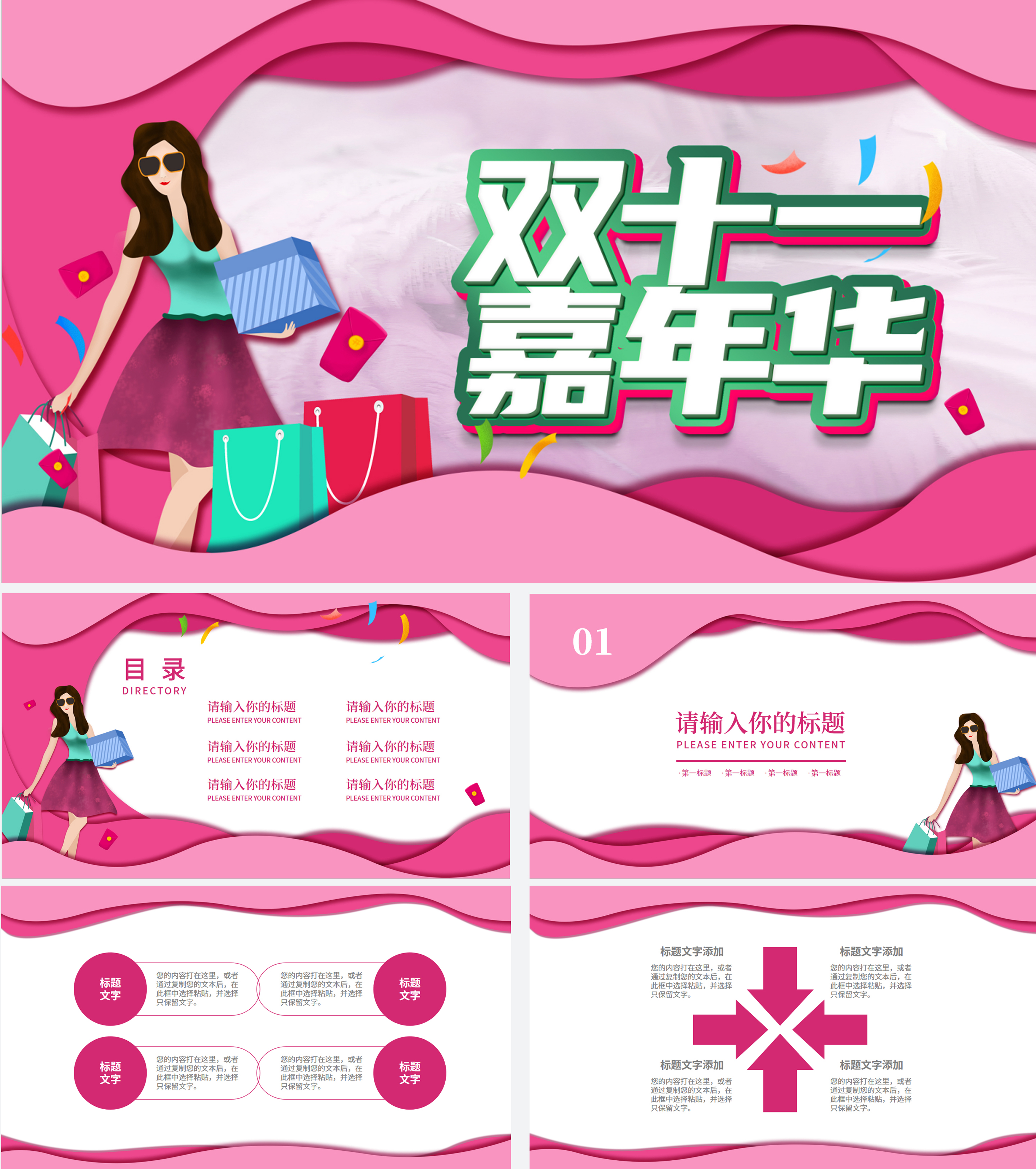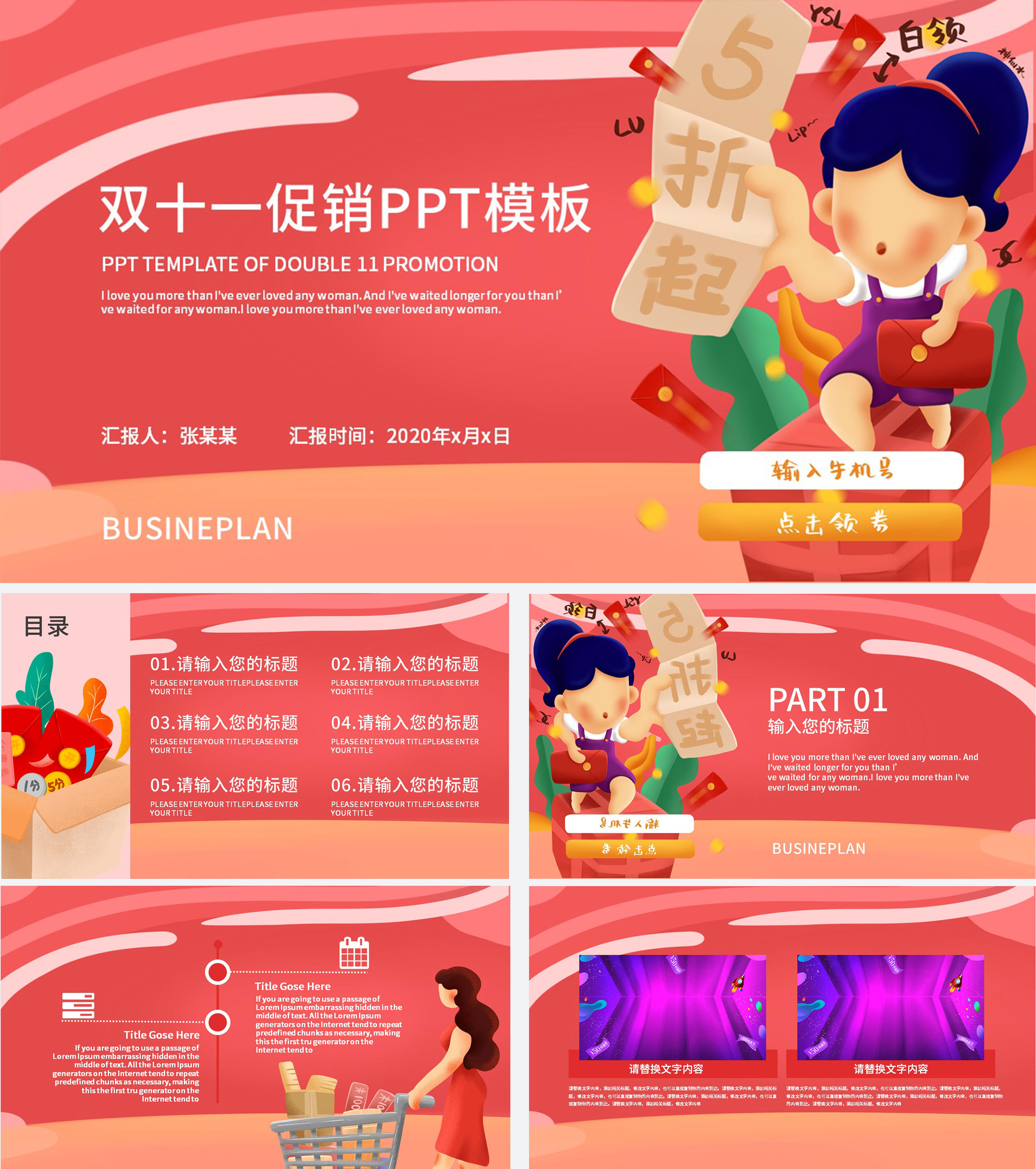 黄色插画风国潮双十二电商促销策划方案PPT模板