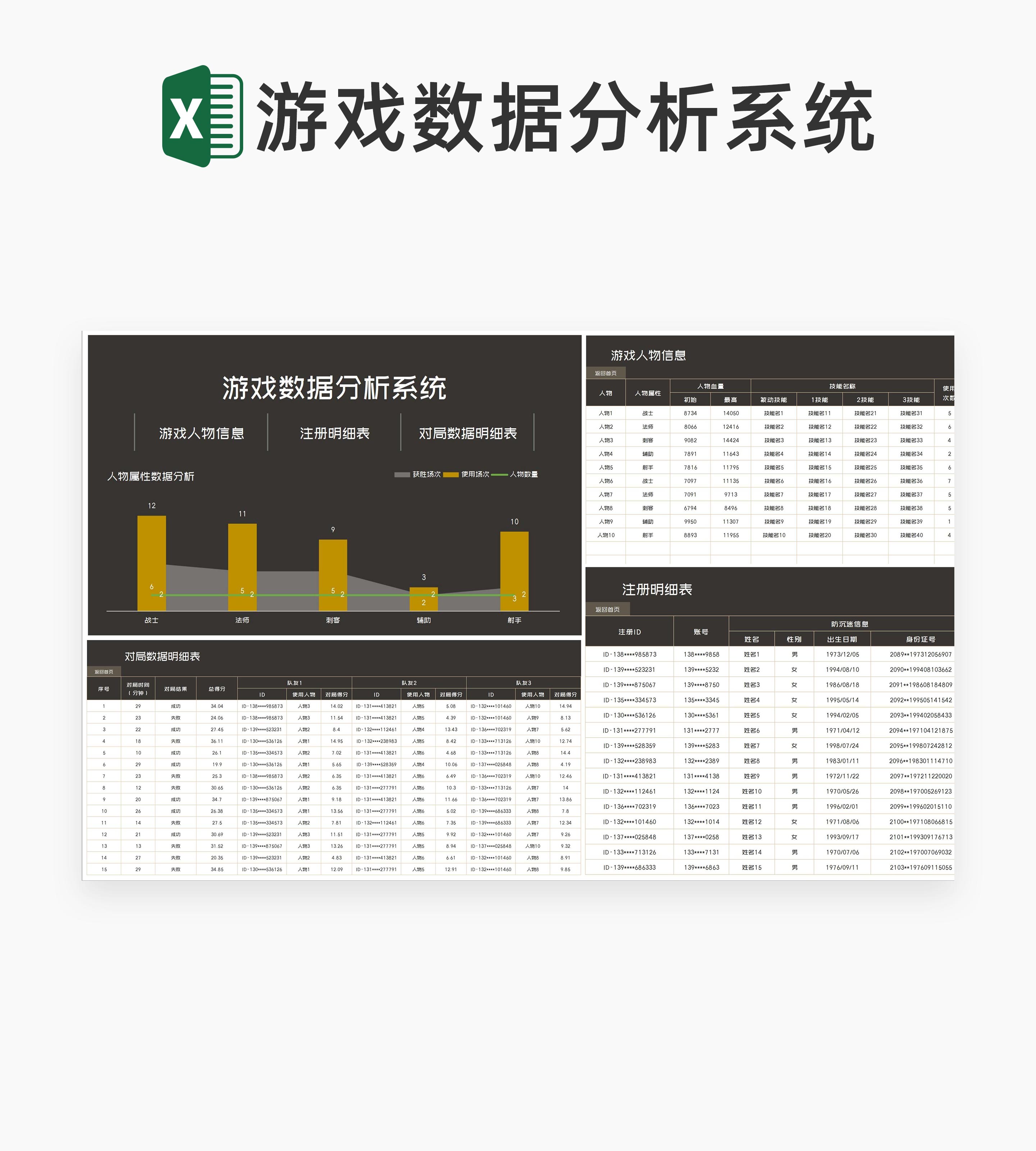 商务风黑色鎏金游戏数据分析系统Excel模板