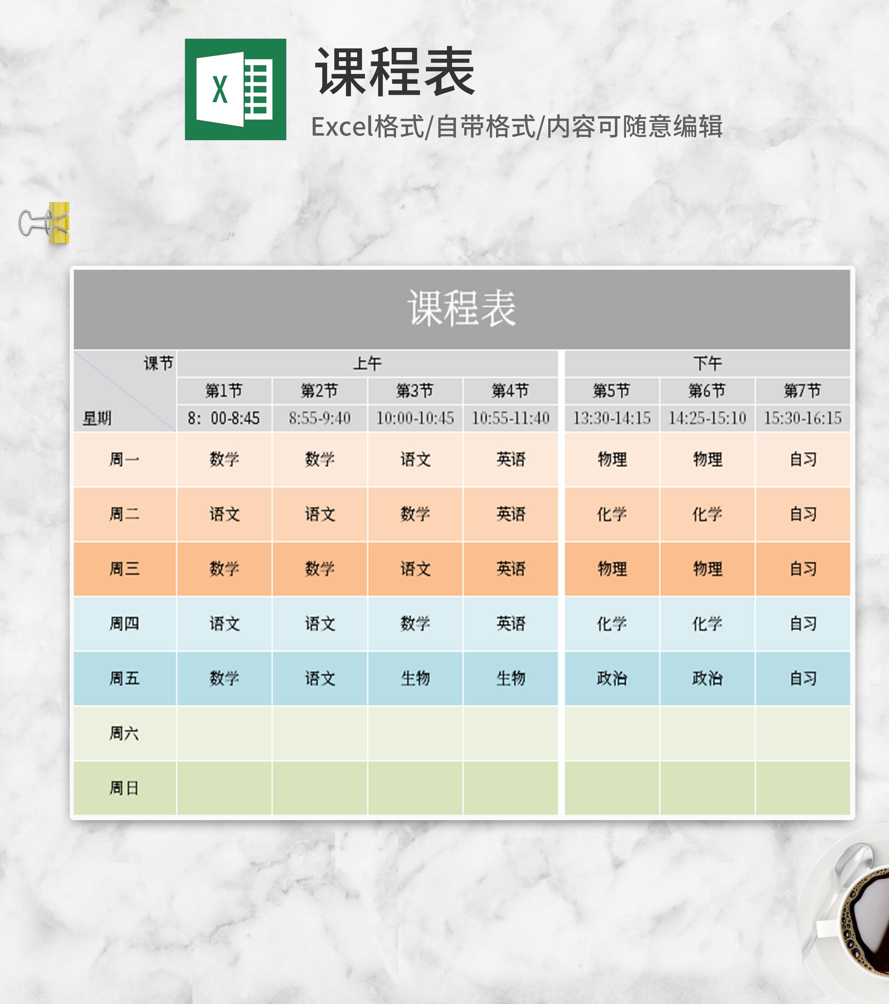 小清新多色课程表Excel模板