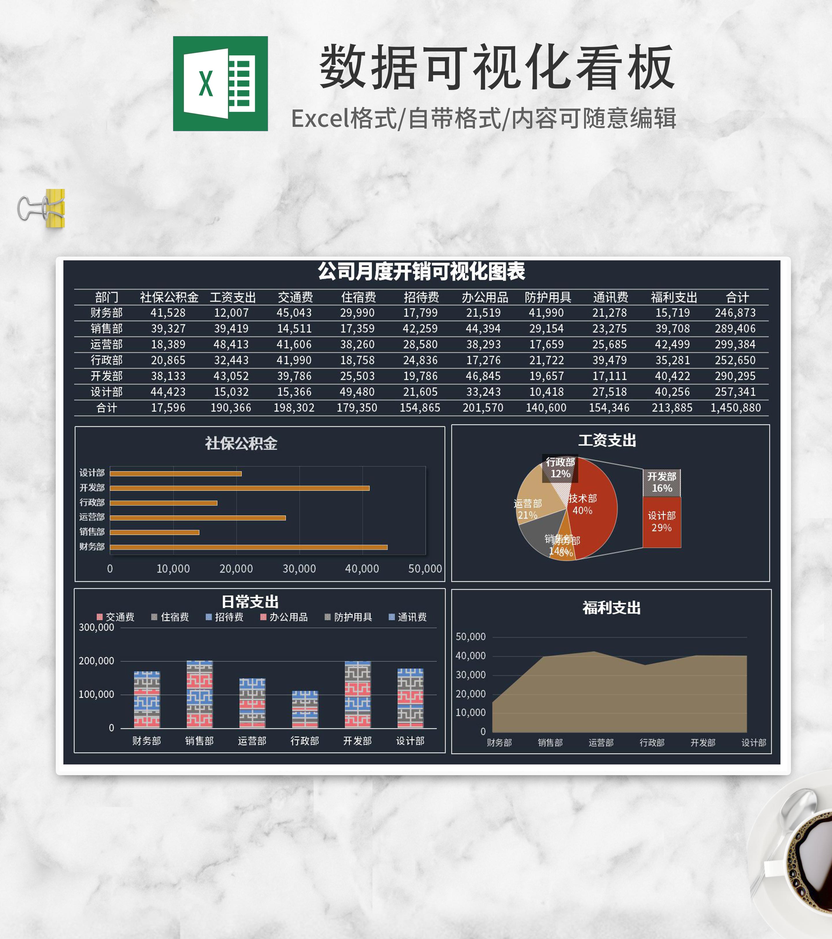 简约深色公司数据可视化看板Excel模板