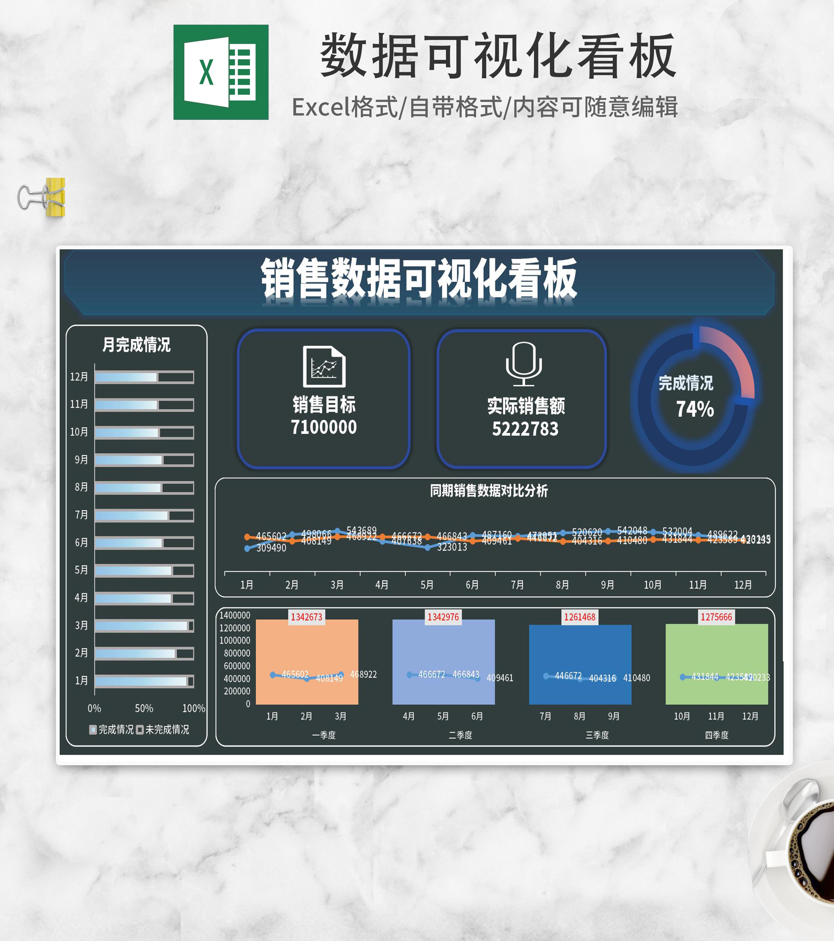 简约深蓝销售数据可视化看板Excel模板