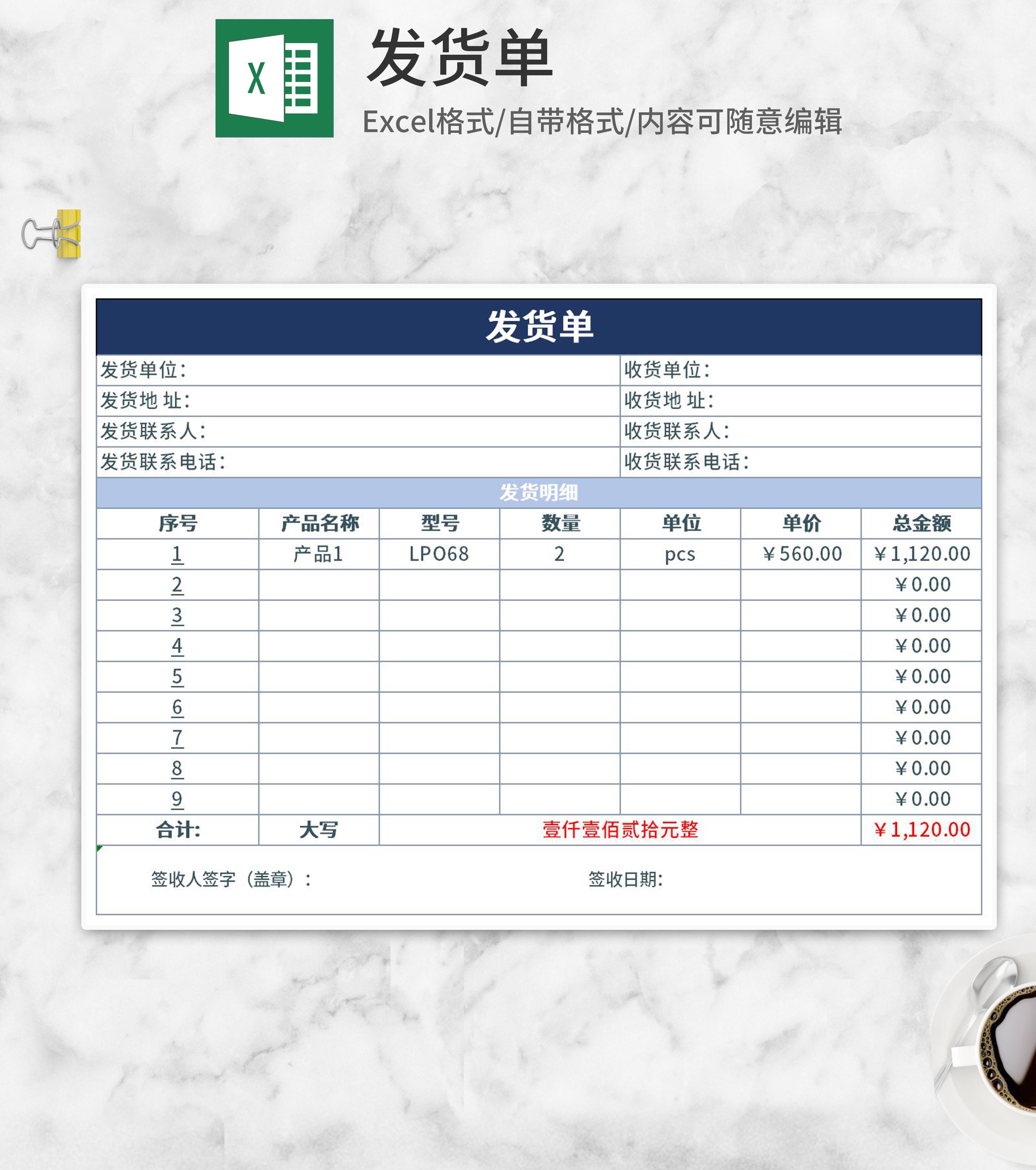 简约蓝色发货单Excel模板