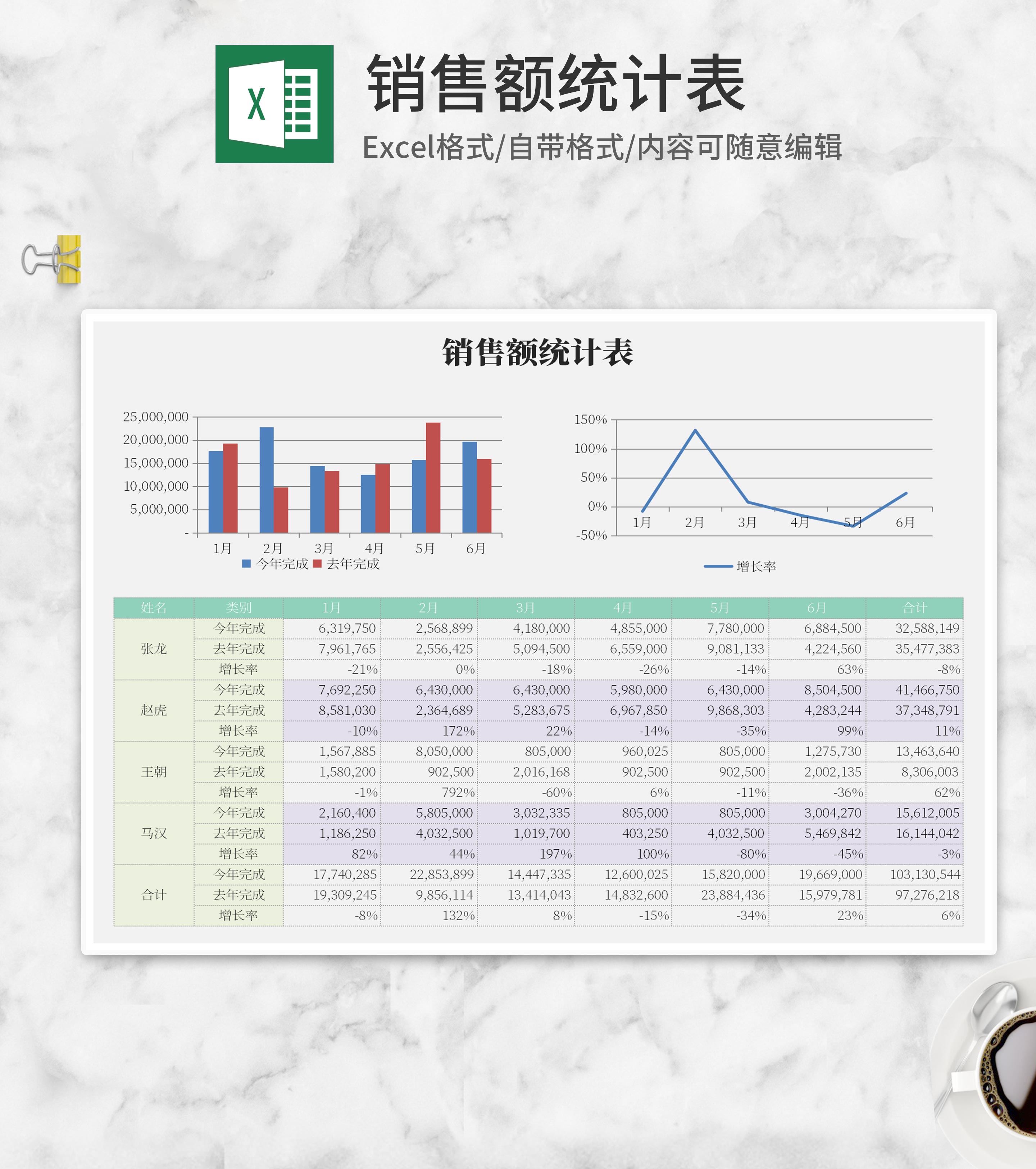 员工销售额统计表Excel模板